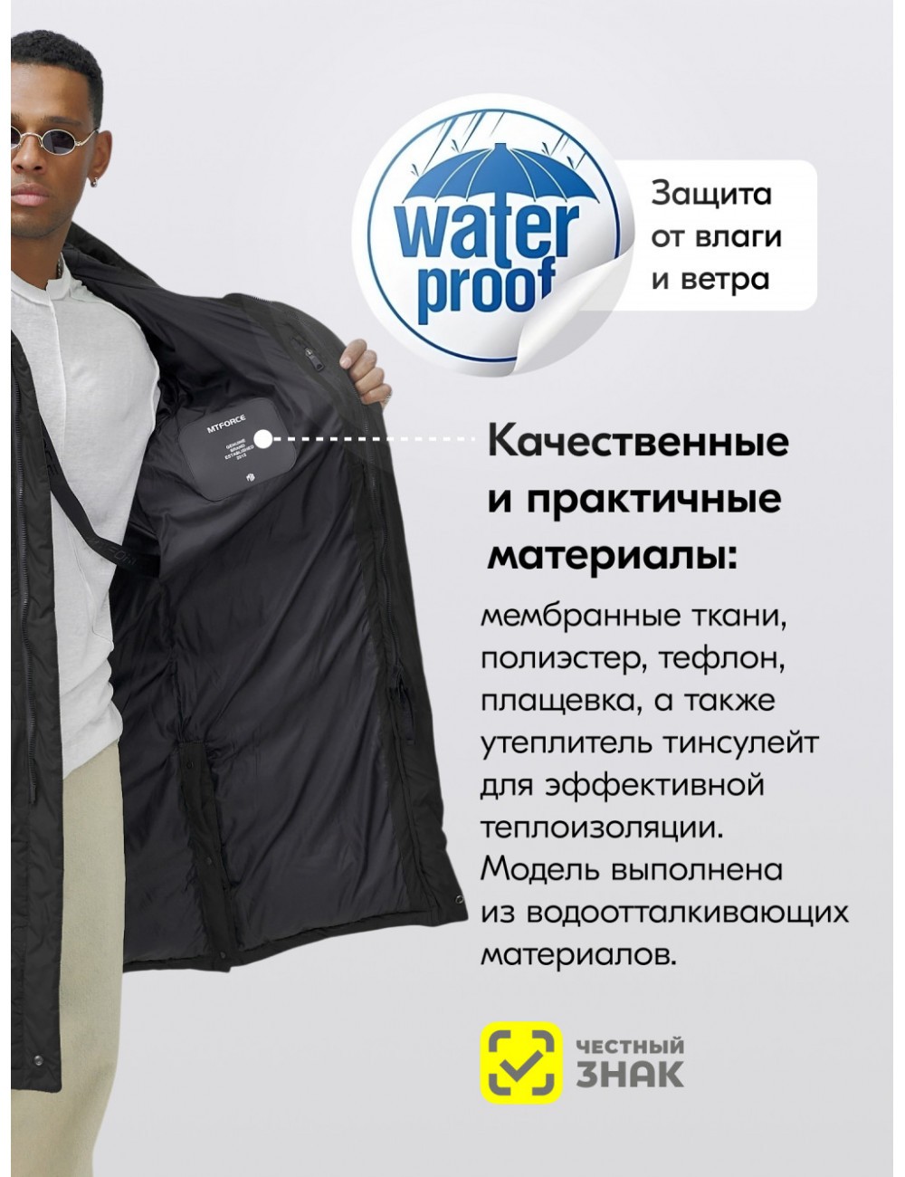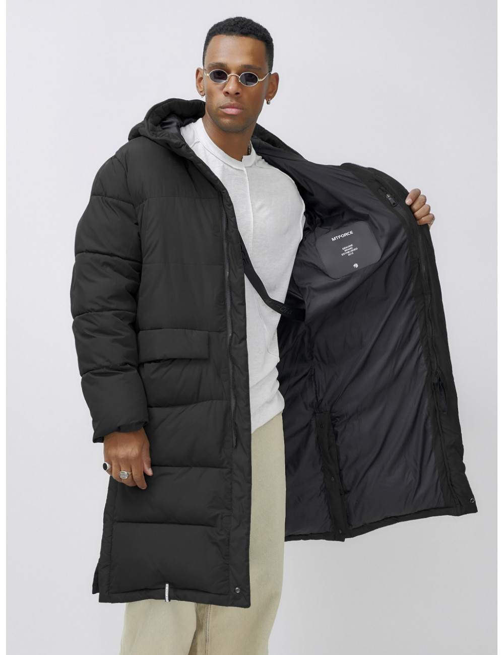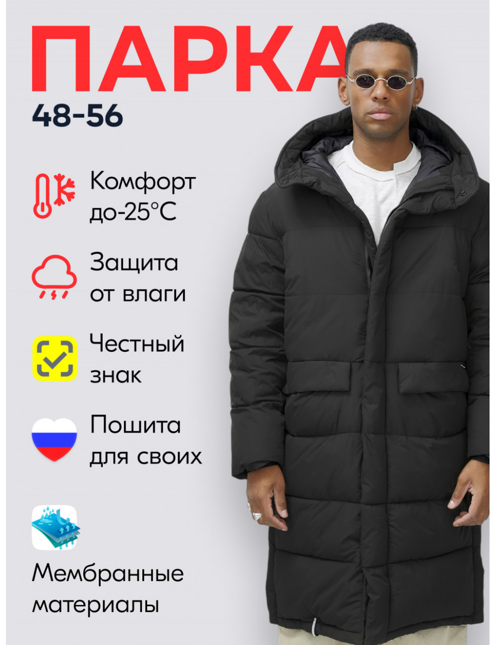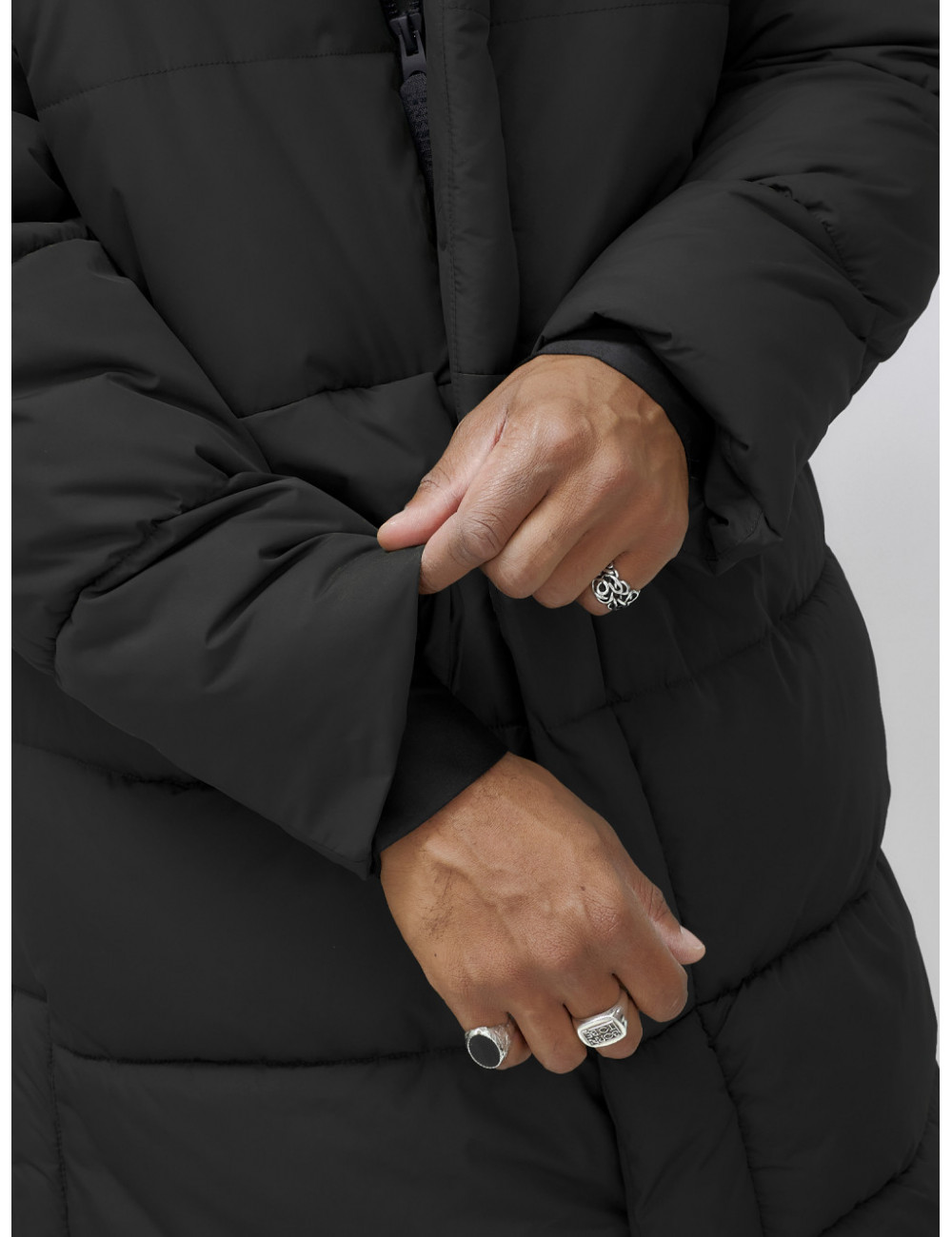 Технические характеристики Мужская зимняя парка спортивная, чёрная, удлинённая.