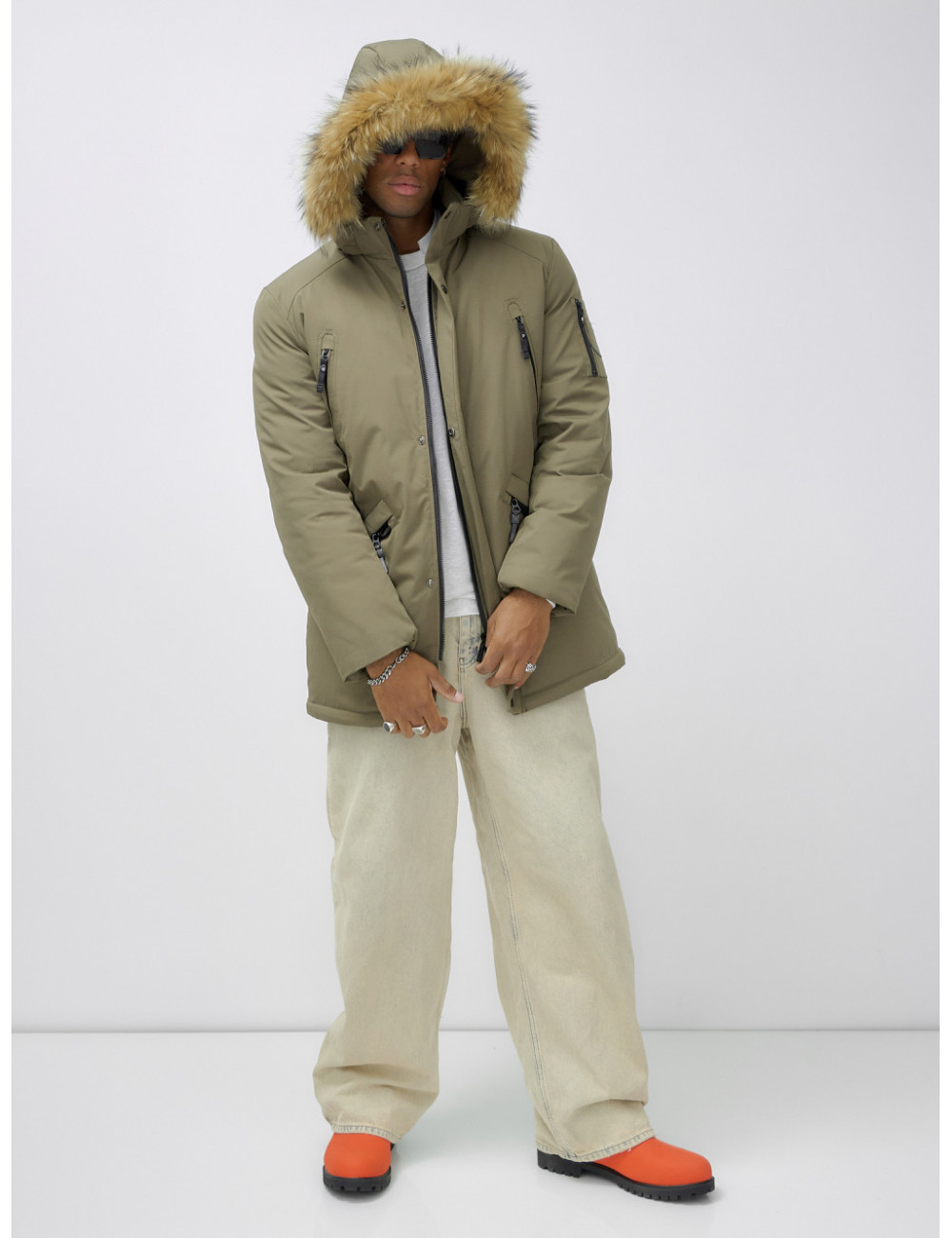 Не упустите шанс стать обладателем этой незаменимой вещи в вашем зимнем гардеробе! Доставка по Москве и Московской области Мужская зимняя парка с мехом, удлинённая, бежевая