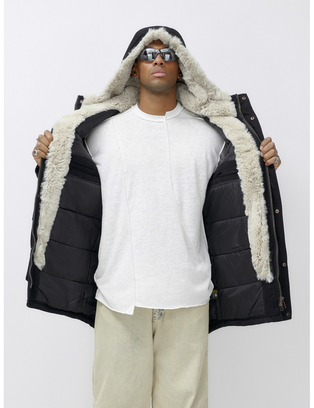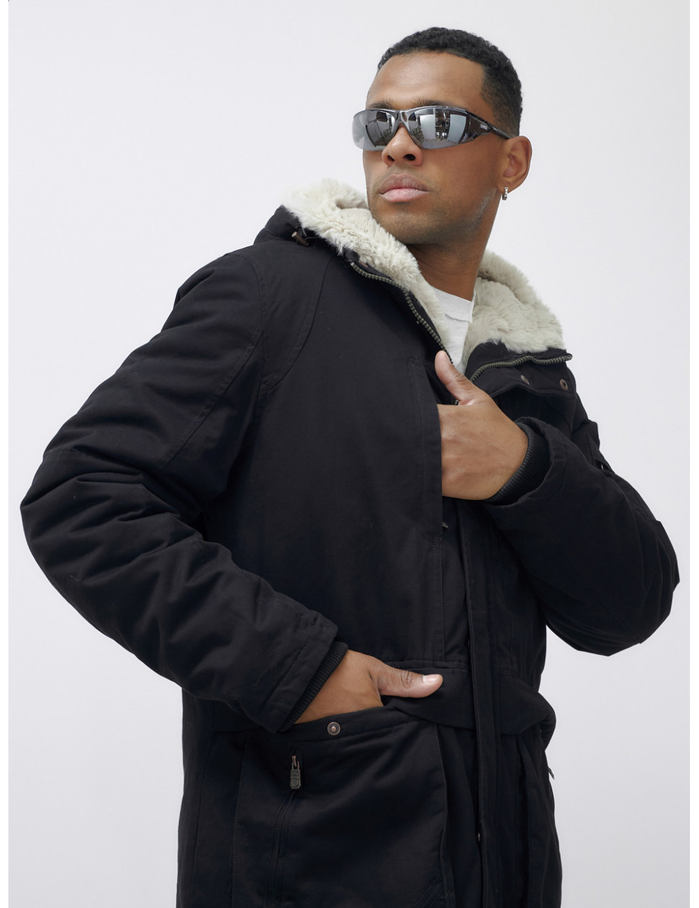 Закажите свою парку прямо сейчас и будьте готовы к любым зимним приключениям! Доставка по Москве и Московской области Мужская зимняя удлиненная парка с мехом, чёрная