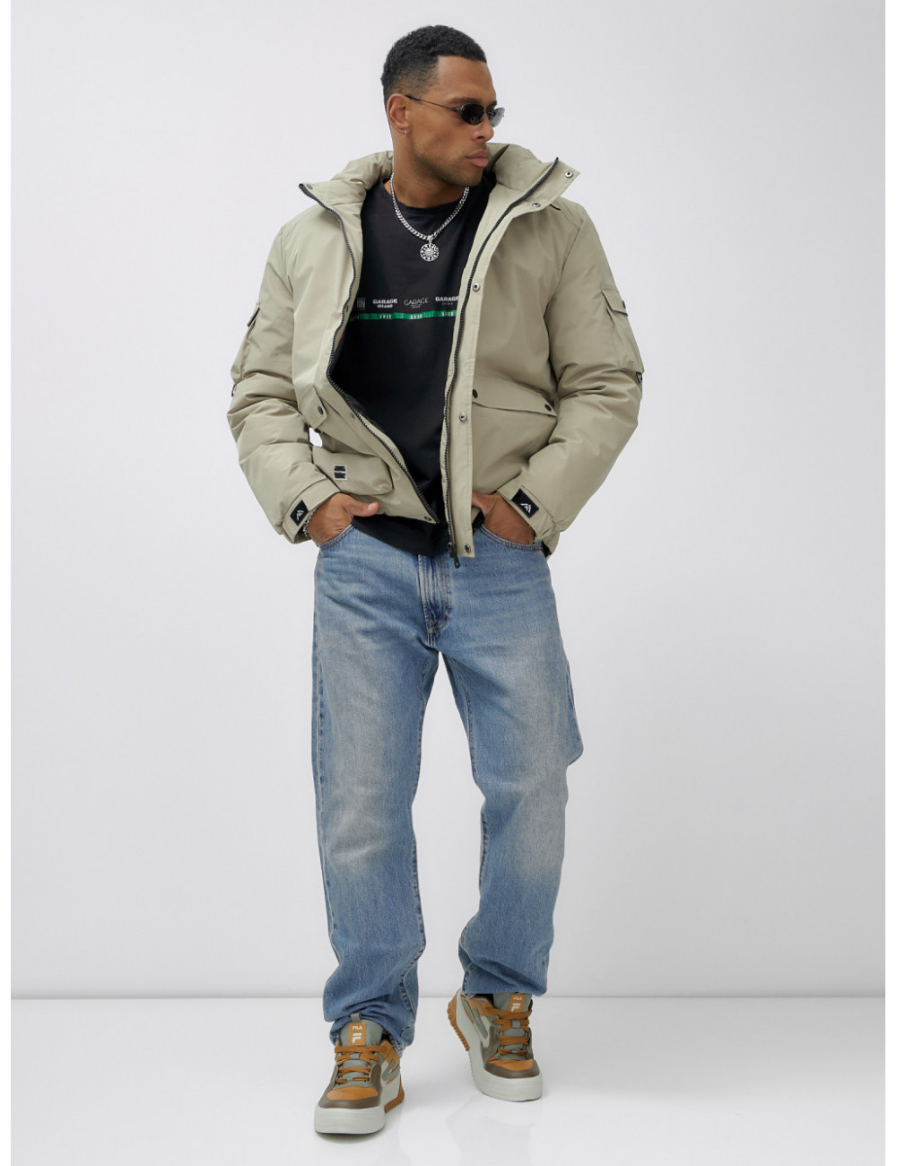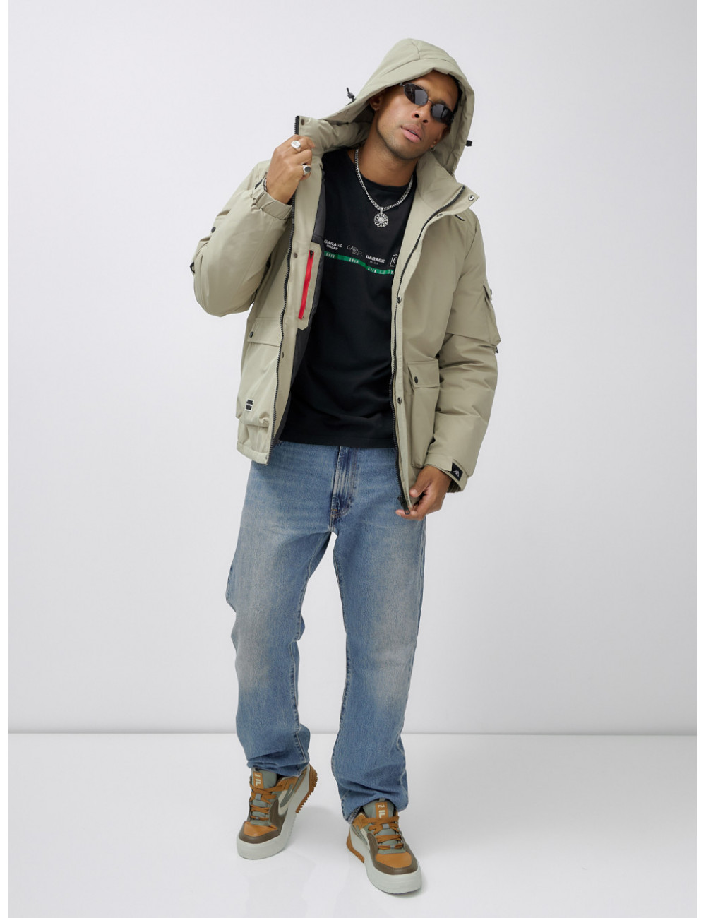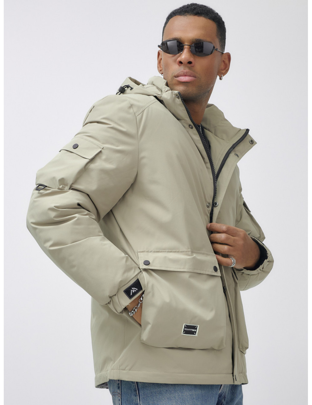 Закажите мужскую зимнюю куртку прямо сейчас и наслаждайтесь комфортом даже в самые холодные дни! Доставка по Москве и Московской области Мужская зимняя спортивная куртка с капюшоном бежевого оттенка