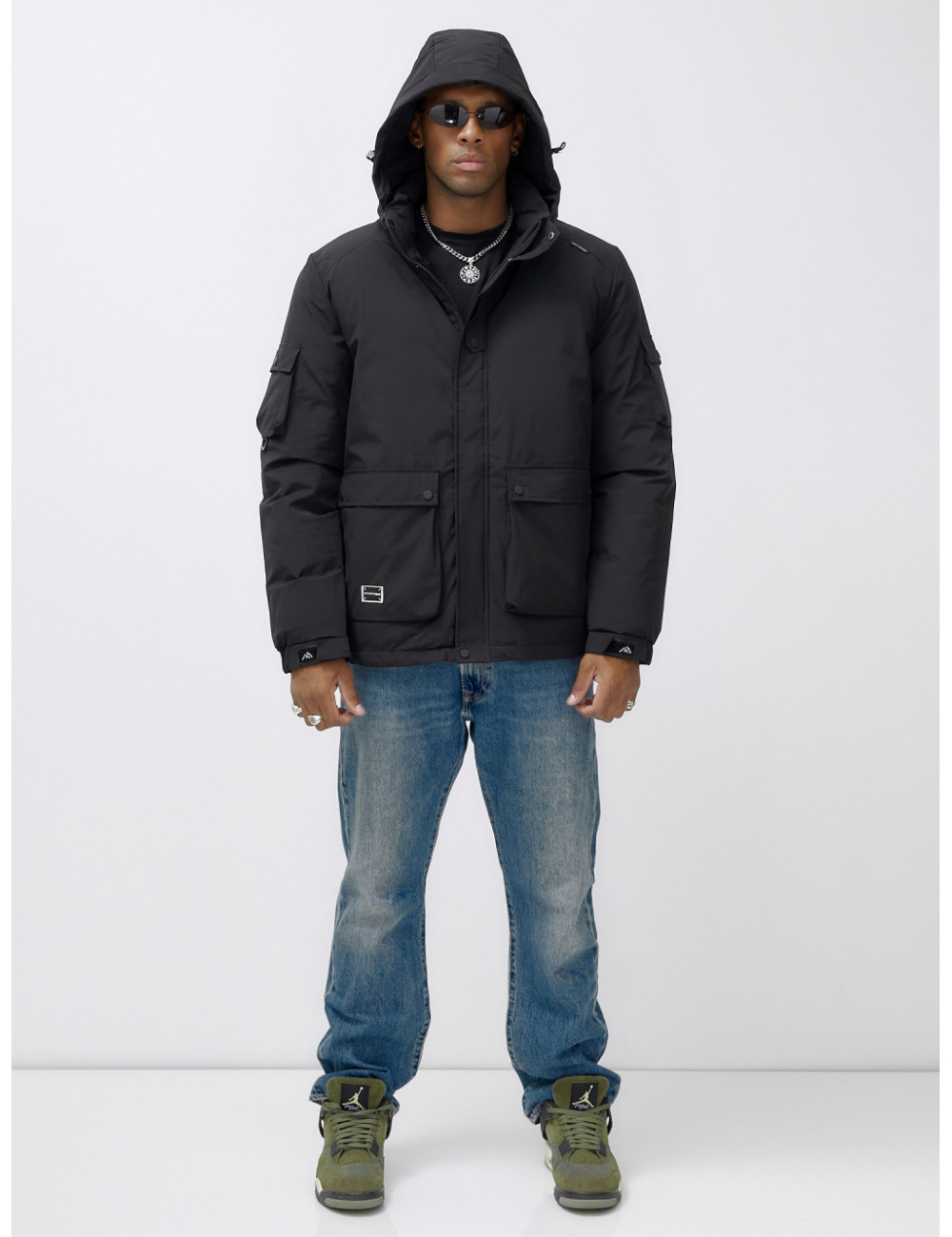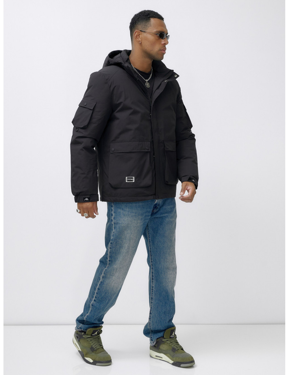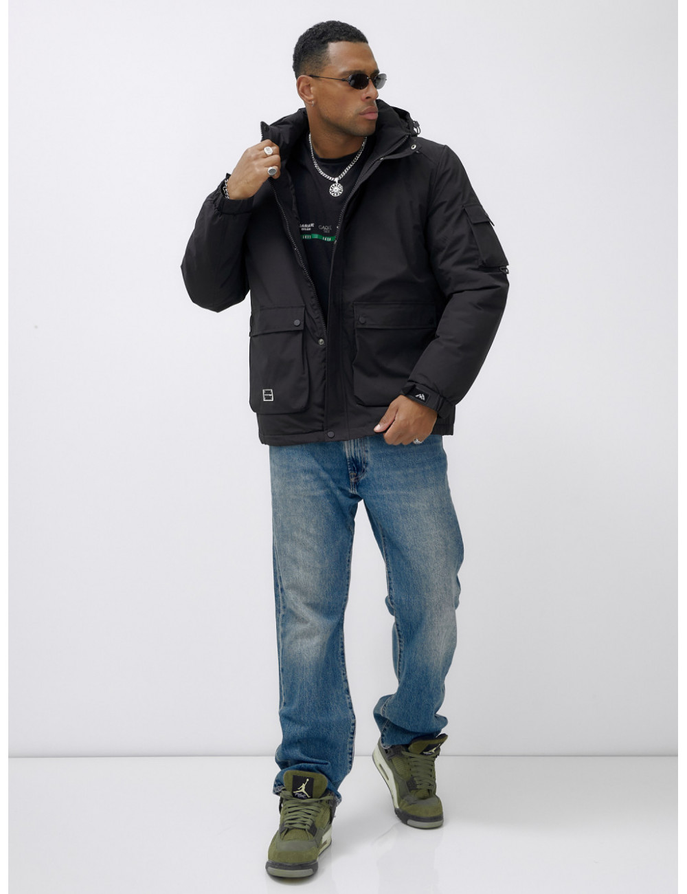 Мужская зимняя куртка гармонично сочетается с различными элементами гардероба. Её можно комбинировать с джинсами, брюками или спортивными штанами для создания стильного и комфортного образа. Доставка по Москве и Московской области Мужская зимняя спортивная куртка с капюшоном, чёрная.