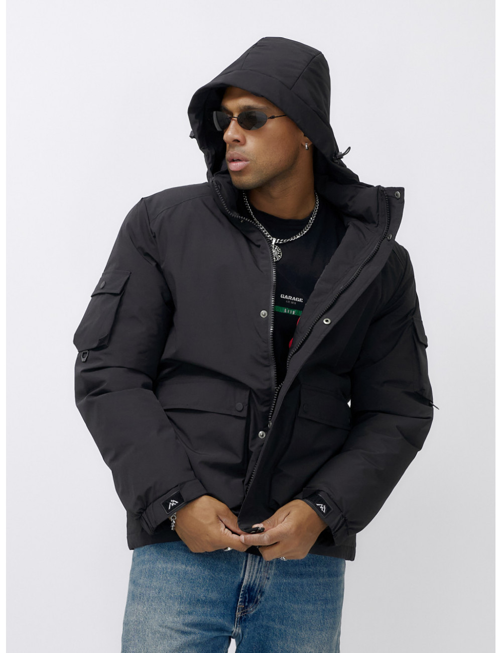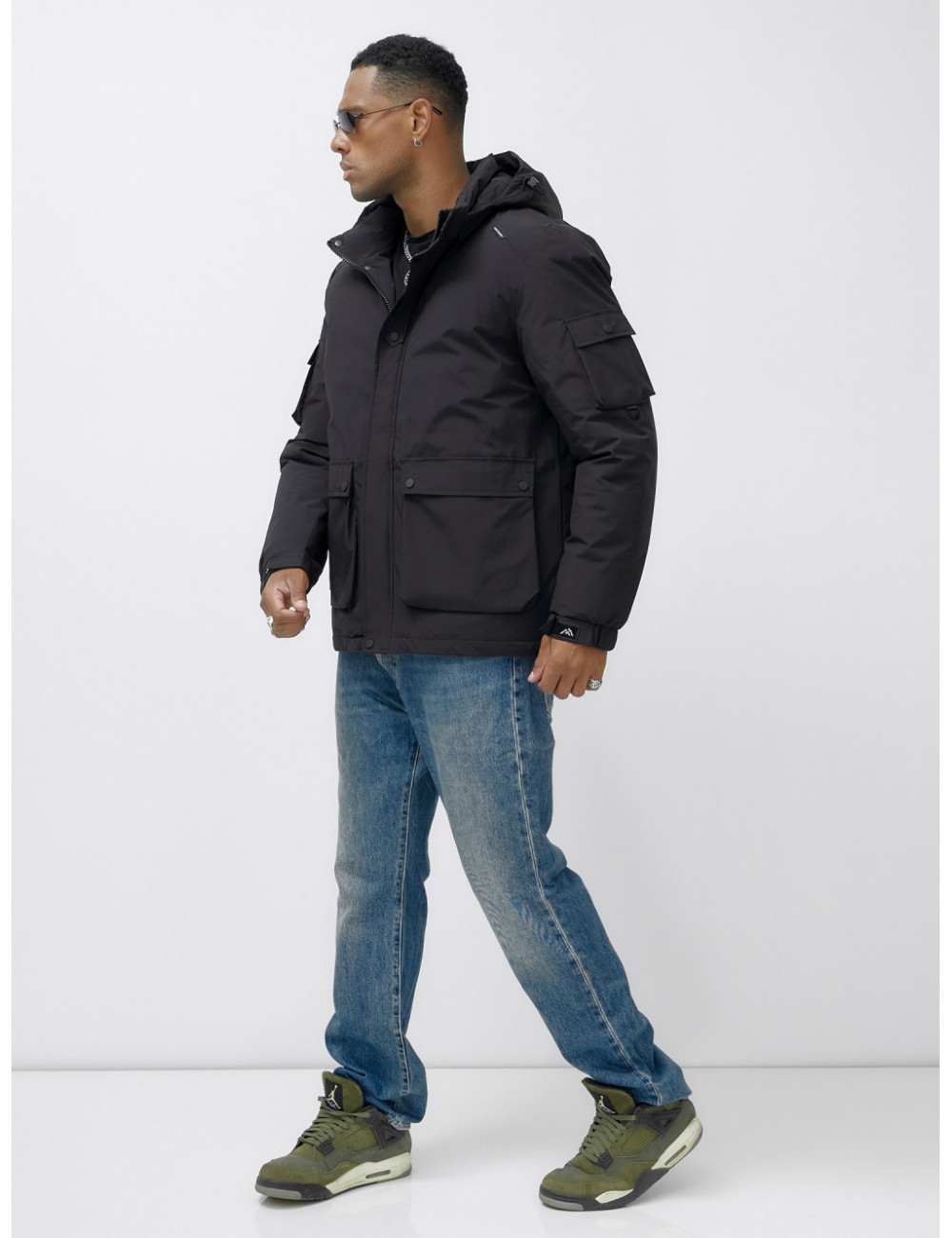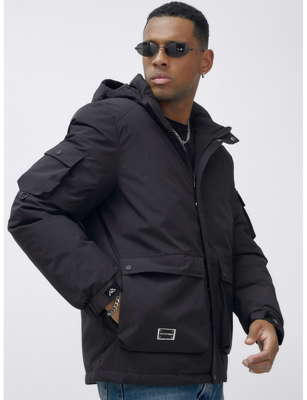 Мужская зимняя куртка гармонично сочетается с различными элементами гардероба. Её можно комбинировать с джинсами, брюками или спортивными штанами для создания стильного и комфортного образа. Доставка по Москве и Московской области Мужская зимняя спортивная куртка с капюшоном, чёрная.