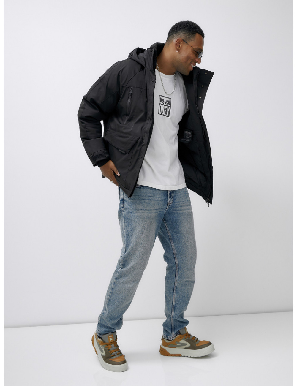 Мужская зимняя куртка отлично сочетается с джинсами, спортивными штанами и тёплыми брюками. Она станет отличным дополнением к вашему зимнему гардеробу и поможет создать стильный образ. Доставка по Москве и Московской области Мужская зимняя спортивная куртка с капюшоном, чёрная
