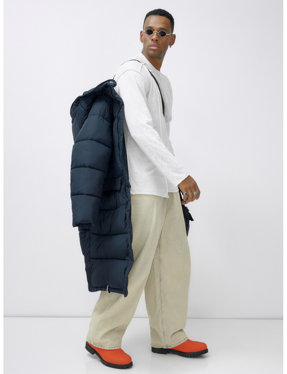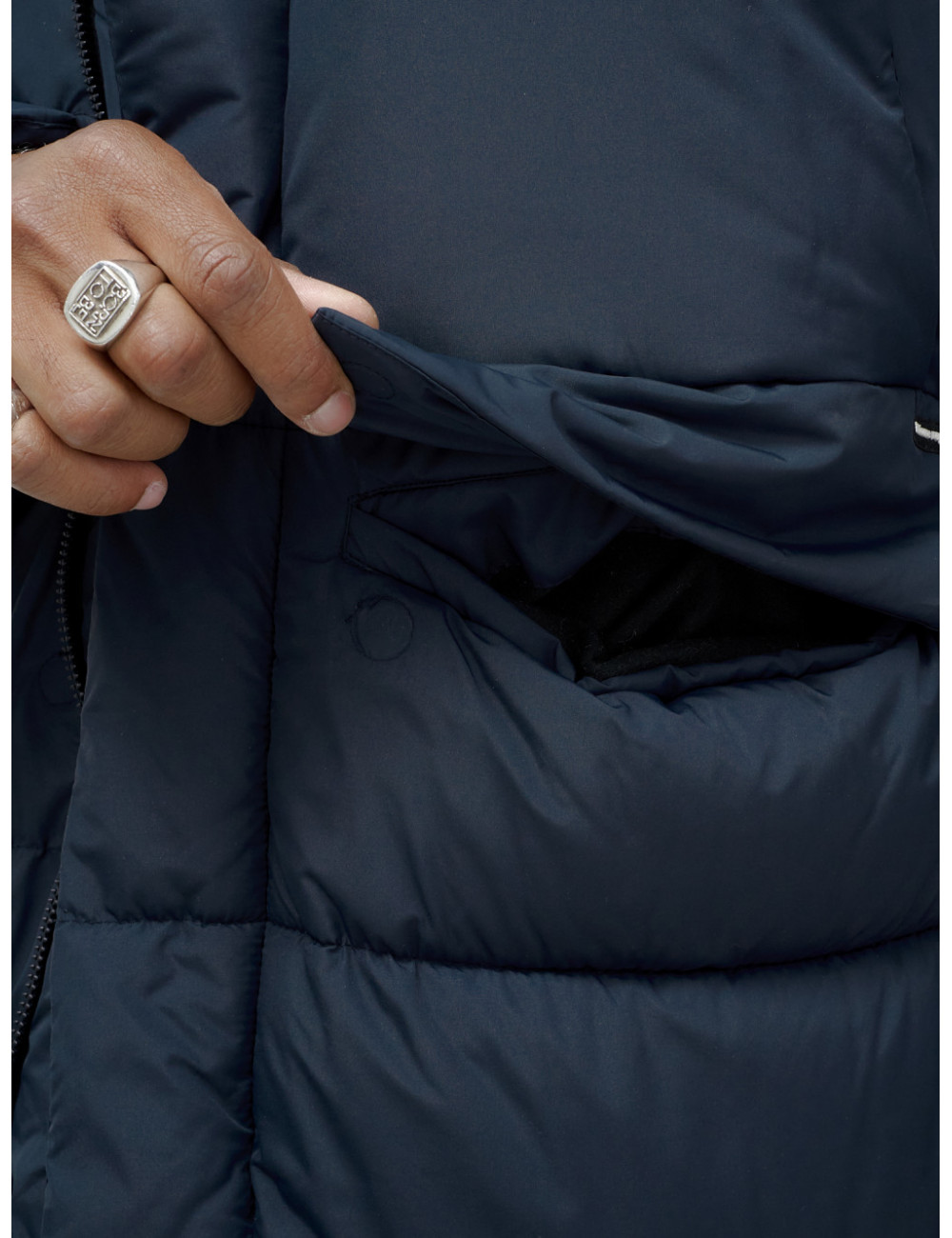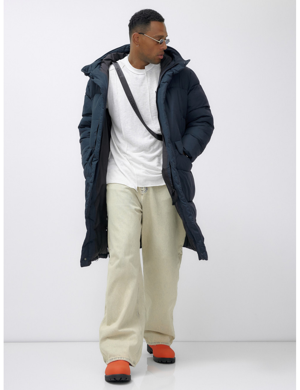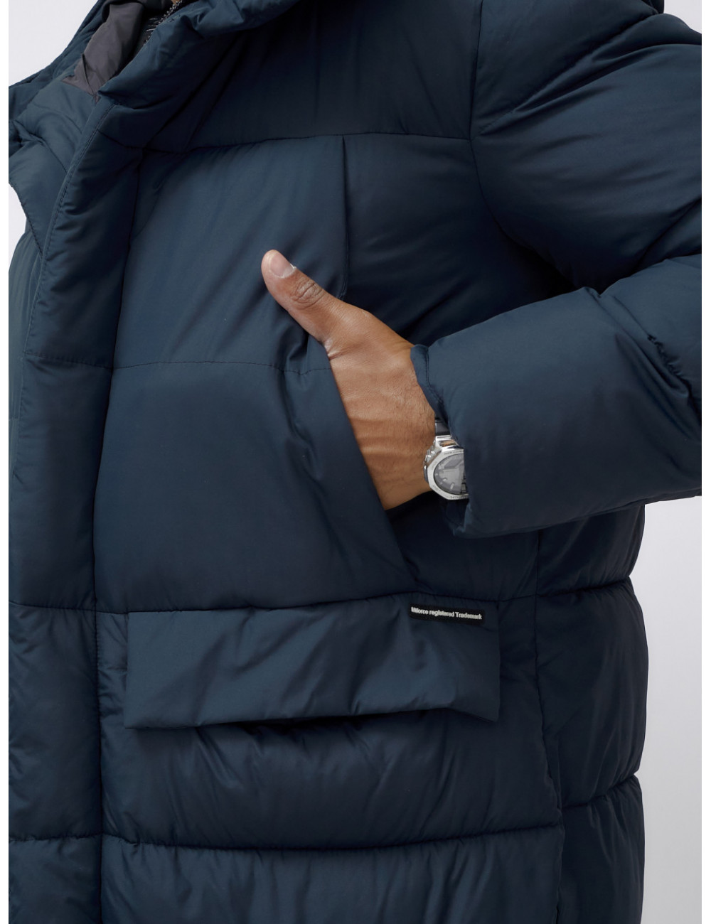Мужская зимняя спортивная парка отлично сочетается с джинсами, спортивными штанами и другой повседневной одеждой. Она станет универсальным элементом вашего гардероба, который подойдёт для различных ситуаций. Доставка по Москве и Московской области Мужская зимняя парка тёмно-синего цвета, спортивная, удлинённая.