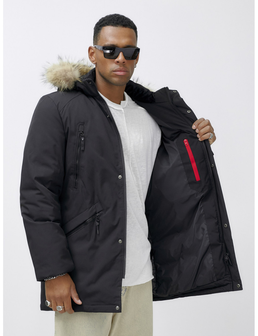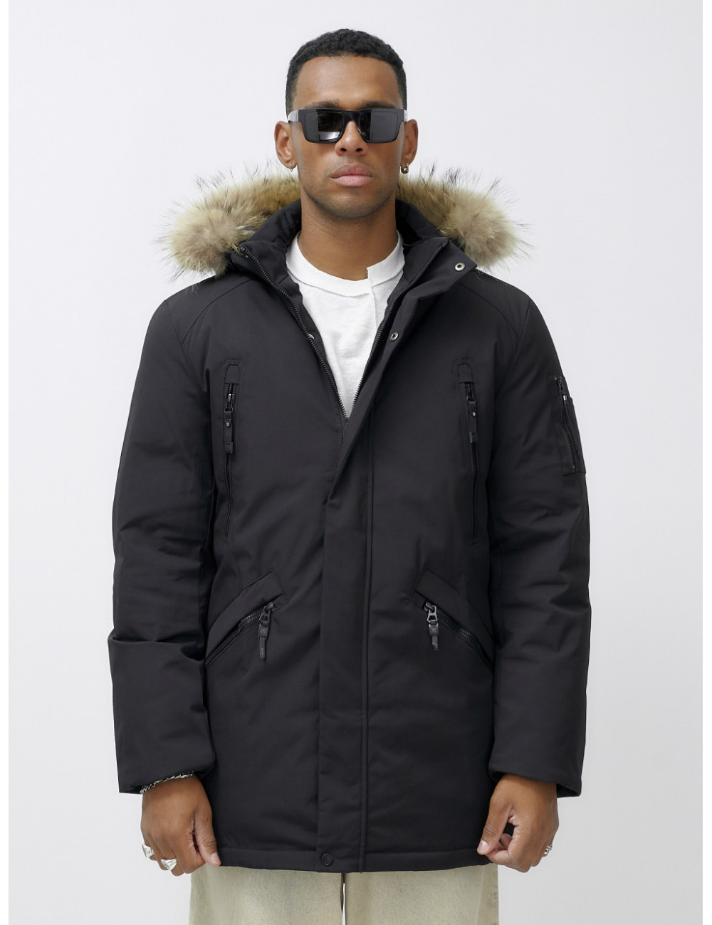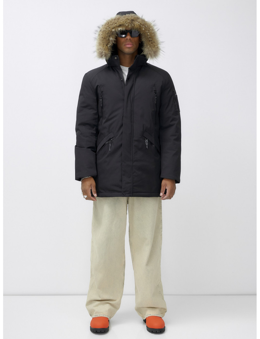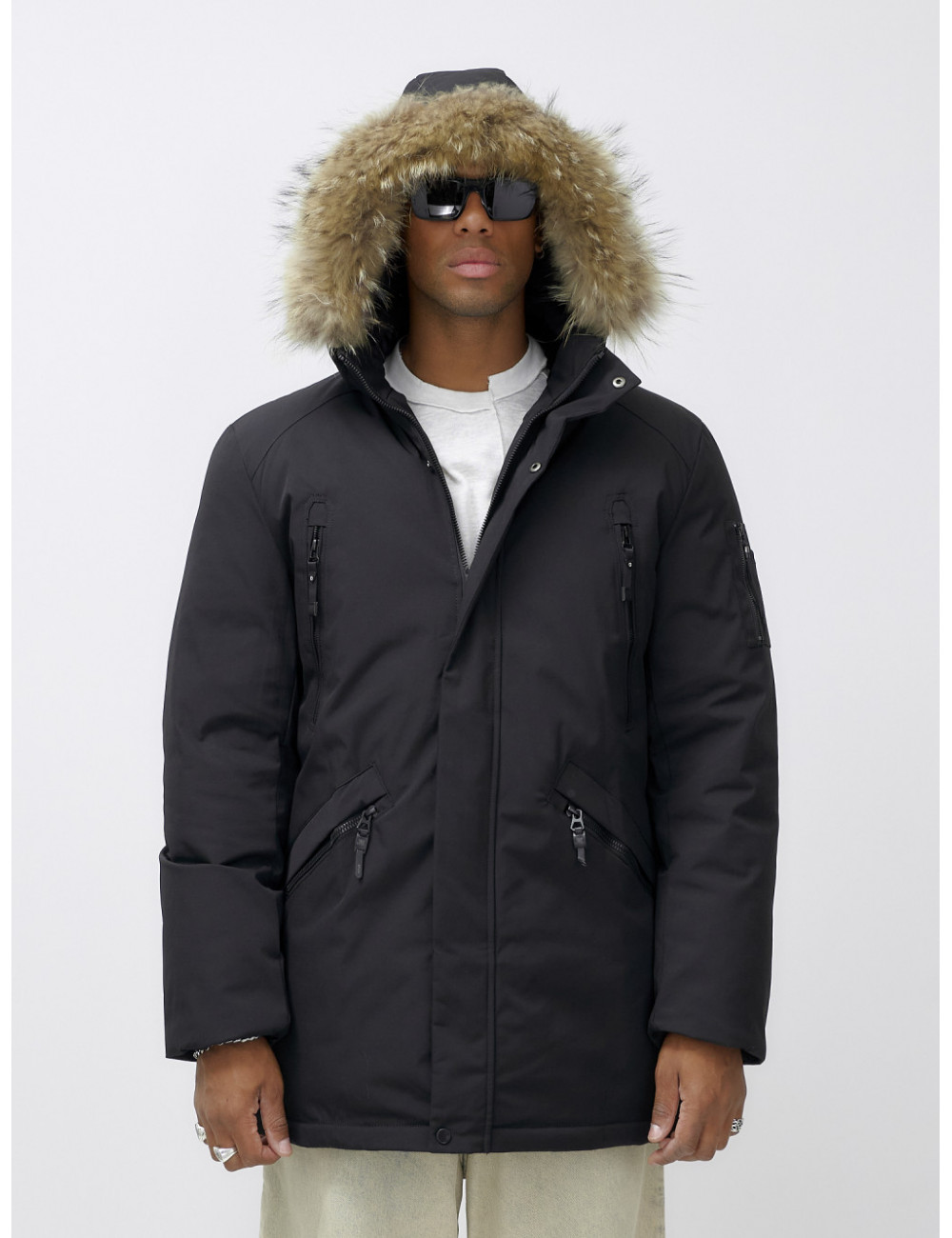 Не упустите шанс стать обладателем этой незаменимой вещи в вашем зимнем гардеробе! Доставка по Москве и Московской области Мужская зимняя удлиненная парка с мехом, чёрная