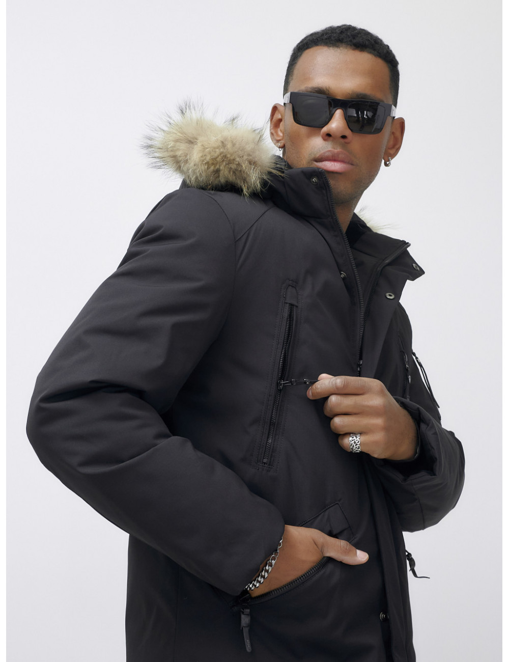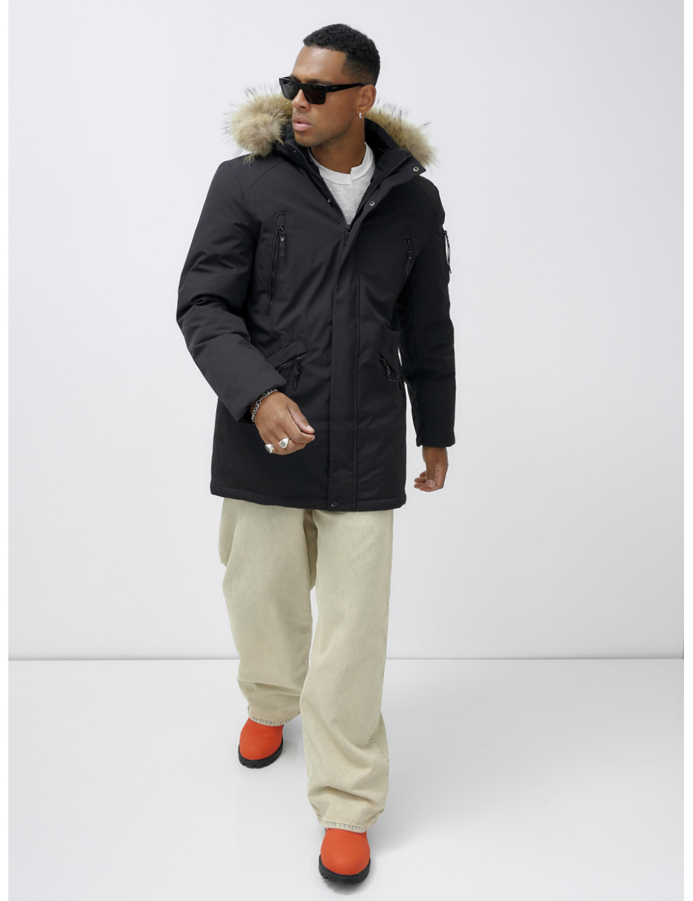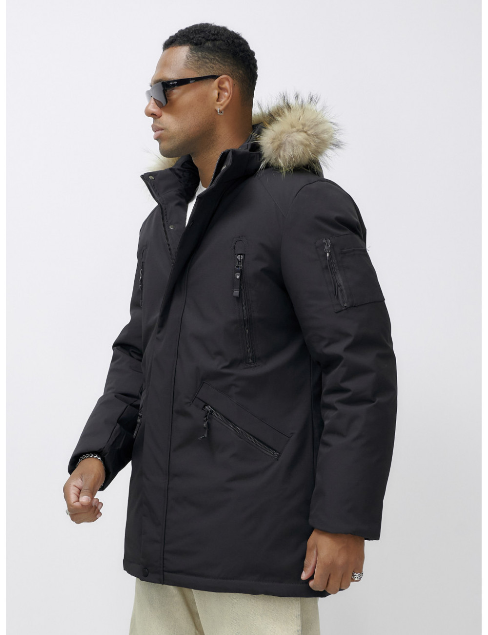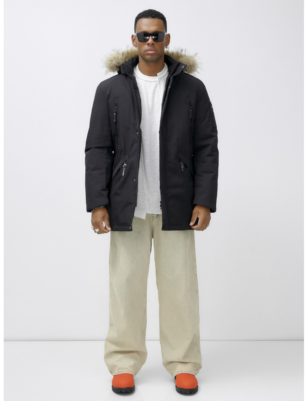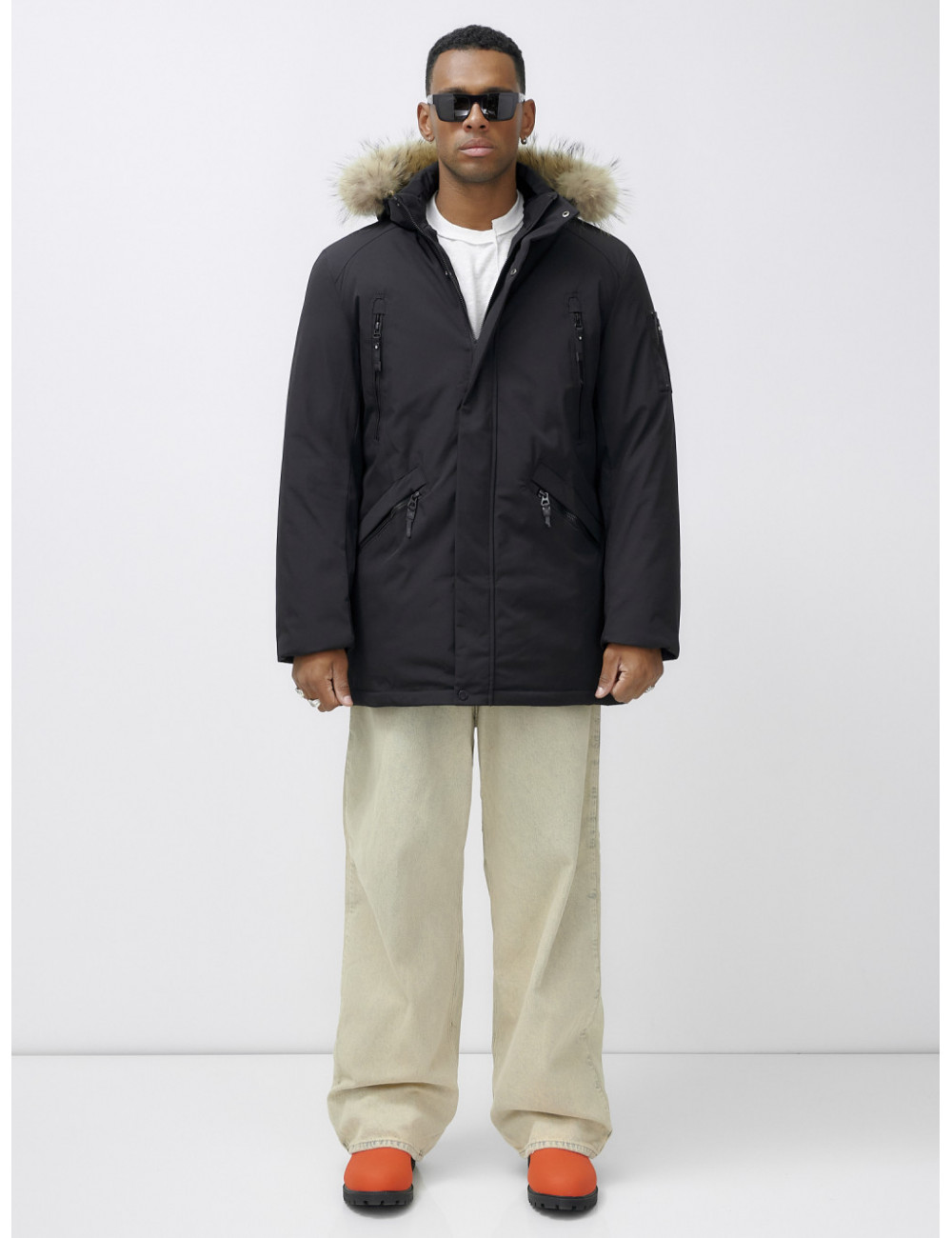 Не упустите шанс стать обладателем этой незаменимой вещи в вашем зимнем гардеробе! Доставка по Москве и Московской области Мужская зимняя удлиненная парка с мехом, чёрная