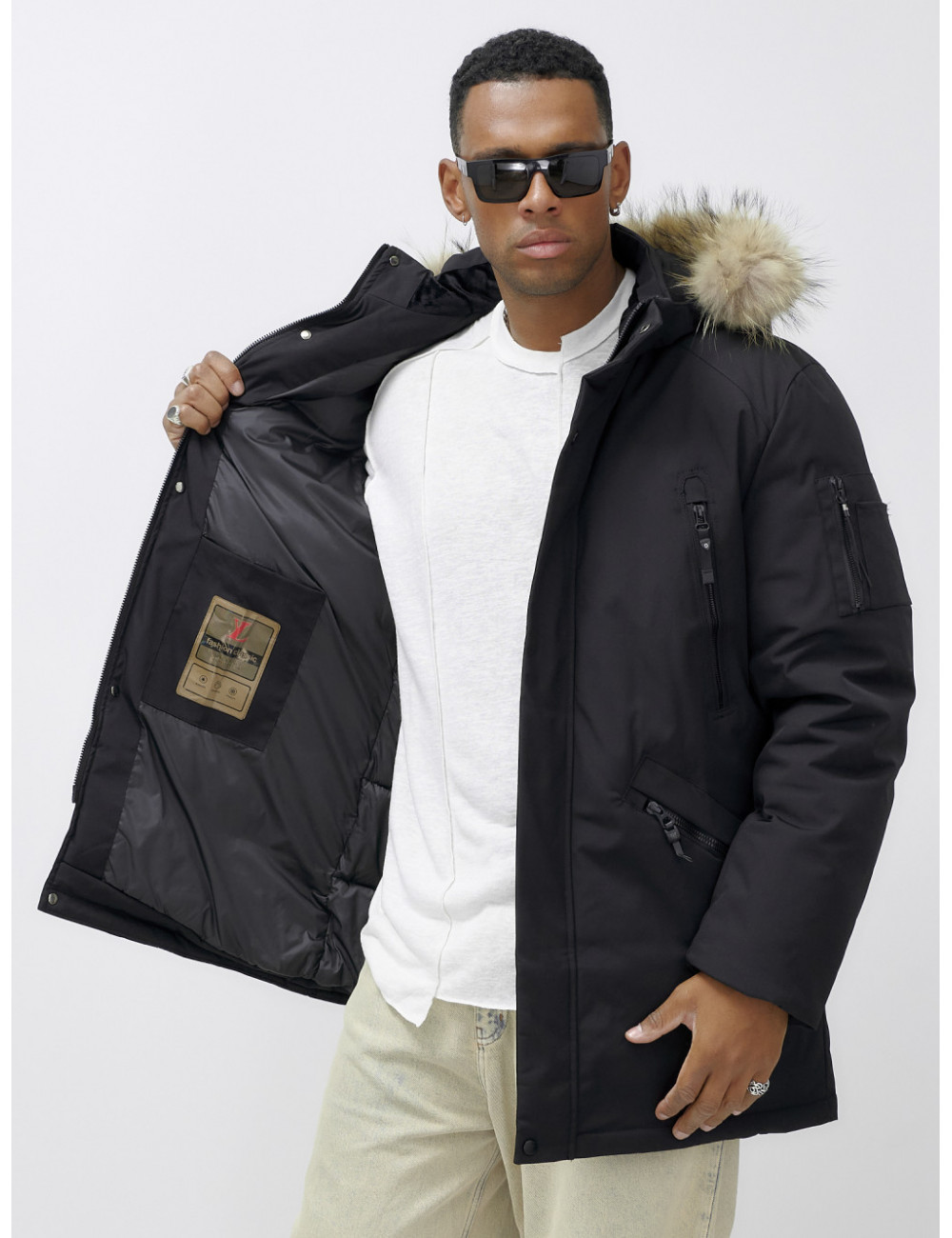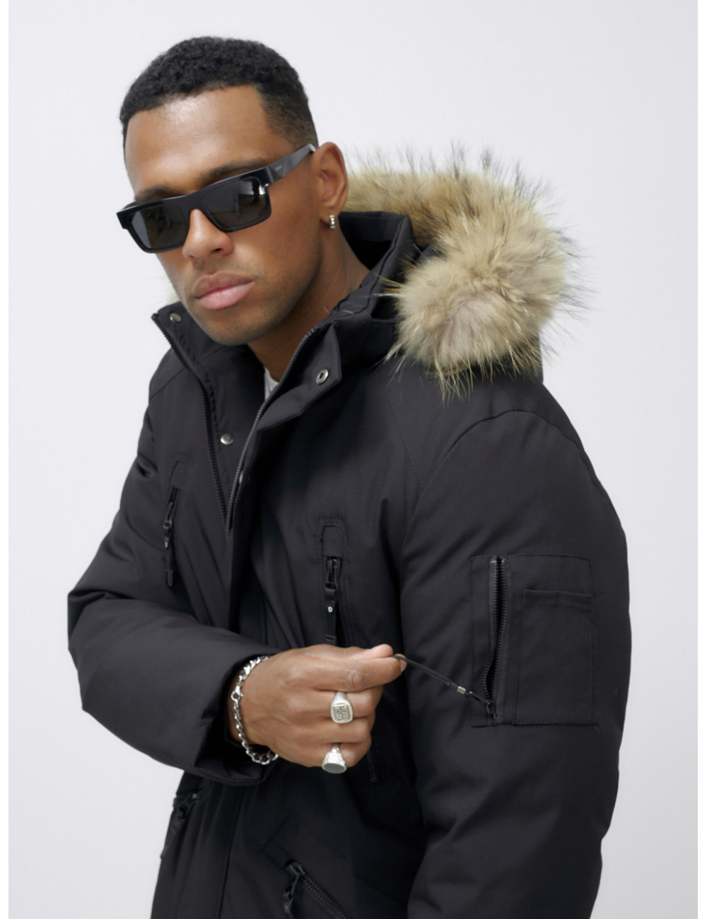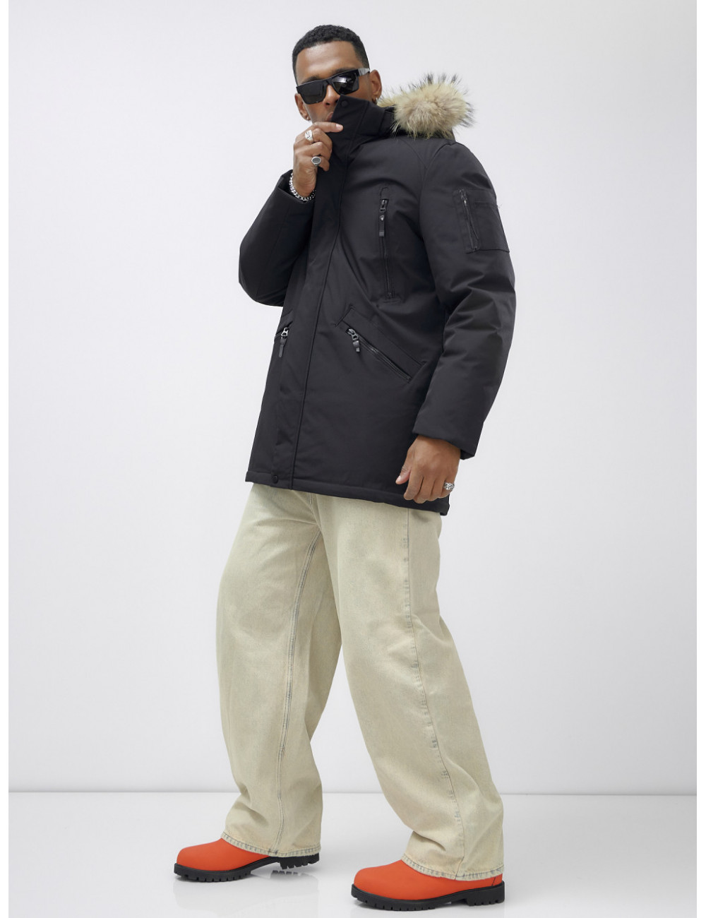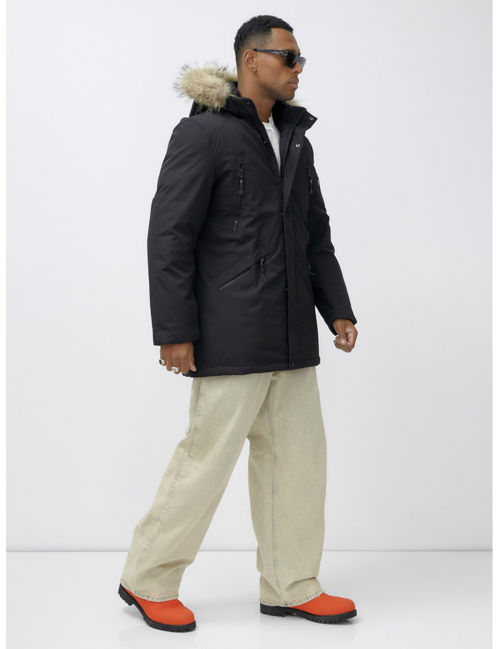 Не упустите шанс стать обладателем этой незаменимой вещи в вашем зимнем гардеробе! Доставка по Москве и Московской области Мужская зимняя удлиненная парка с мехом, чёрная