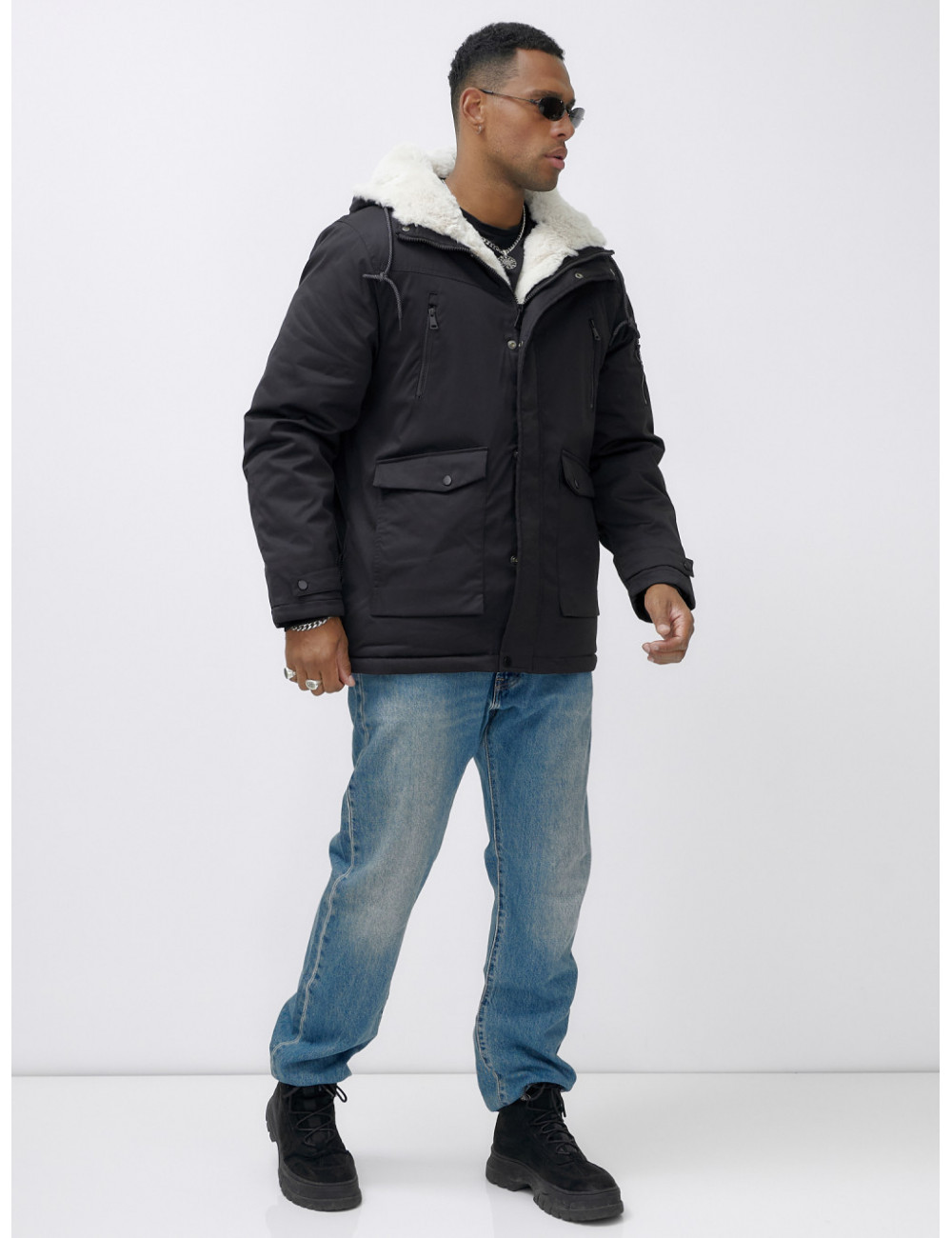 Обязательно учитывайте особенности строения фигуры при выборе размера. Перед использованием как следует отпарьте изделие. Доставка по Москве и Московской области Мужская зимняя удлиненная парка с мехом, чёрная