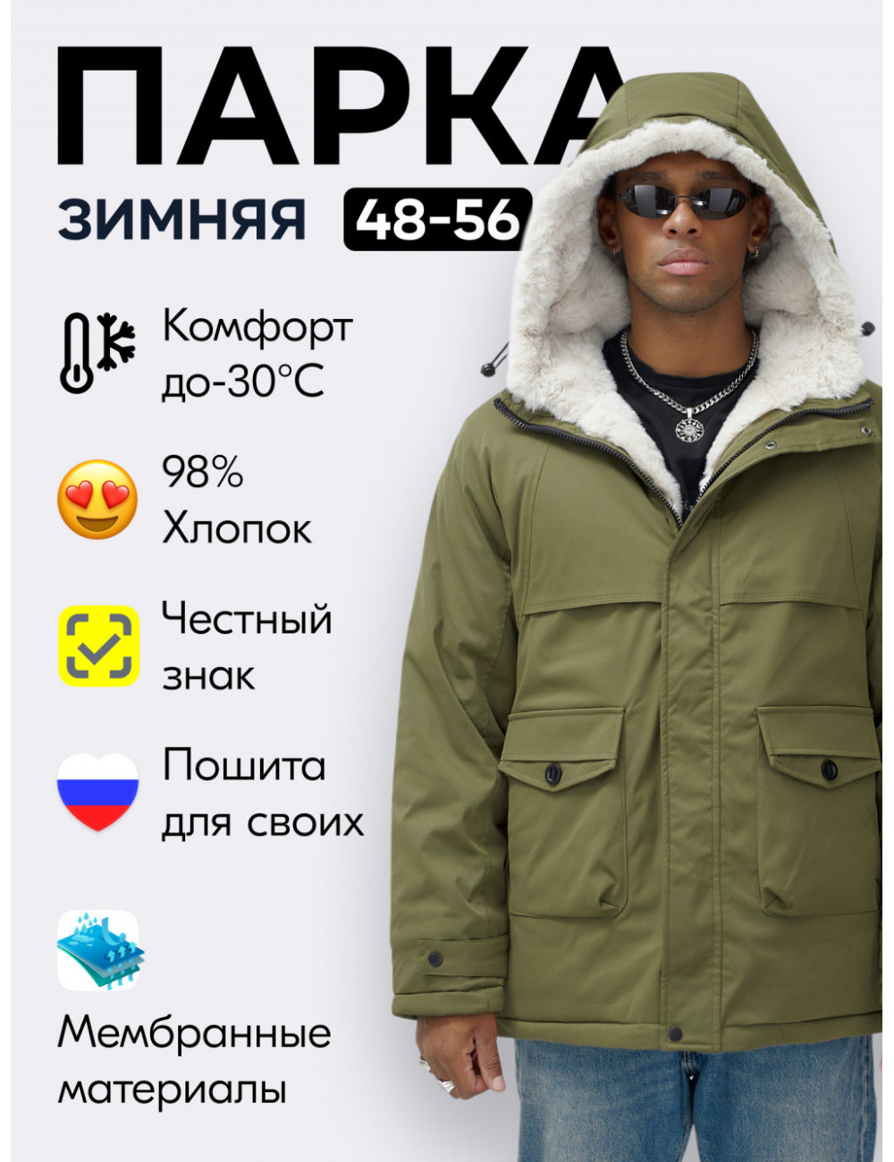 Не упустите возможность сделать зиму более уютной и комфортной! Закажите свою парку уже сегодня и будьте готовы к любым зимним вызовам. Учитывайте особенности строения фигуры при выборе размера. Перед использованием как следует отпарьте изделие. Доставка по Москве и Московской области Мужская зимняя удлиненная парка с мехом хаки.