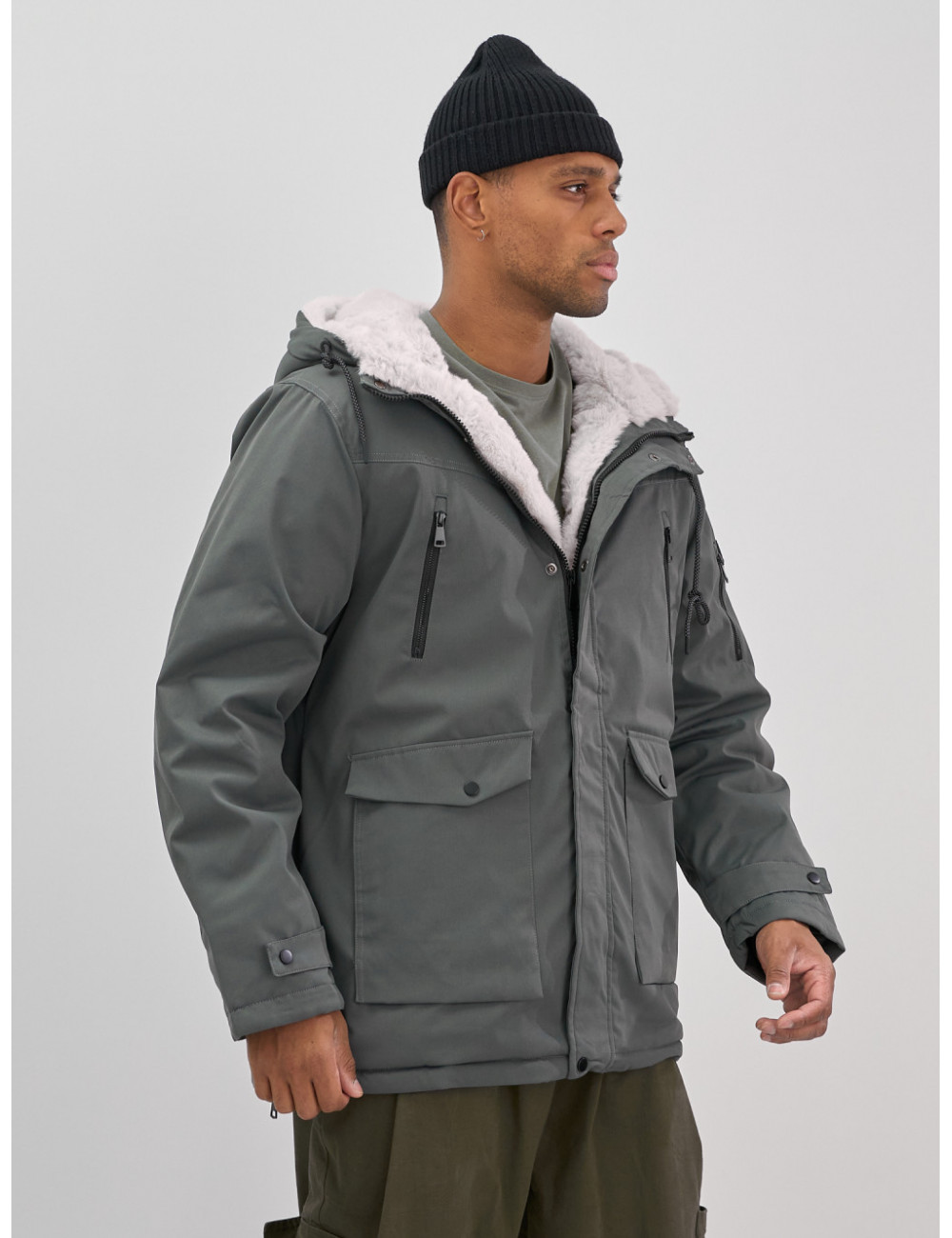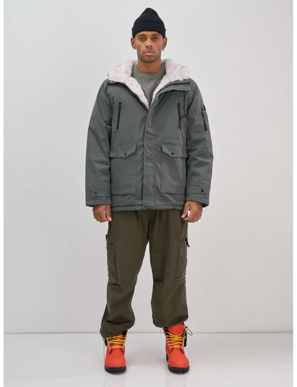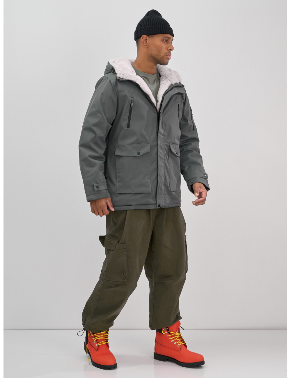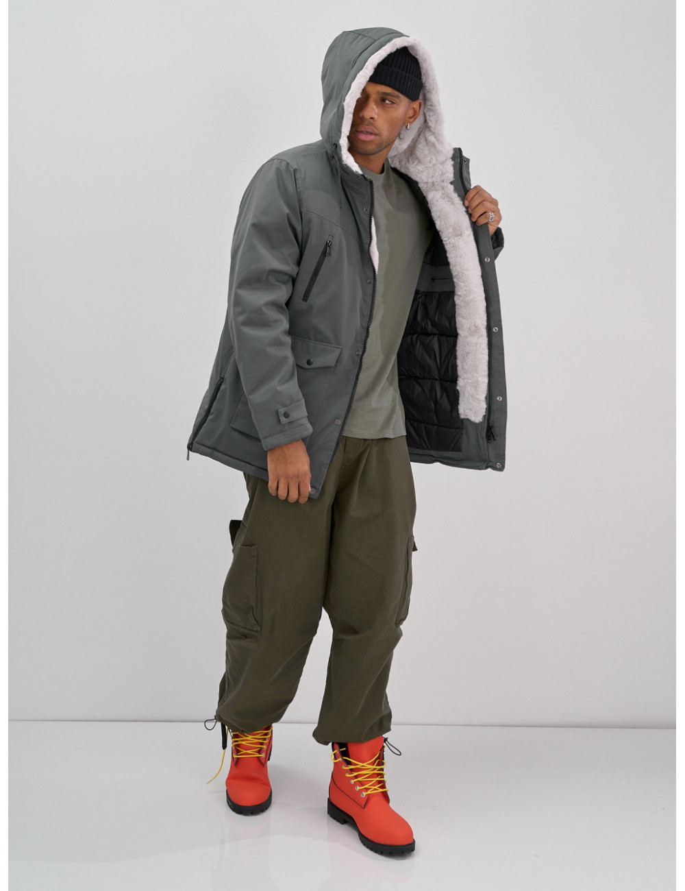Купить за 17712 ₽ в Москве Мужская зимняя удлиненная парка с мехом, серая Мужская зимняя парка: тепло и стиль в одном