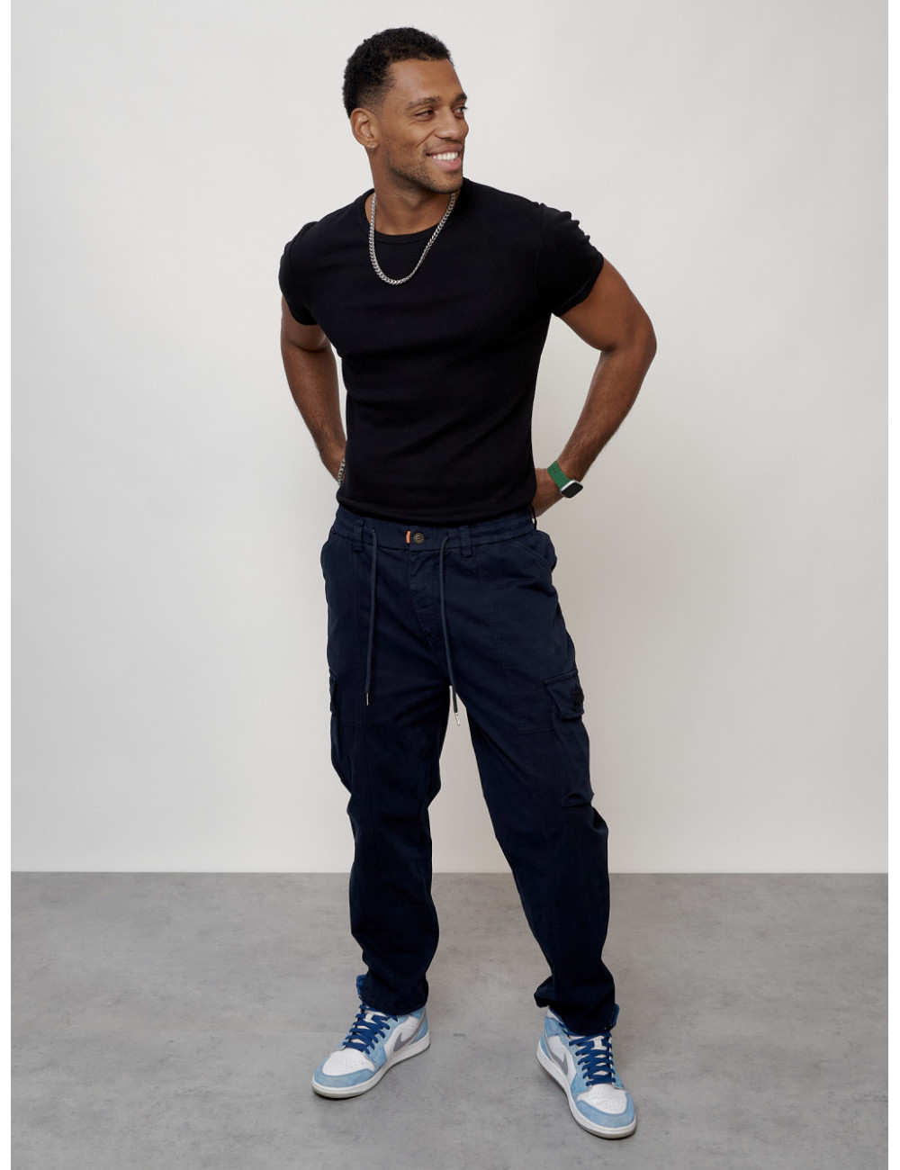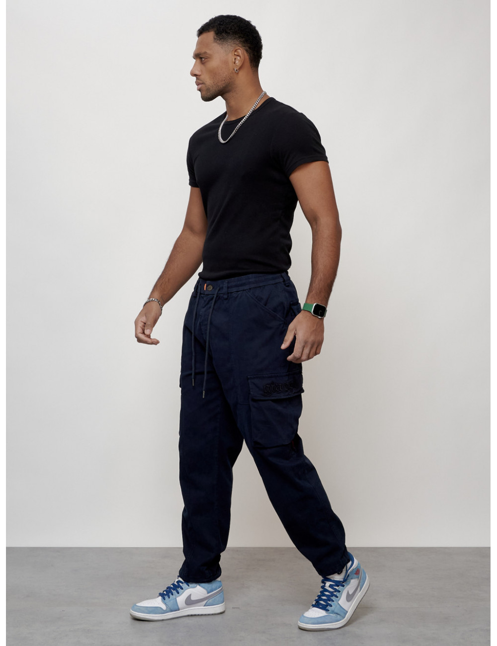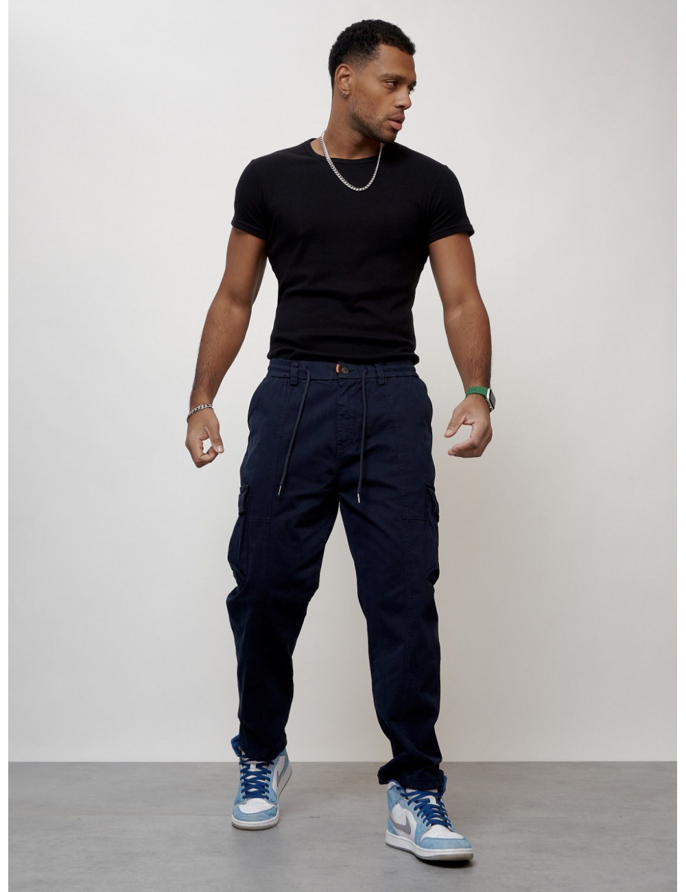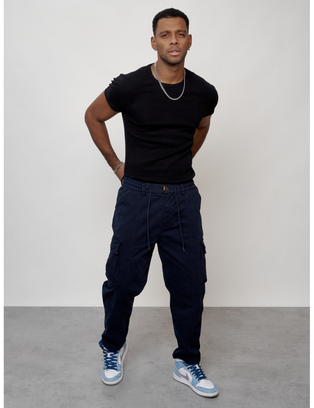 Выбирайте брюки от Ketsi и наслаждайтесь комфортом и стилем! Доставка по Москве и Московской области Мужские брюки карго с накладными карманами, тёмно-синие.
