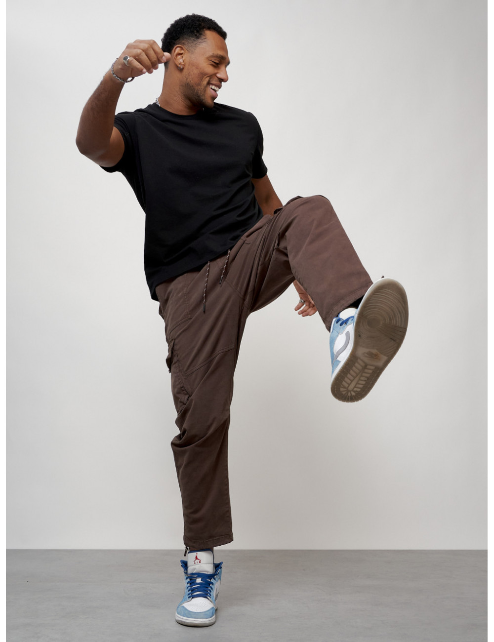 Благодарим вас за покупку и желаем приятного ношения! Доставка по Москве и Московской области Мужские брюки карго с накладными карманами, коричневые