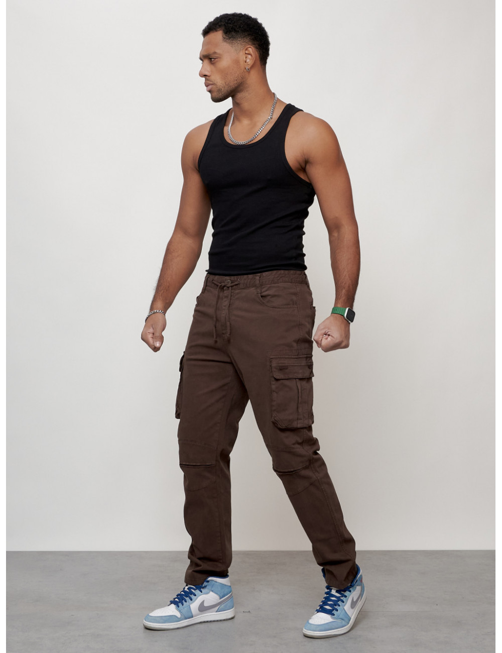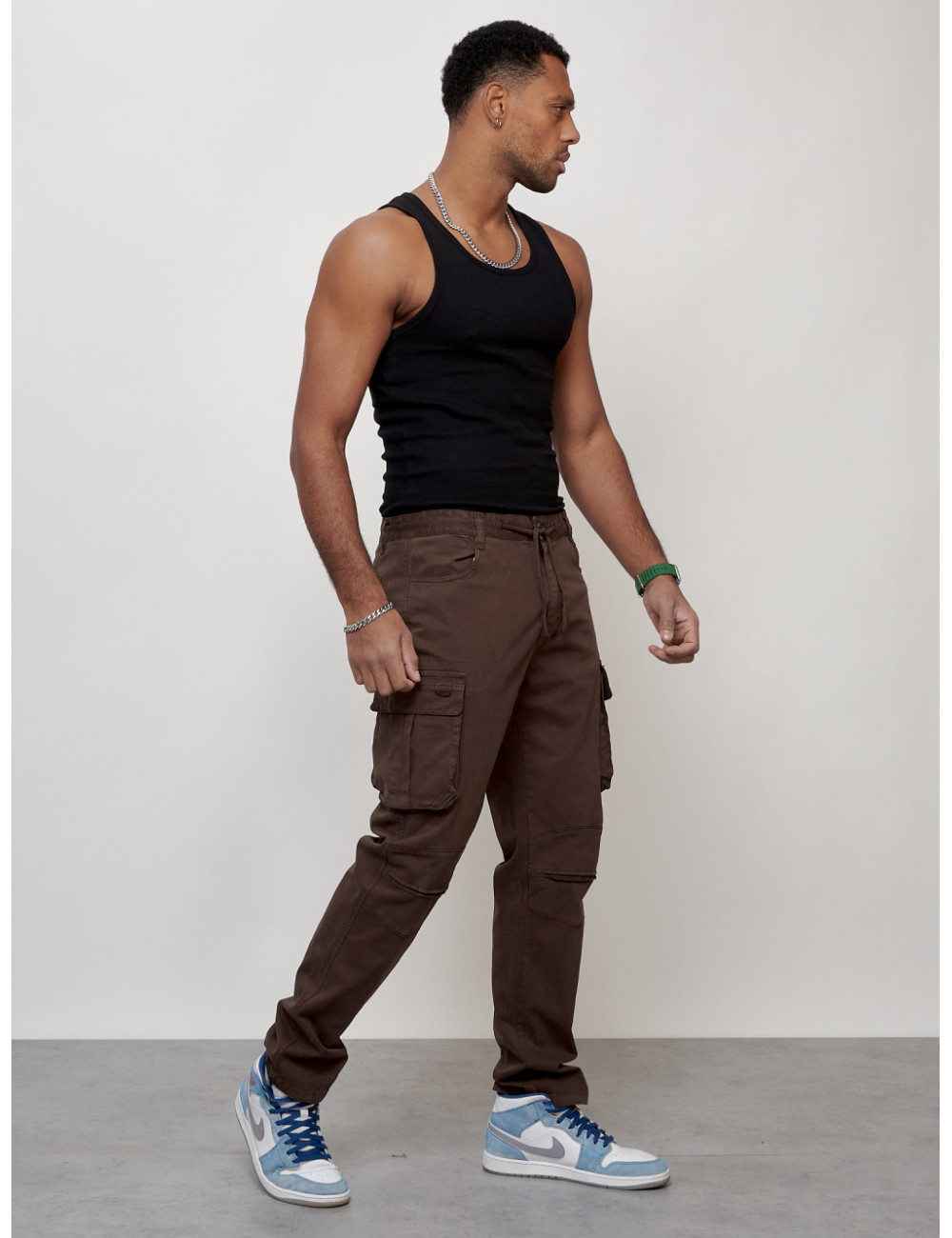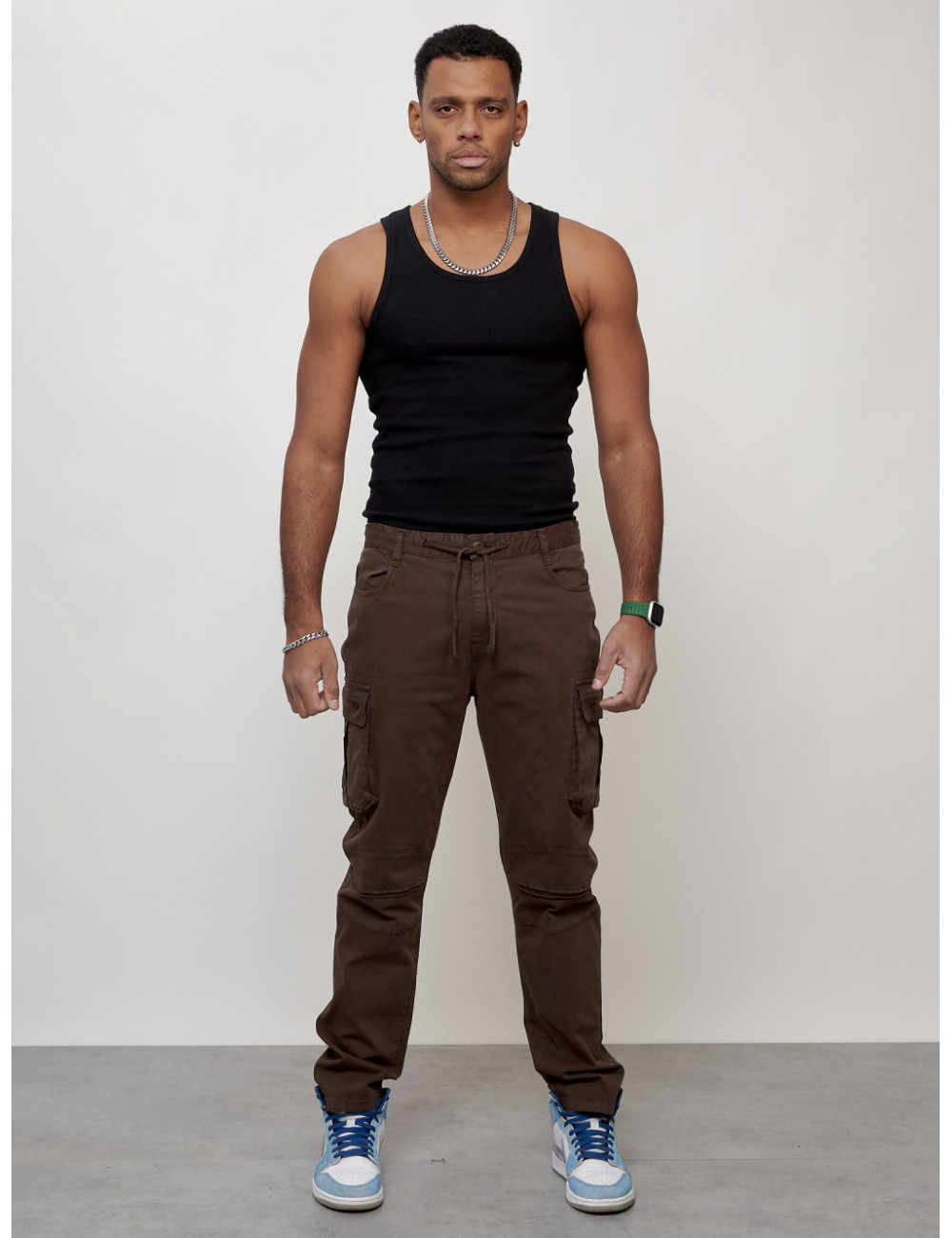 Перед использованием рекомендуется отпарить брюки. Соблюдайте рекомендации по уходу, указанные на внутренней бирке изделия, чтобы брюки радовали вас долгое время. Доставка по Москве и Московской области Мужские джинсы карго коричневого цвета.