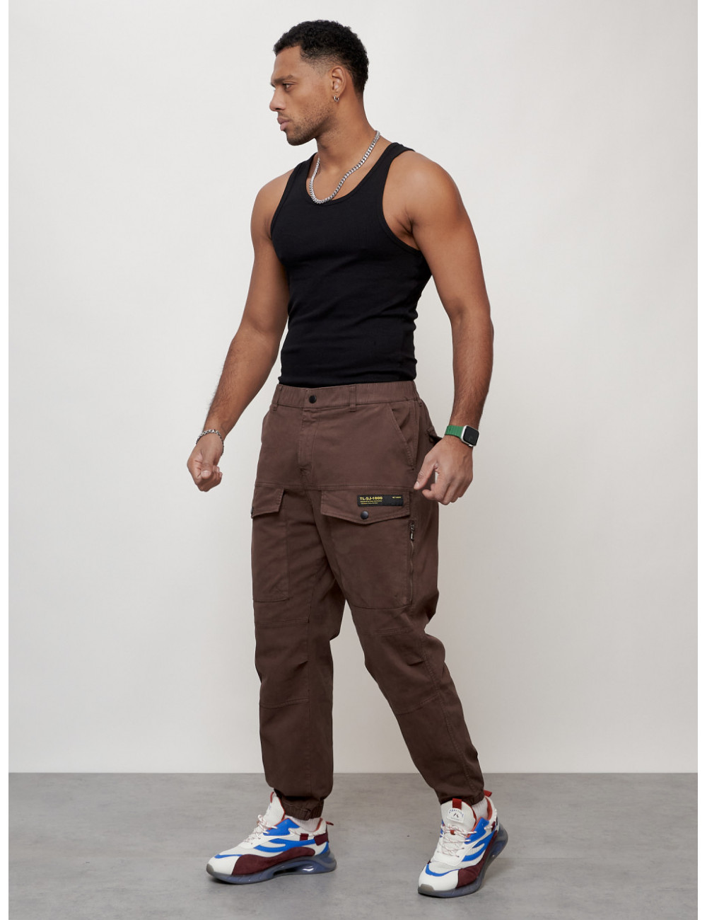 Перед использованием рекомендуется отпарить брюки. Соблюдайте рекомендации по уходу, указанные на внутренней бирке изделия, чтобы брюки радовали вас долгое время. Доставка по Москве и Московской области Мужские джинсы карго коричневого цвета с накладными карманами