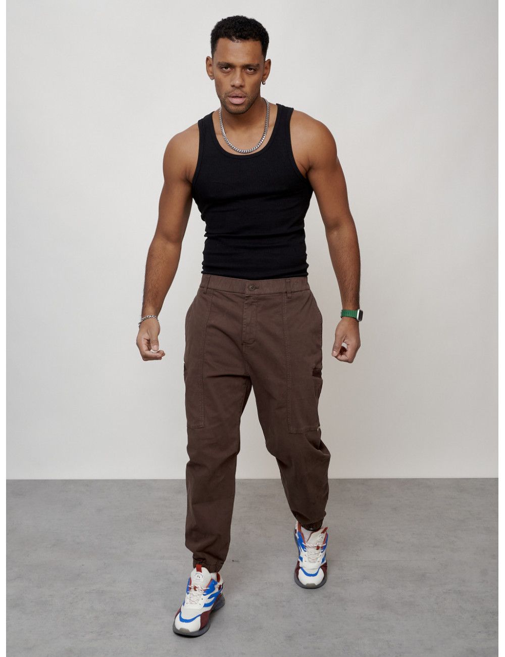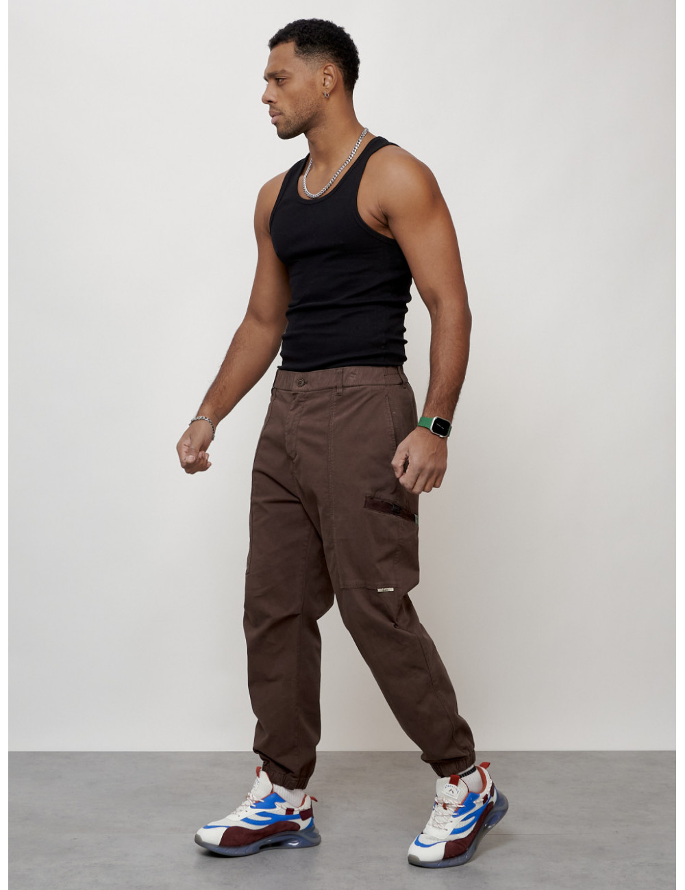 Наслаждайтесь комфортом и стилем с мужскими джинсовыми джоггерами! Доставка по Москве и Московской области Мужские джинсы карго коричневого цвета с накладными карманами