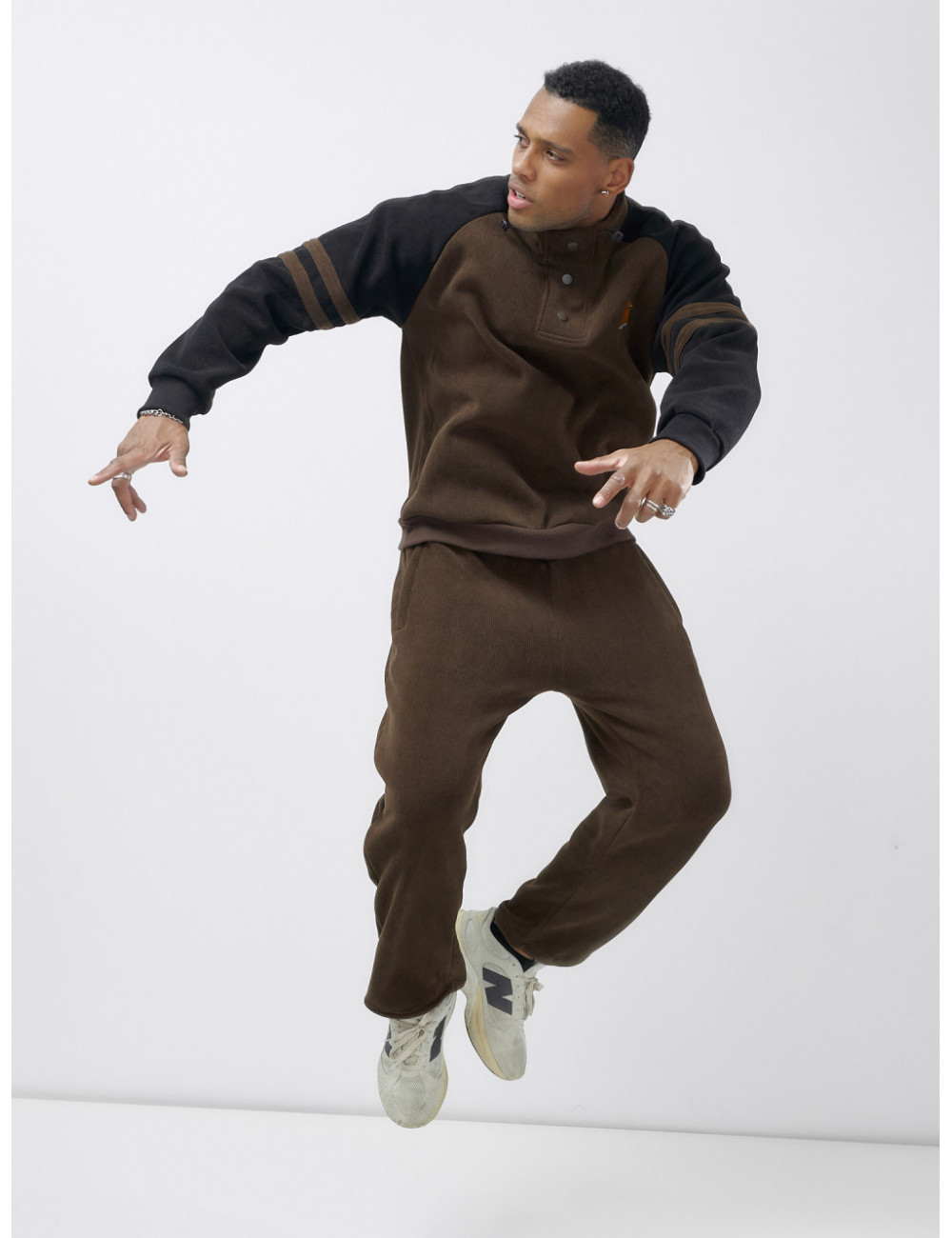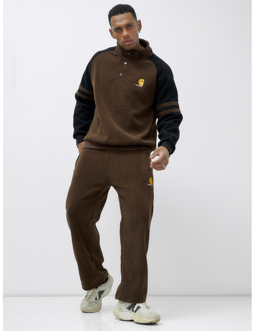 Этот спортивный костюм можно сочетать с кроссовками, кедами или другой спортивной обувью. Он станет отличным дополнением к вашему гардеробу и позволит создать множество стильных образов. Доставка по Москве и Московской области Мужской демисезонный спортивный костюм на флисе, коричневый.