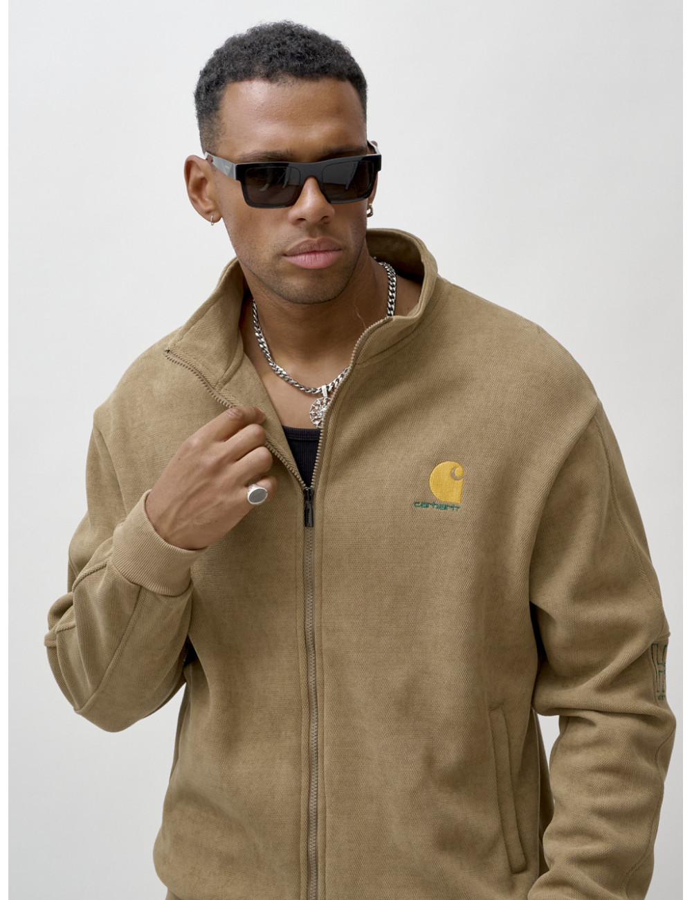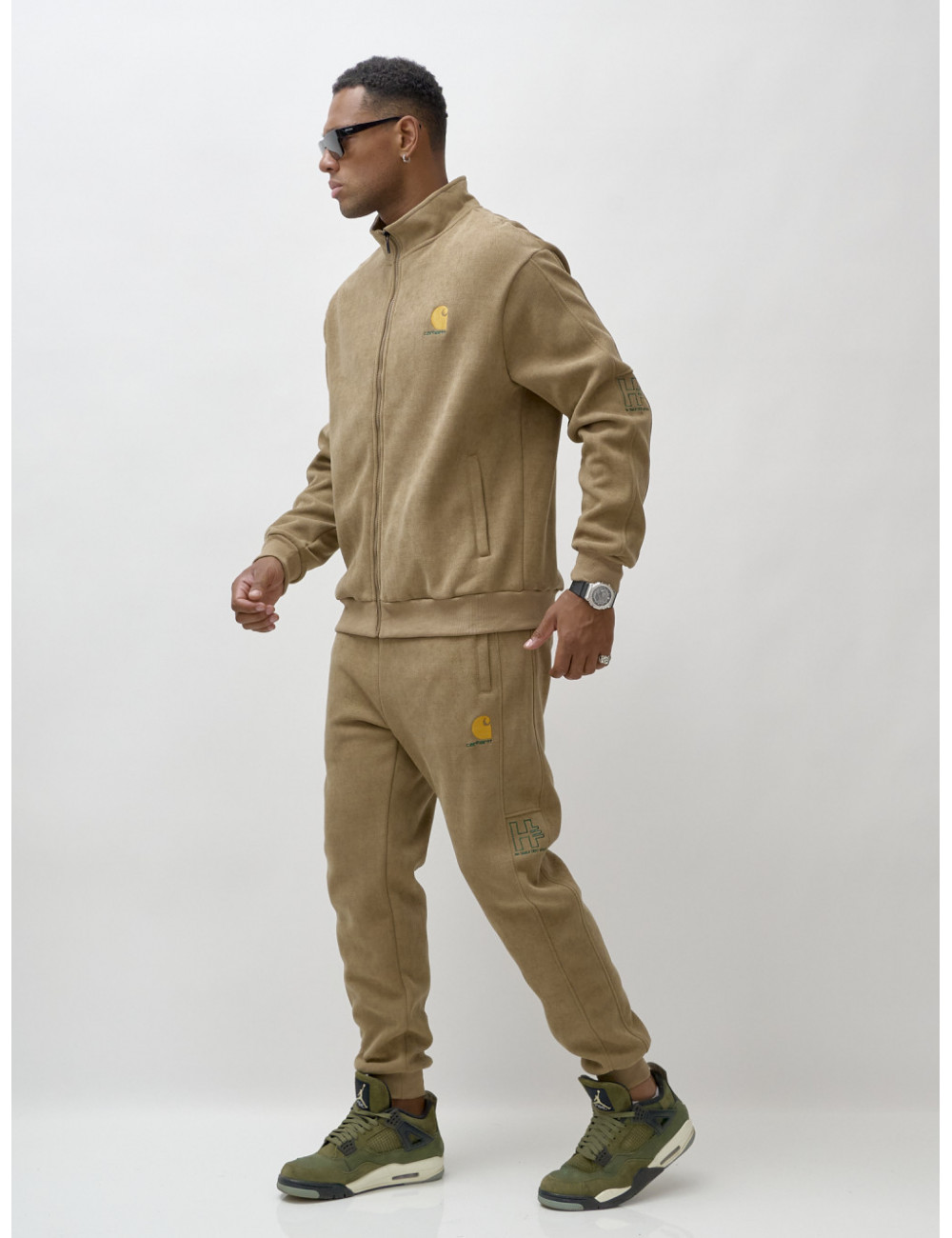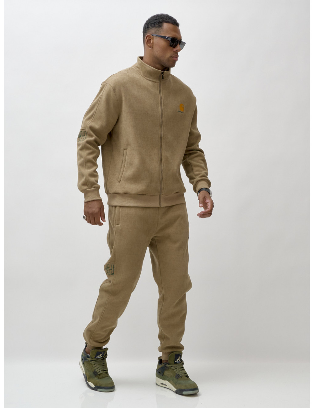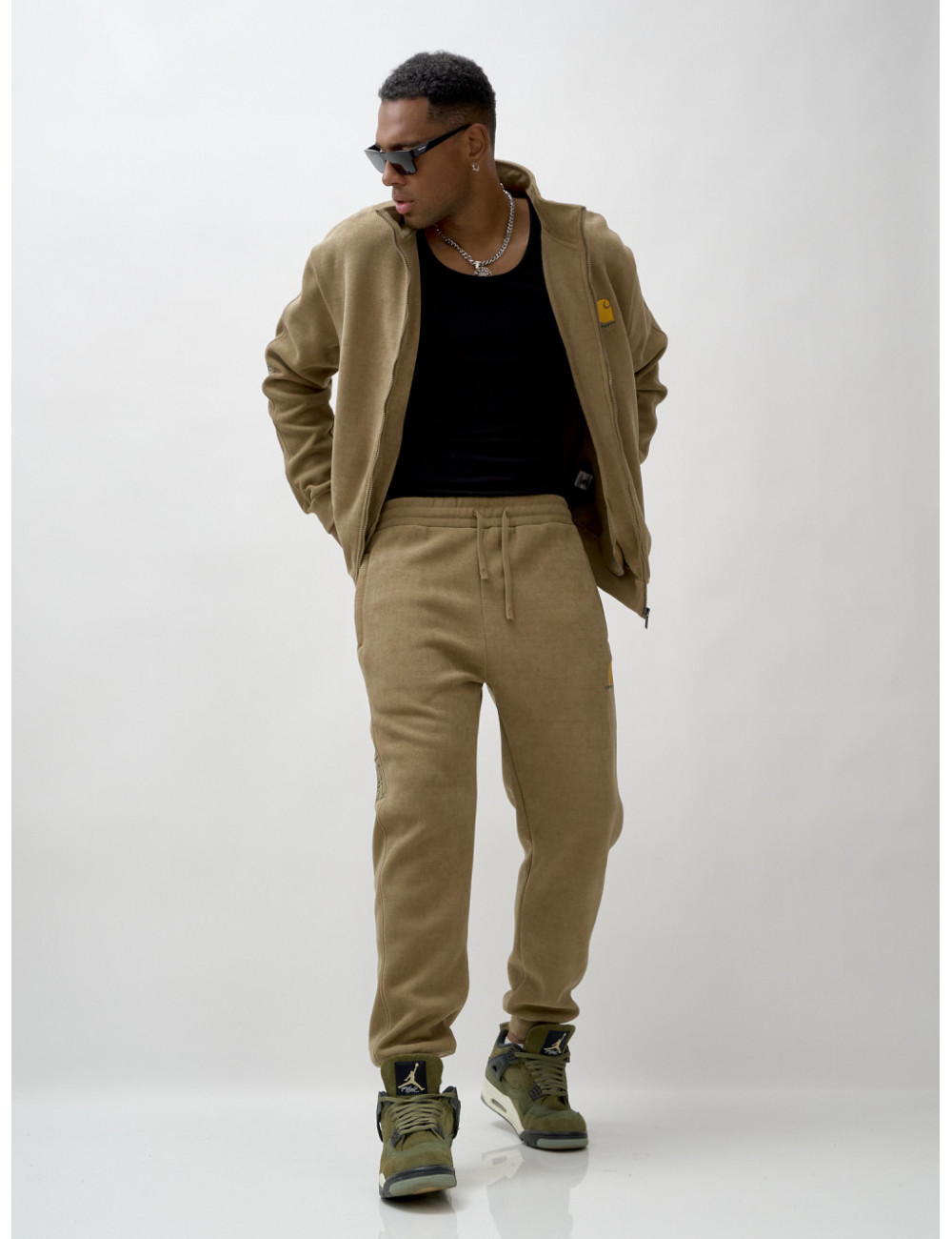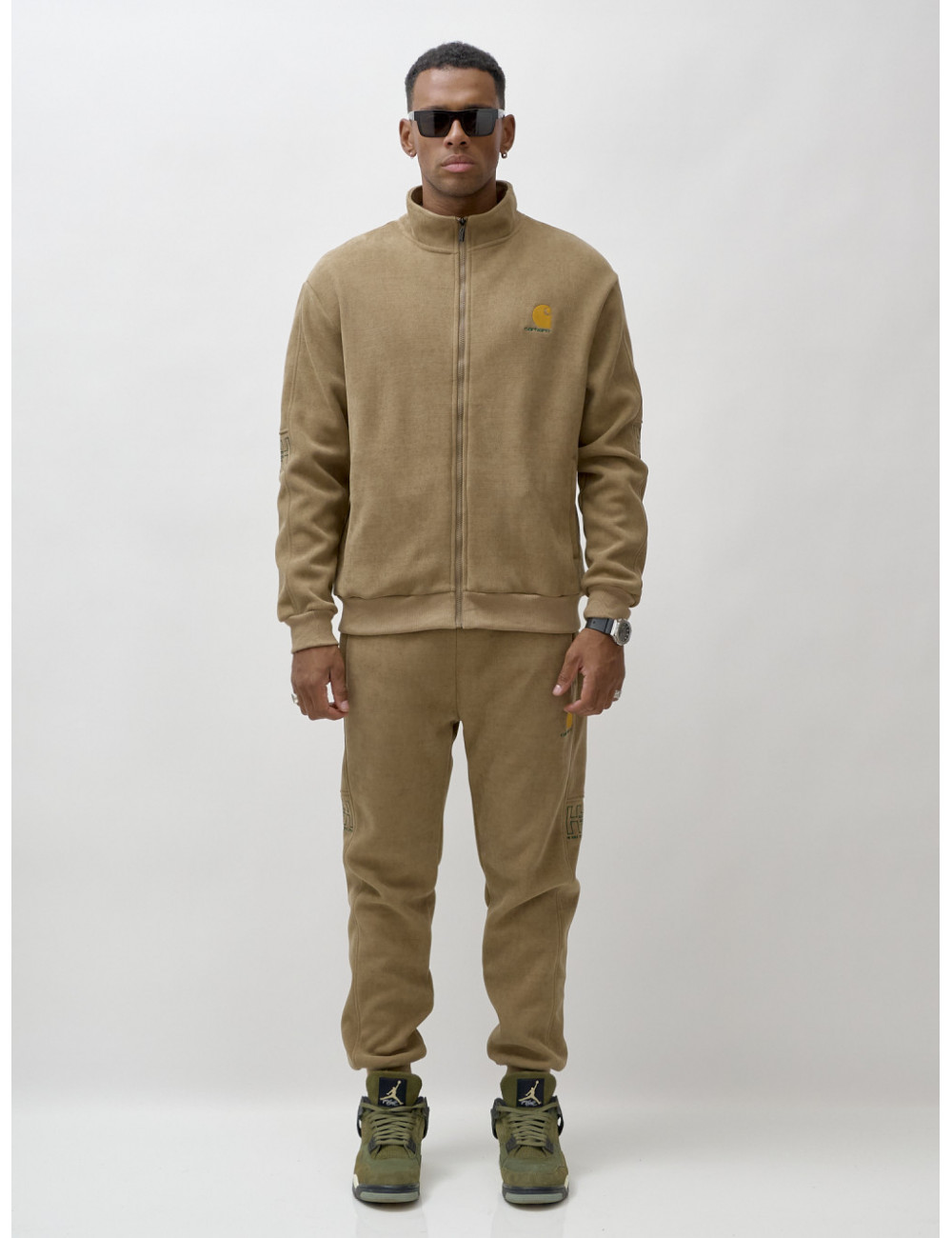 Мужской демисезонный спортивный костюм коричневого цвета на флисе