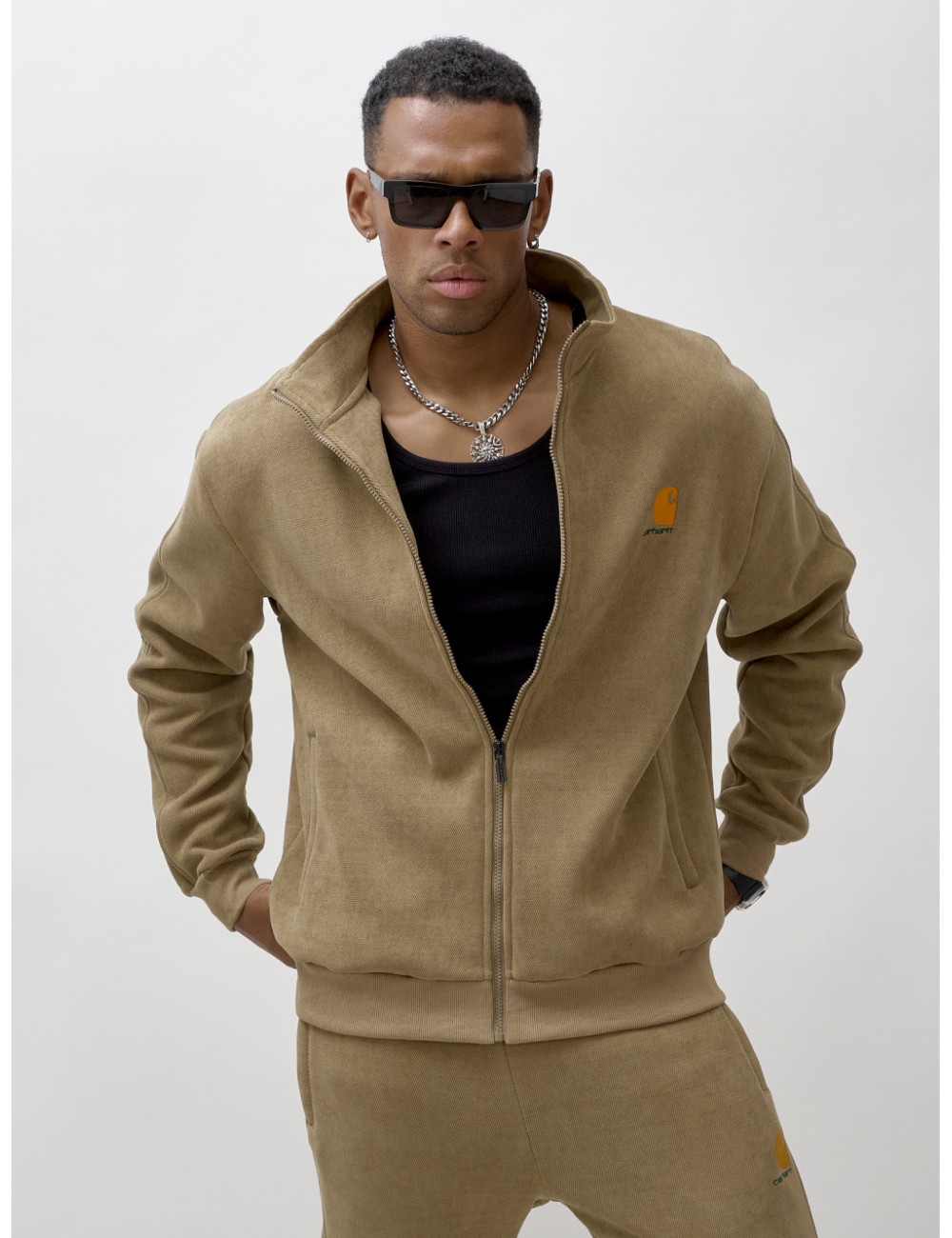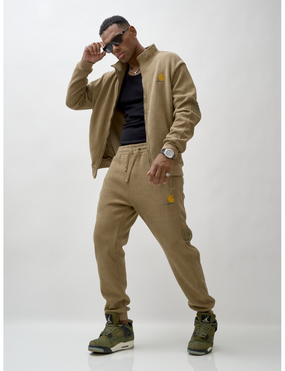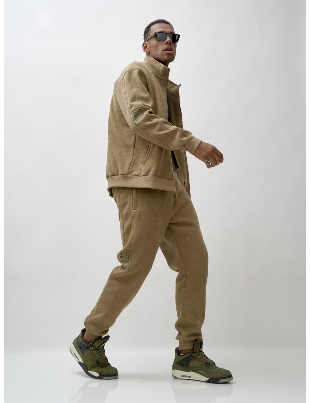 Купить за 11952 ₽ в Москве Мужской демисезонный спортивный костюм коричневого цвета на флисе Спортивный утеплённый мужской костюм с начёсом