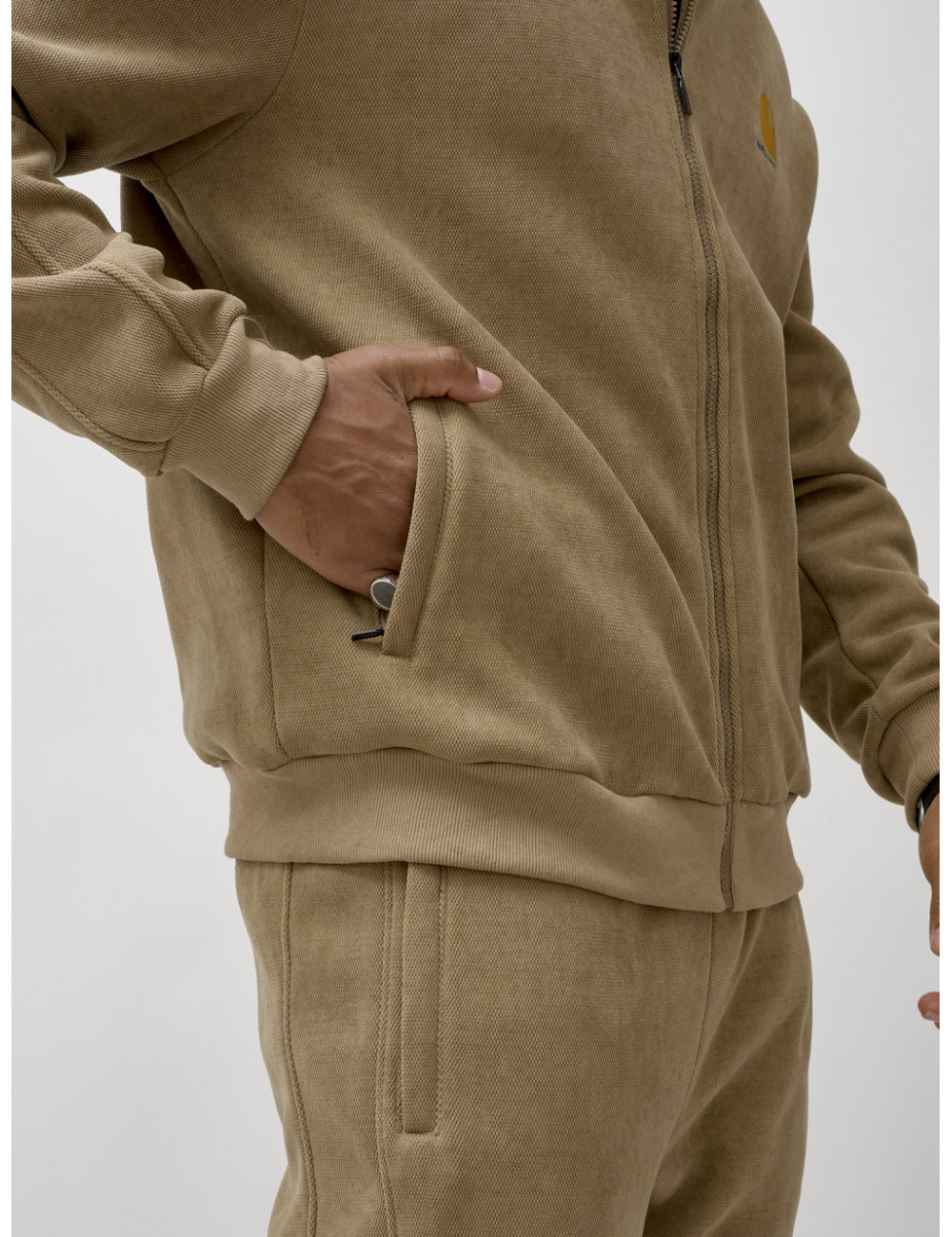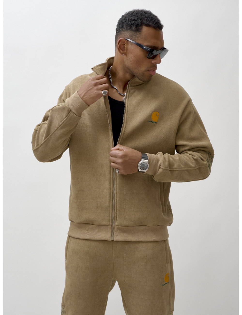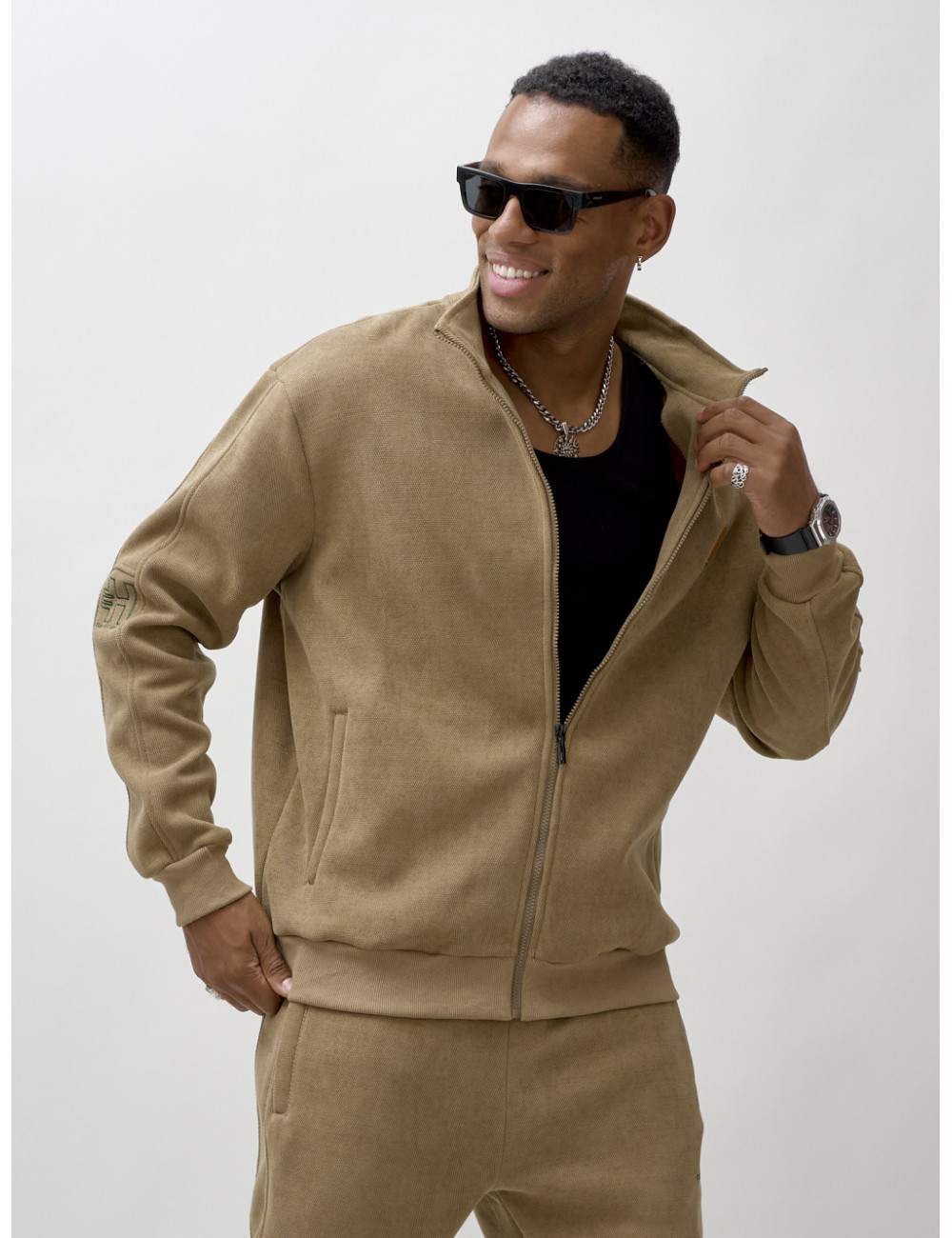 Купить за 11952 ₽ в Москве Мужской демисезонный спортивный костюм коричневого цвета на флисе Спортивный утеплённый мужской костюм с начёсом