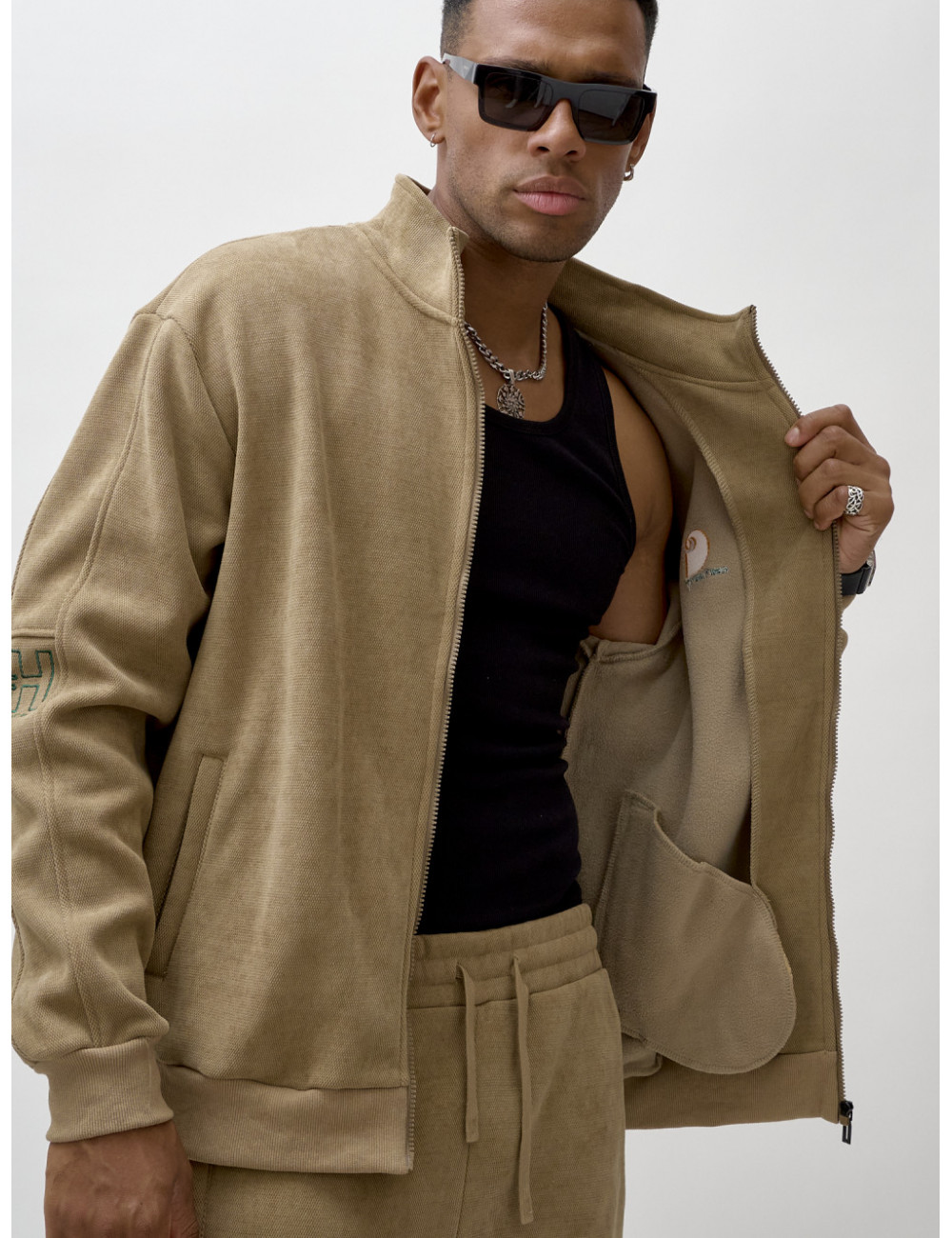 Технические характеристики Мужской демисезонный спортивный костюм коричневого цвета на флисе