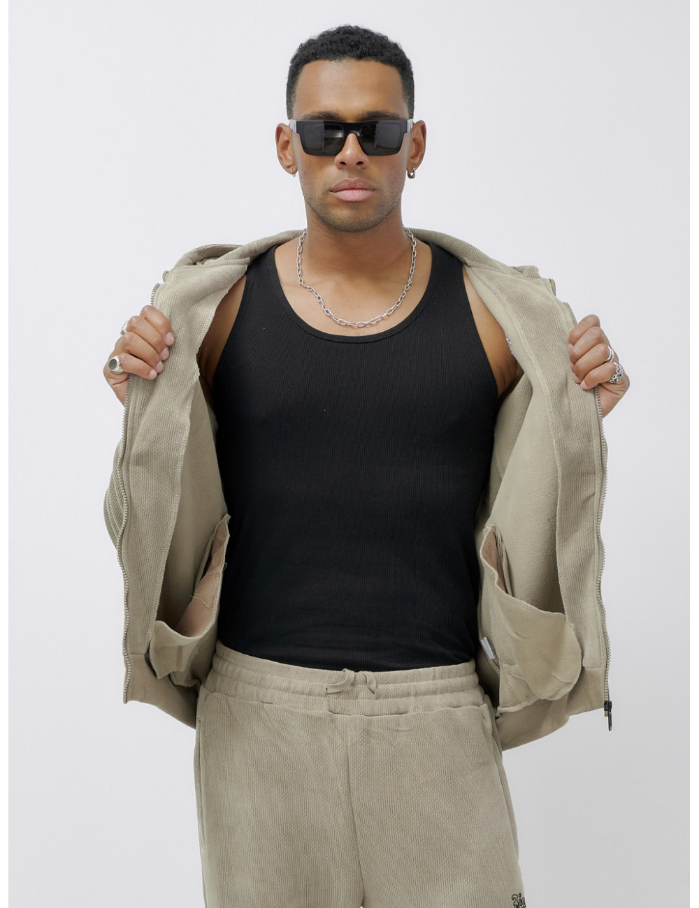 - Плотная вельветовая ткань с флисовым начёсом: сохраняет тепло в прохладную погоду.