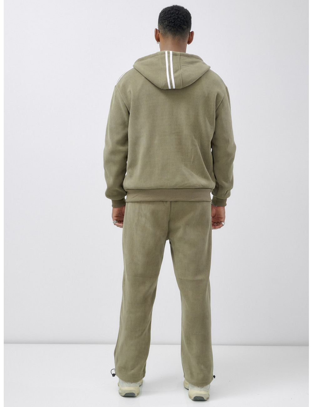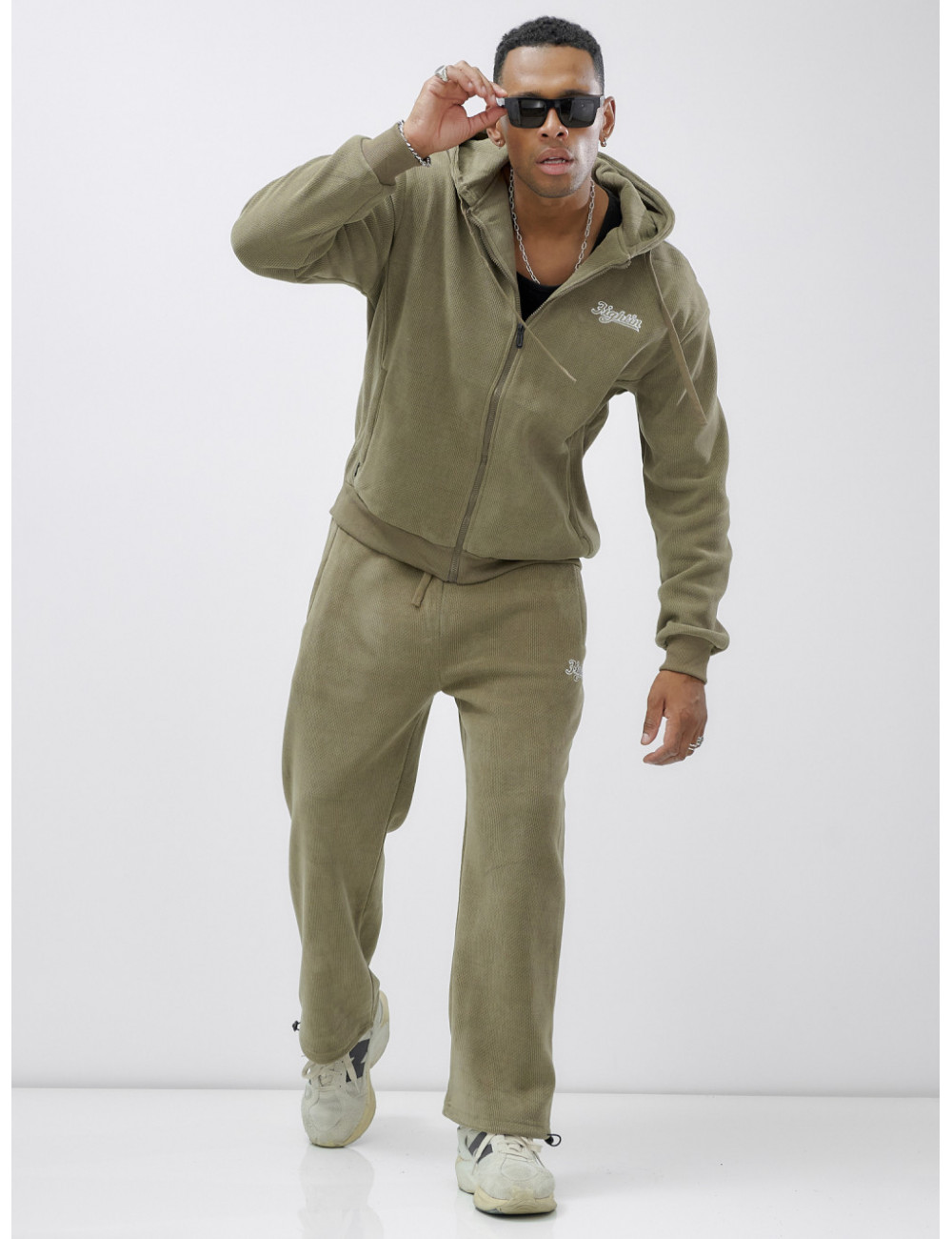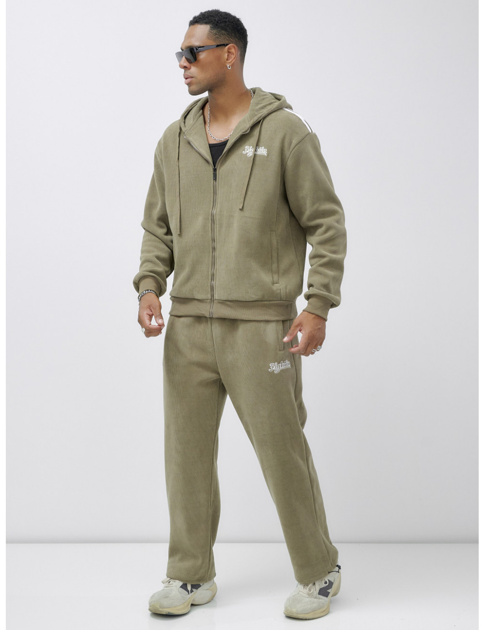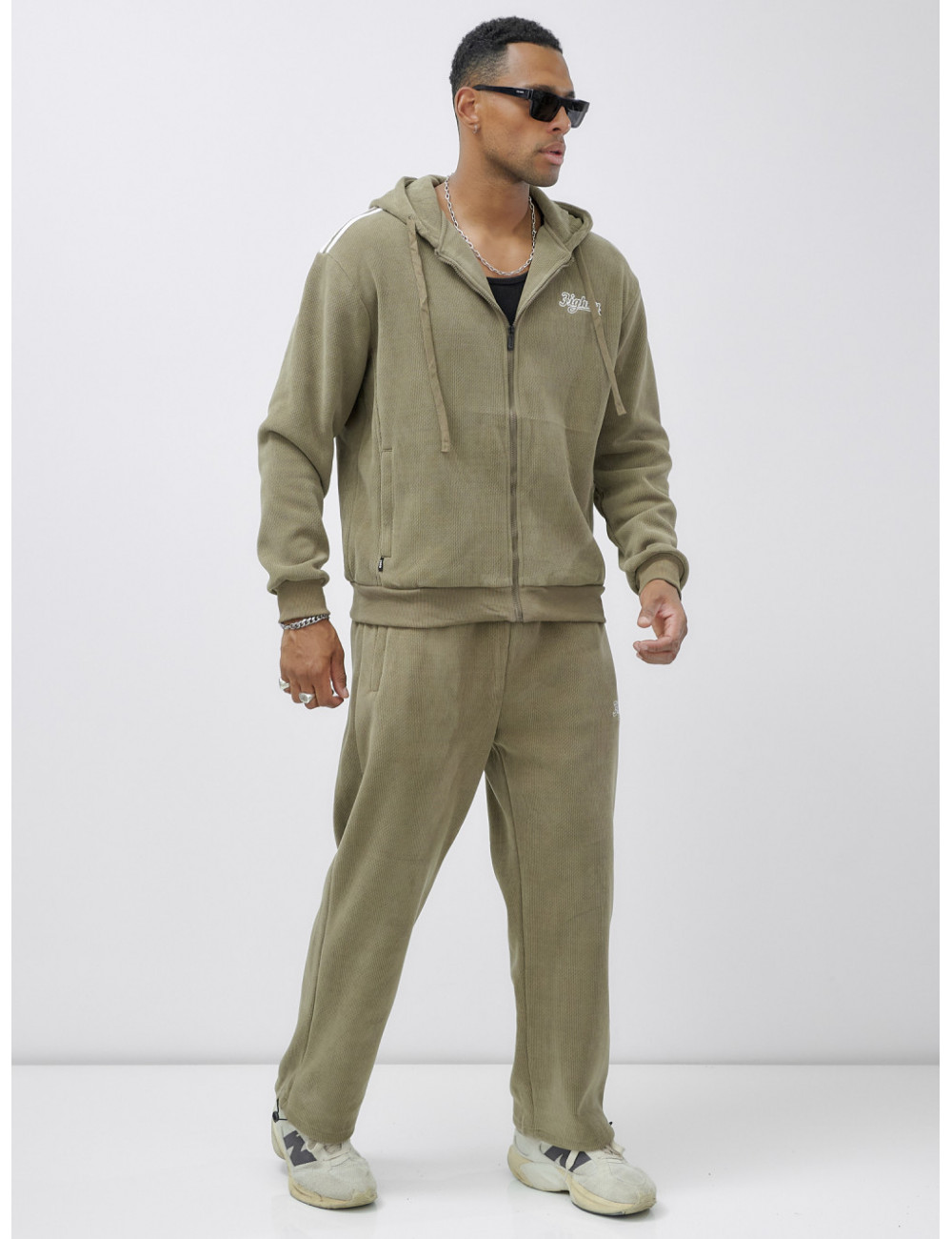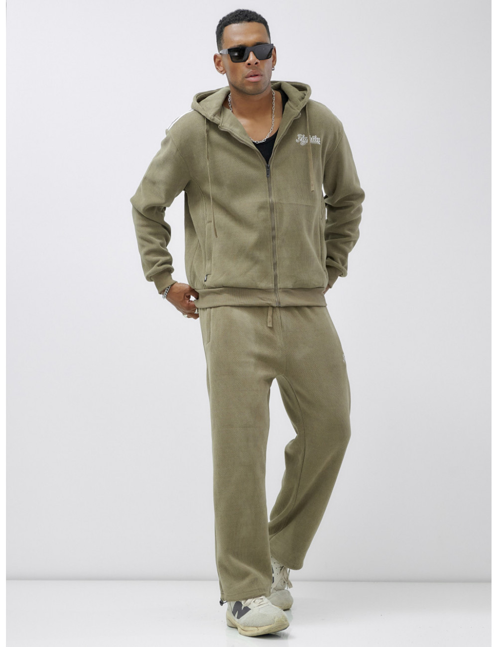 Костюм отлично сочетается с кроссовками и спортивными аксессуарами. Он станет отличным дополнением к вашему гардеробу и позволит вам создавать разнообразные образы для любых ситуаций. Доставка по Москве и Московской области Мужской демисезонный спортивный костюм на флисе, цвет хаки.