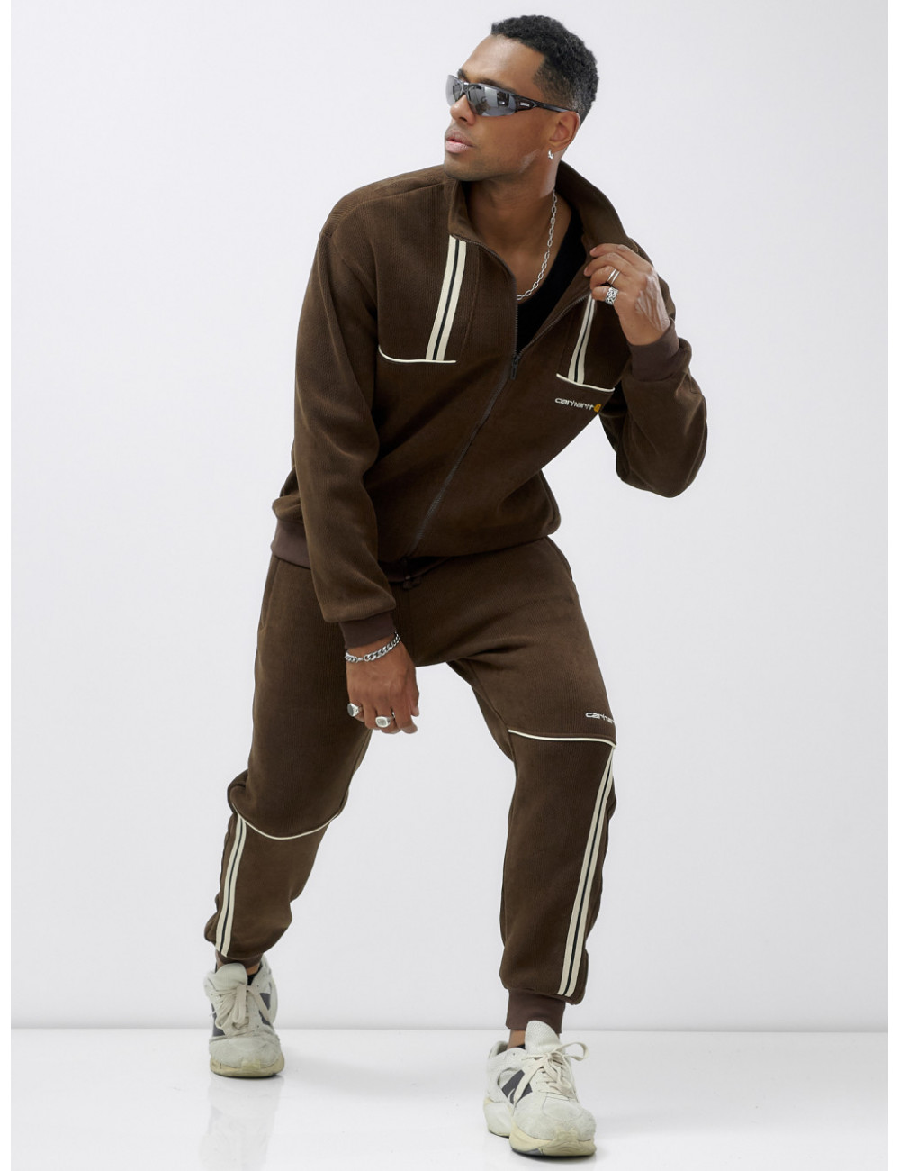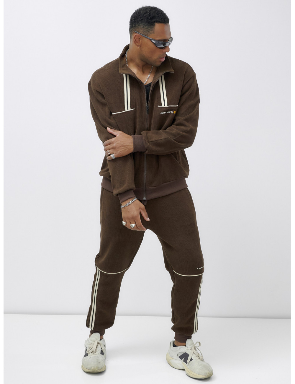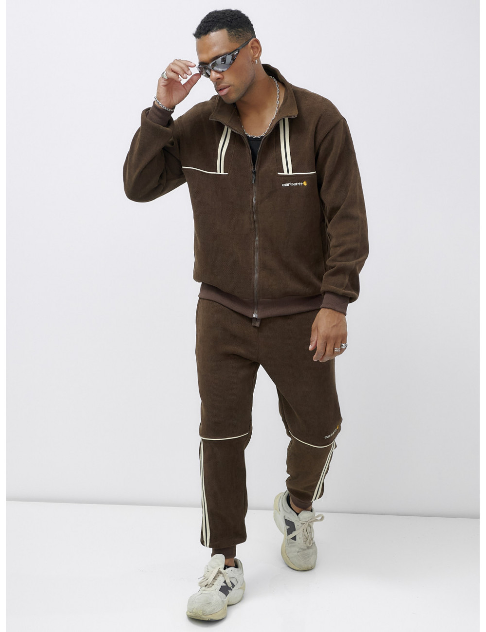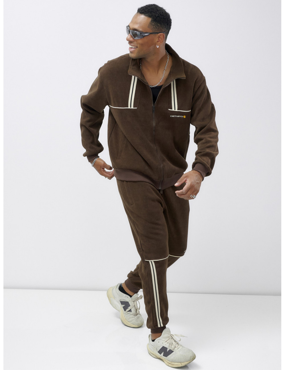 Не упустите возможность обновить свой гардероб стильным и комфортным спортивным комплектом, который станет вашим надёжным спутником в любых приключениях! Доставка по Москве и Московской области Мужской демисезонный спортивный костюм коричневого цвета на флисе