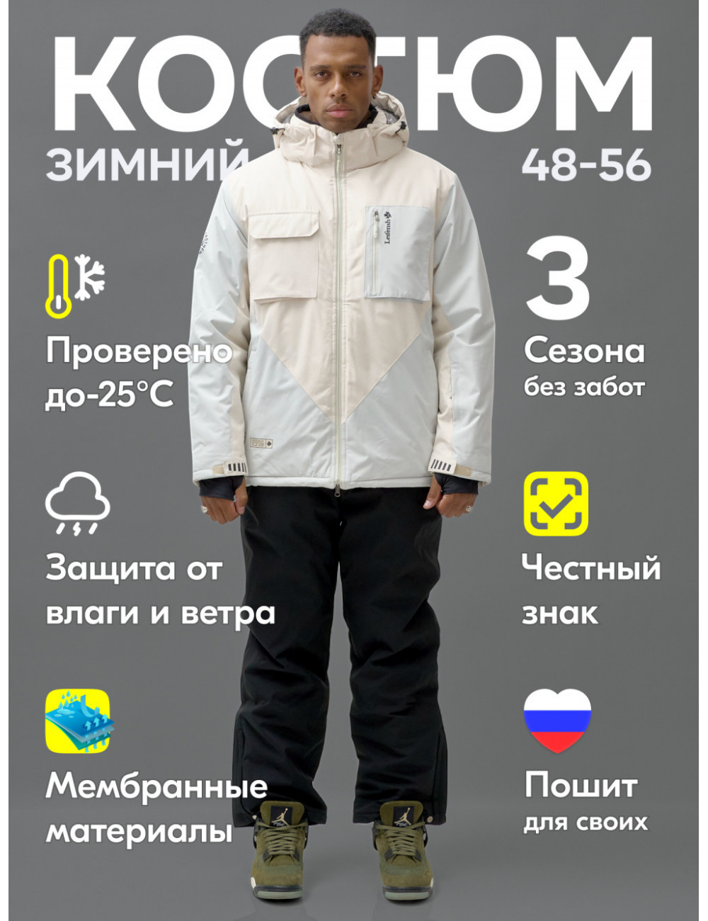 - Качество: костюм изготовлен из мембранной водонепроницаемой ткани, которая обеспечивает защиту от влаги и ветра.