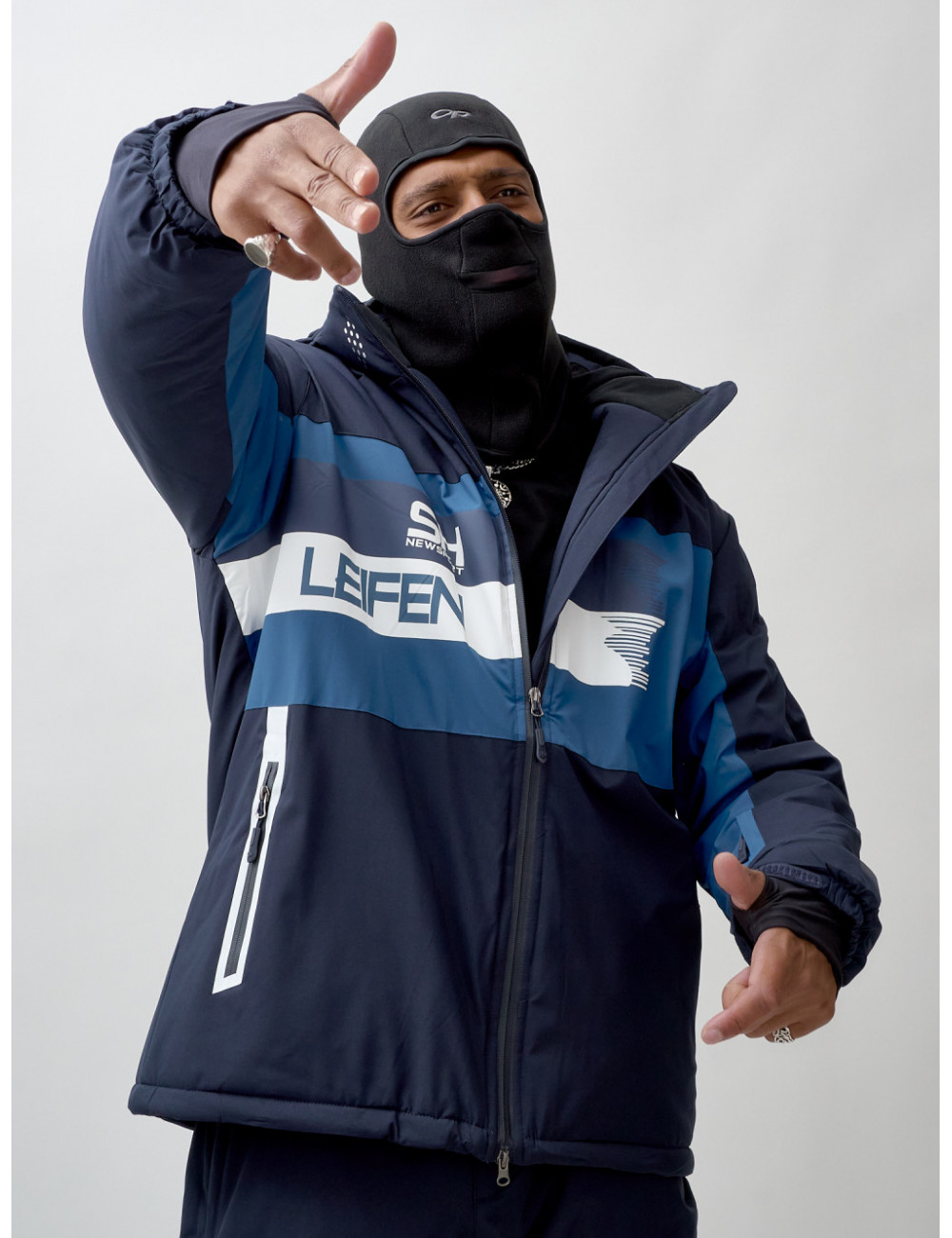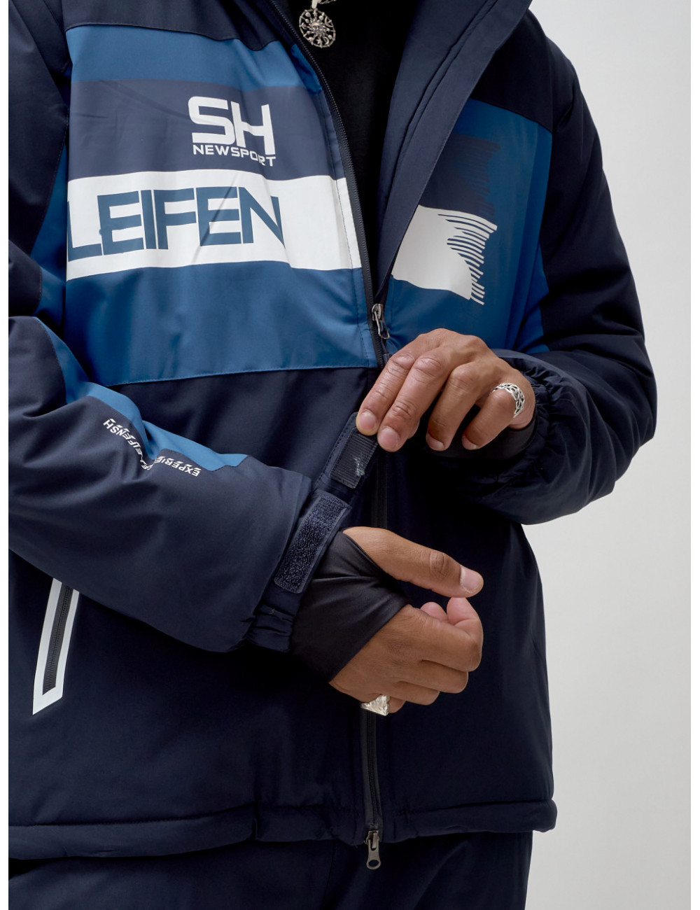 - Эластичные полуперчатки на рукавах защитят от снега и обеспечат комфорт при использовании лыжных палок.