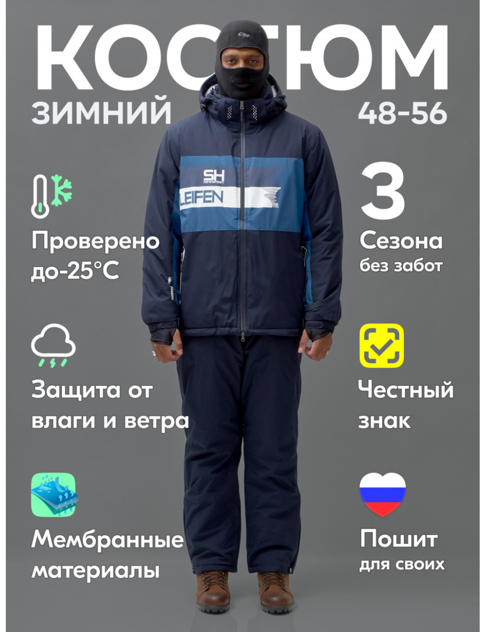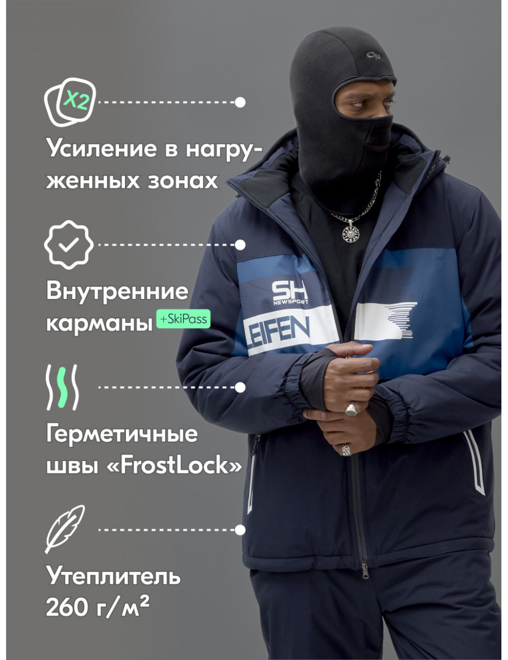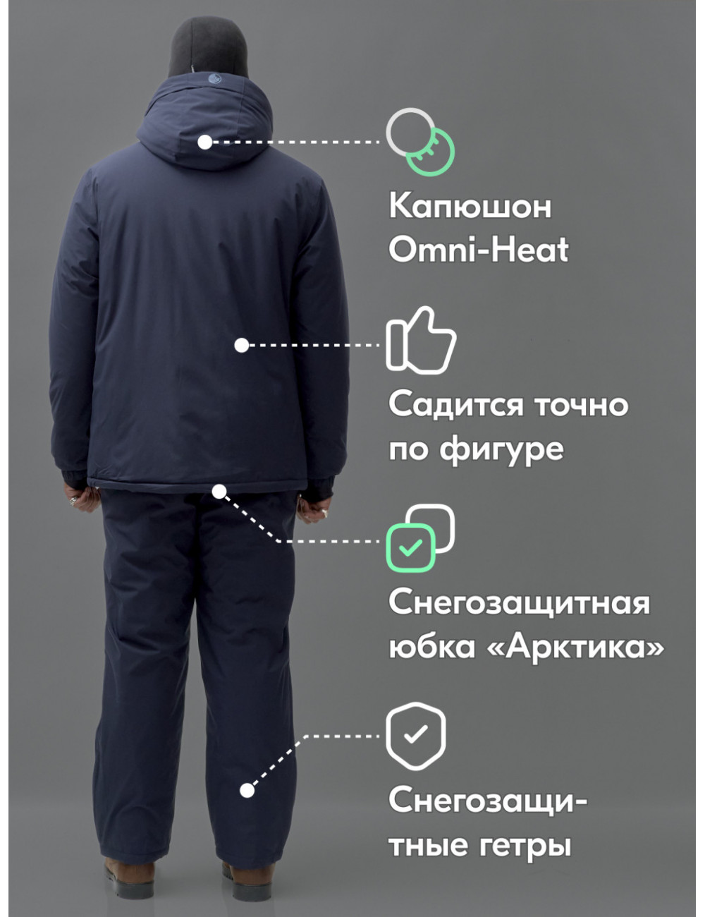 Этот костюм идеально подойдёт для любителей зимних видов спорта, которые ценят комфорт, функциональность и стильный внешний вид.