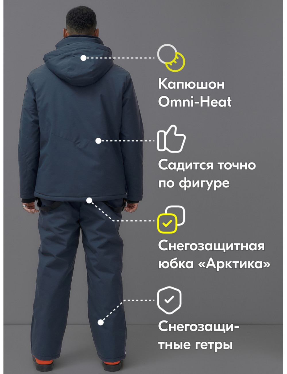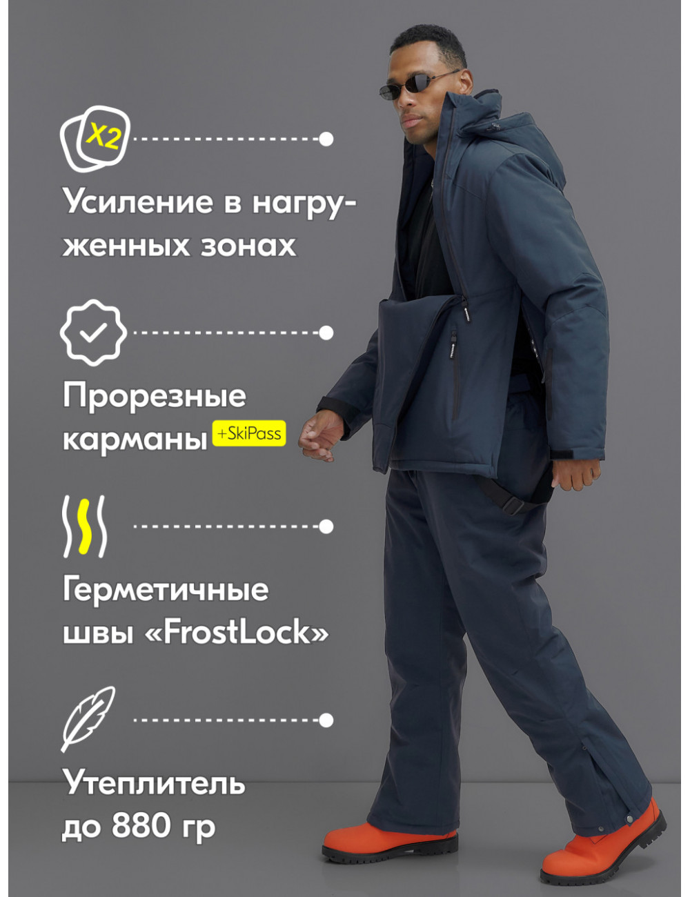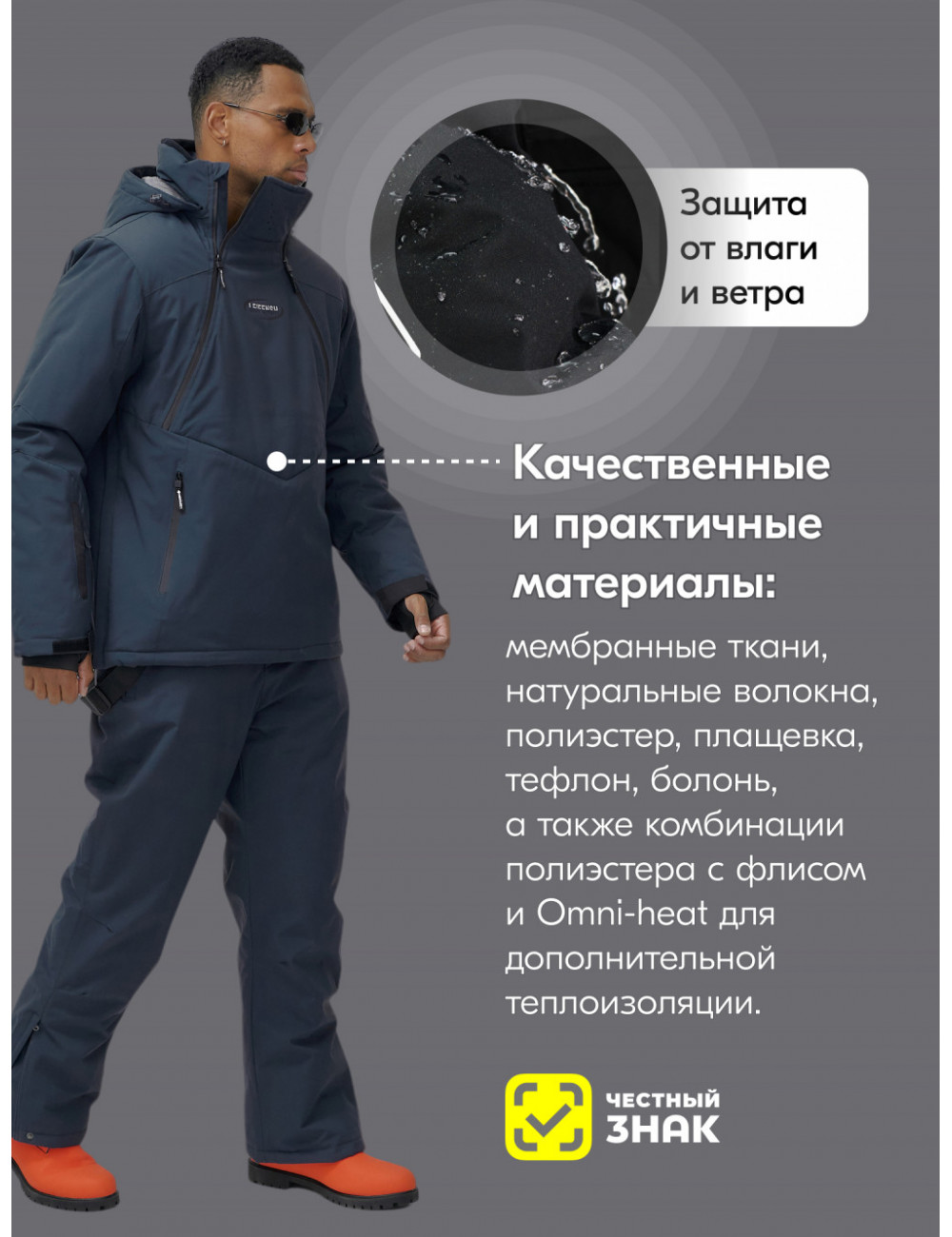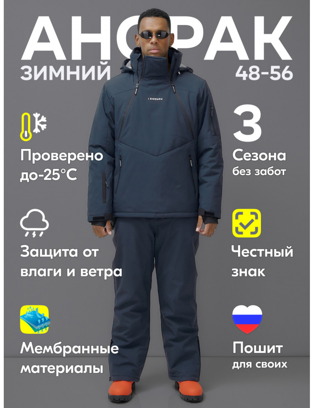 Не упустите шанс сделать свой зимний отдых незабываемым! Закажите наш горнолыжный костюм прямо сейчас и наслаждайтесь каждым моментом на склонах! Доставка по Москве и Московской области Горнолыжный мужской зимний костюм-анорак тёмно-серый, для зимних видов спорта