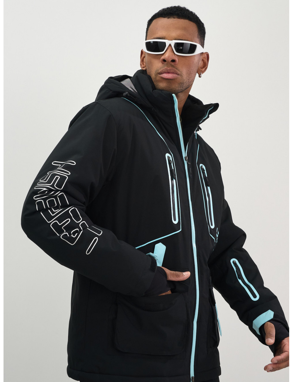 Куртка оснащена съёмным регулируемым капюшоном, который позволяет адаптировать её под любые погодные условия, обеспечивая надёжную защиту от ветра и снега. Высокий воротник защищает шею от холода, создавая дополнительный уют.