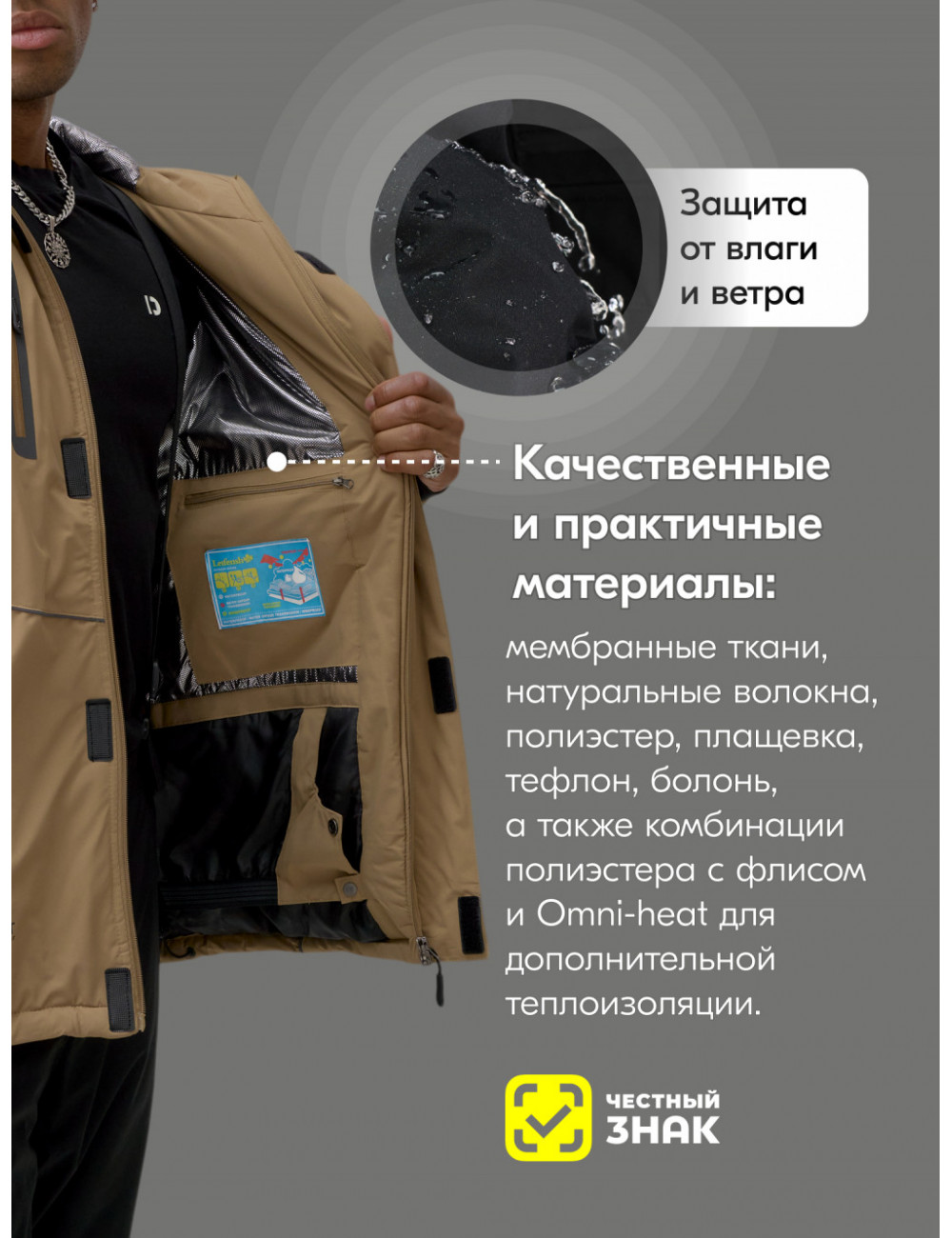 - Водоотталкивающая и дышащая мембрана: обеспечивает защиту от влаги и комфорт во время активных движений.