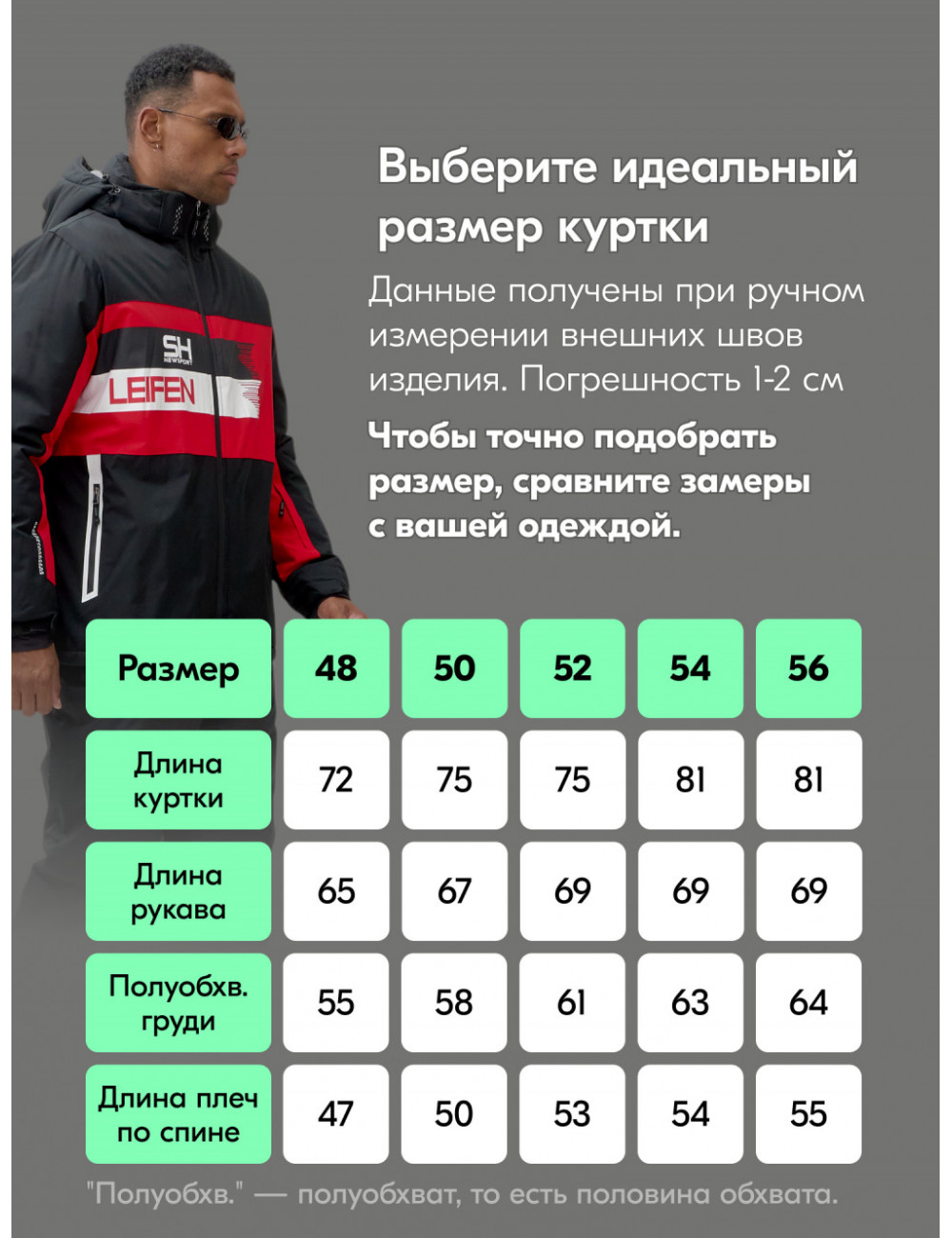 Мы рекомендуем измерить основные параметры фигуры, такие как длина куртки, полуобхват груди, длина плеч по спине и другие. Это поможет вам выбрать идеальный размер костюма.