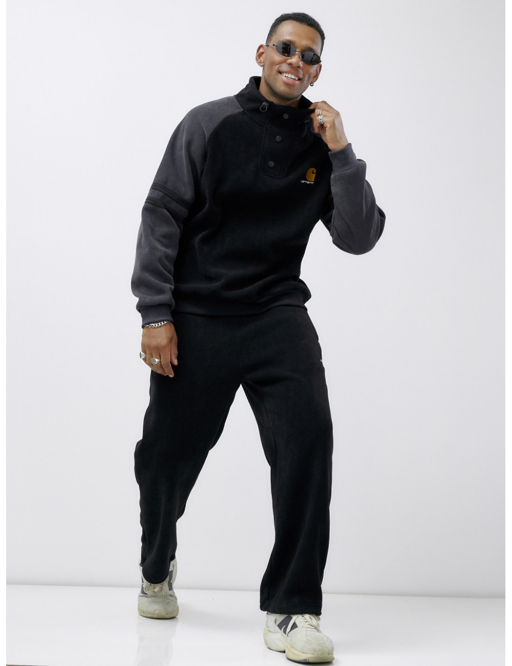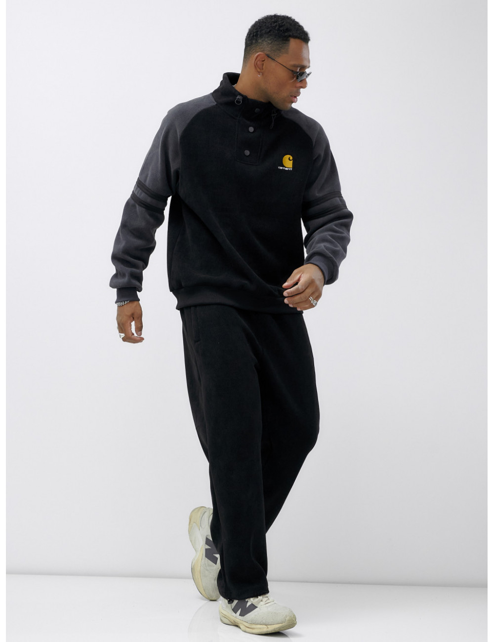 Наш спортивный костюм легко сочетается с кроссовками, кедами или другой спортивной обувью. Он станет отличным дополнением к вашему гардеробу и поможет создать стильный образ для любого случая. Доставка по Москве и Московской области Мужской демисезонный спортивный костюм на флисе, чёрный.