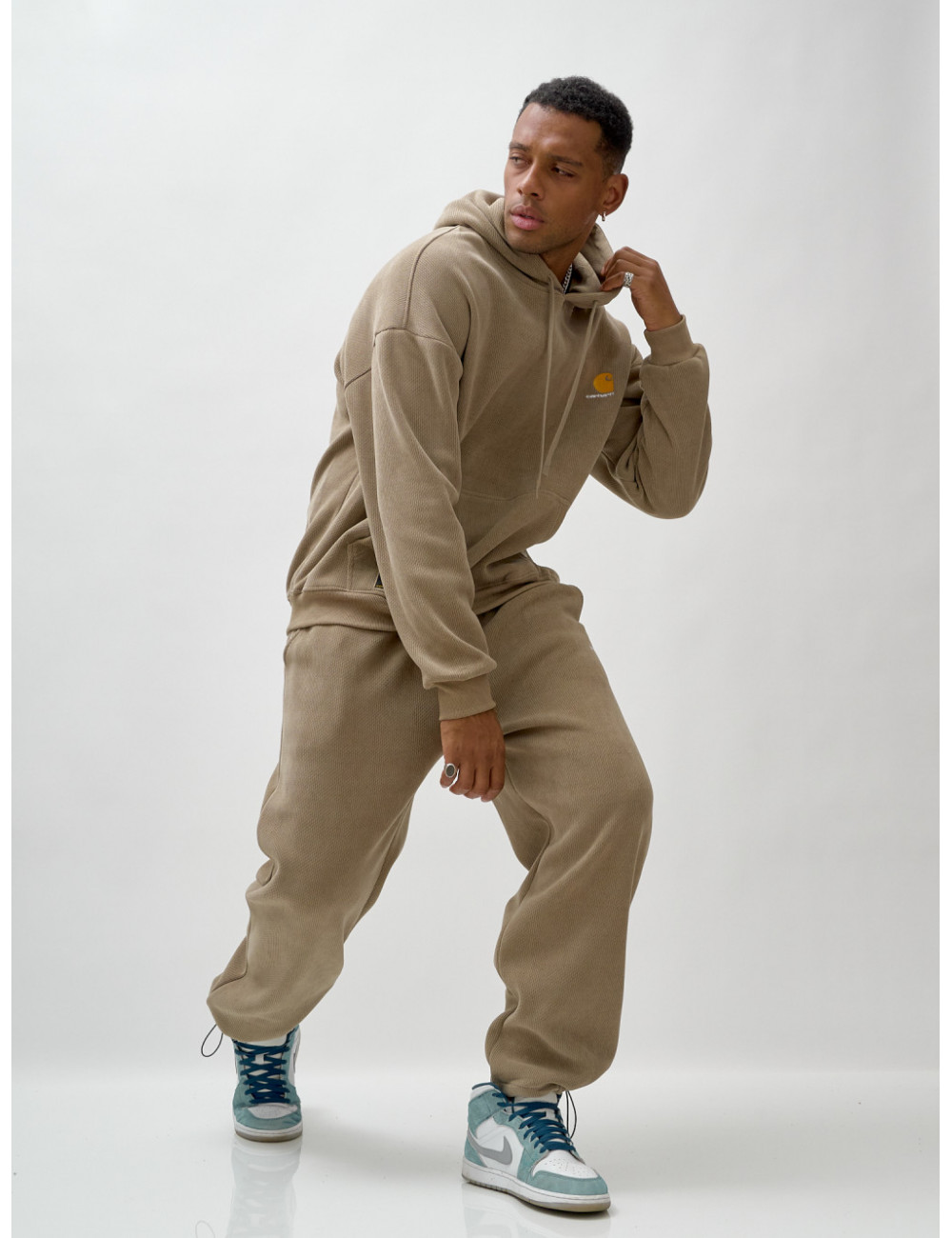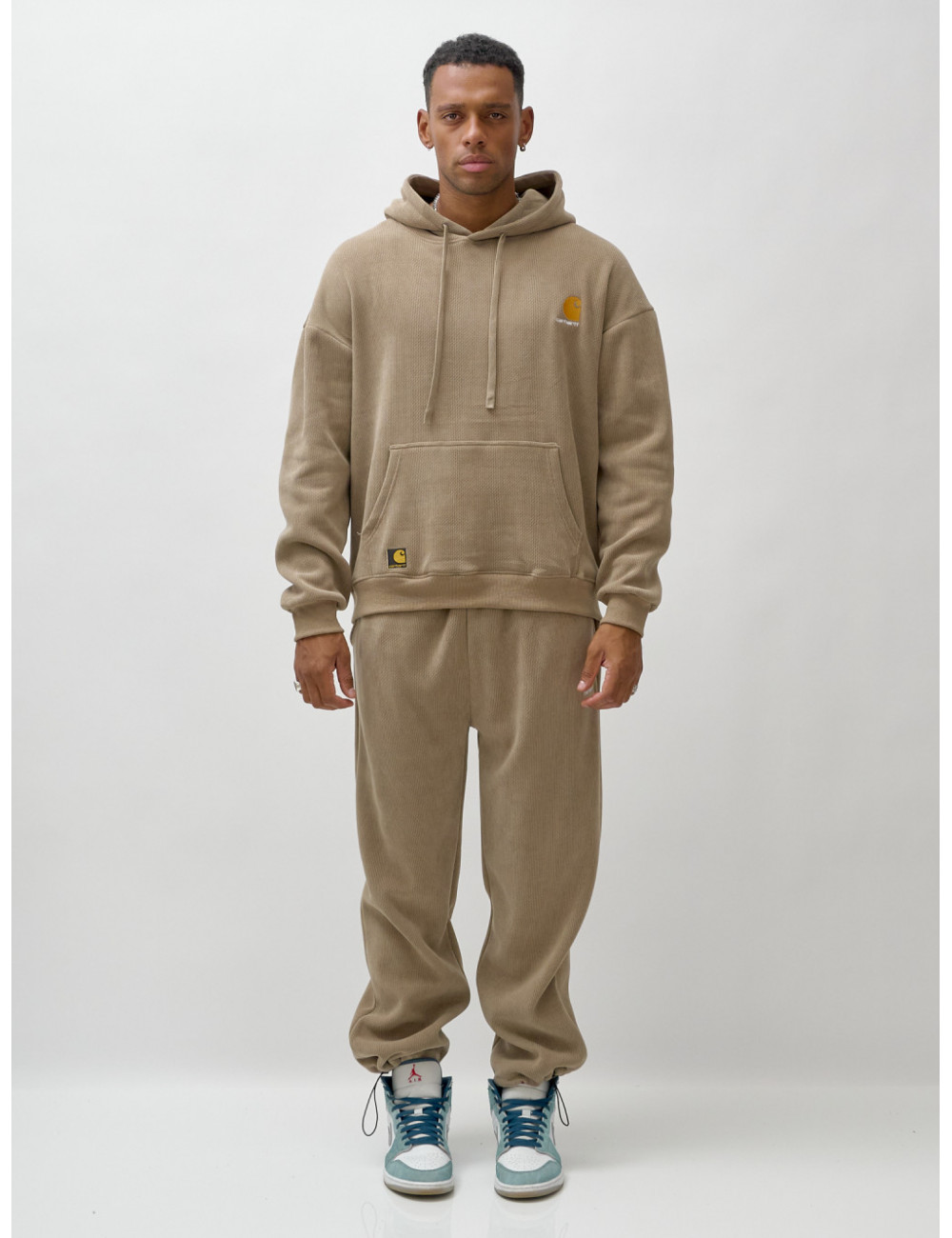 Позвольте себе комфорт и уверенность в каждом движении! Доставка по Москве и Московской области Мужской демисезонный спортивный костюм на флисе, бежевый.