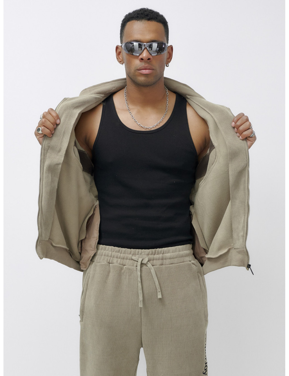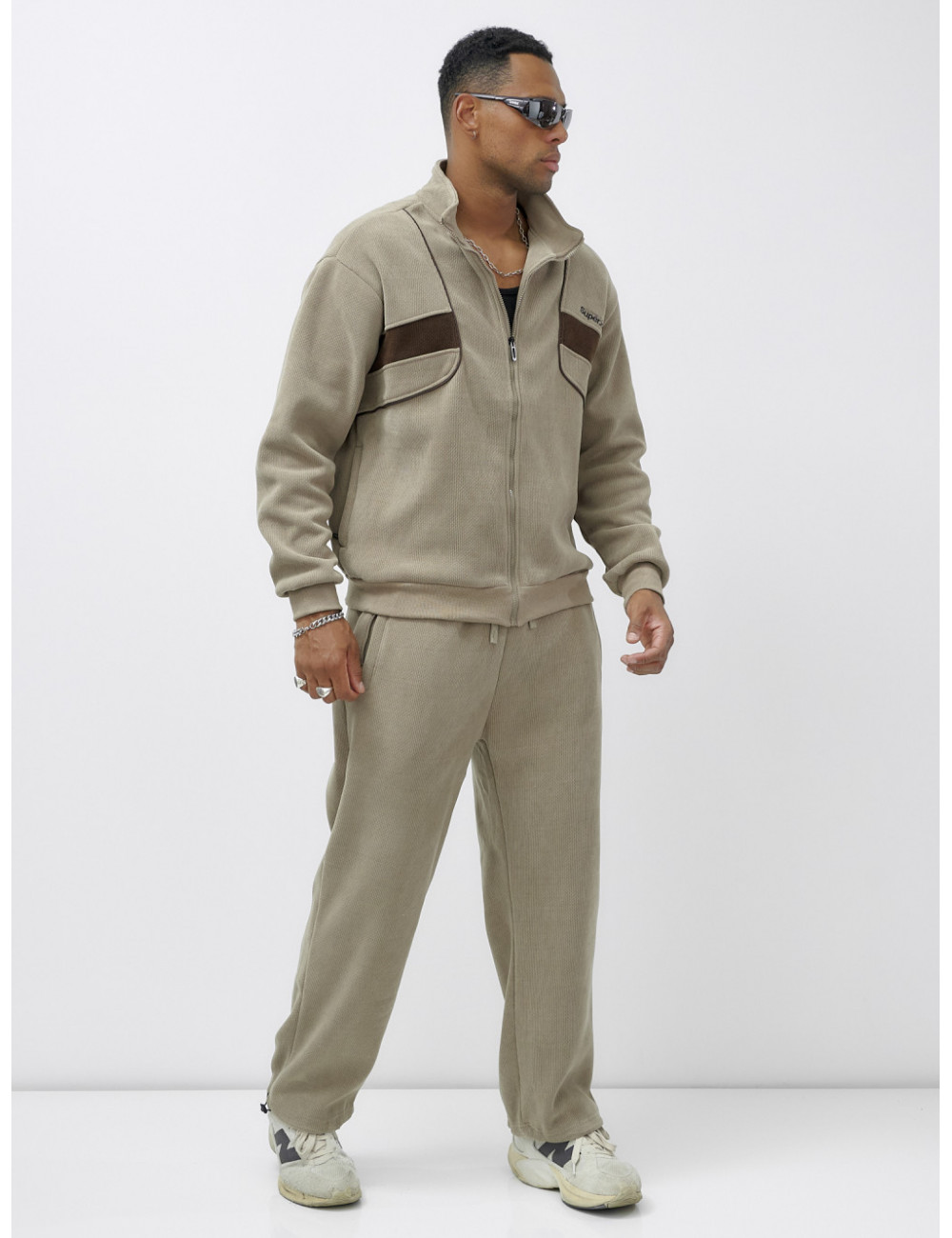Утеплённый спортивный костюм легко сочетается с различными аксессуарами, такими как шапки, перчатки и шарфы. Вы можете создать стильный и комфортный образ, подходящий для любых погодных условий. Доставка по Москве и Московской области Мужской демисезонный спортивный костюм на флисе, бежевый.