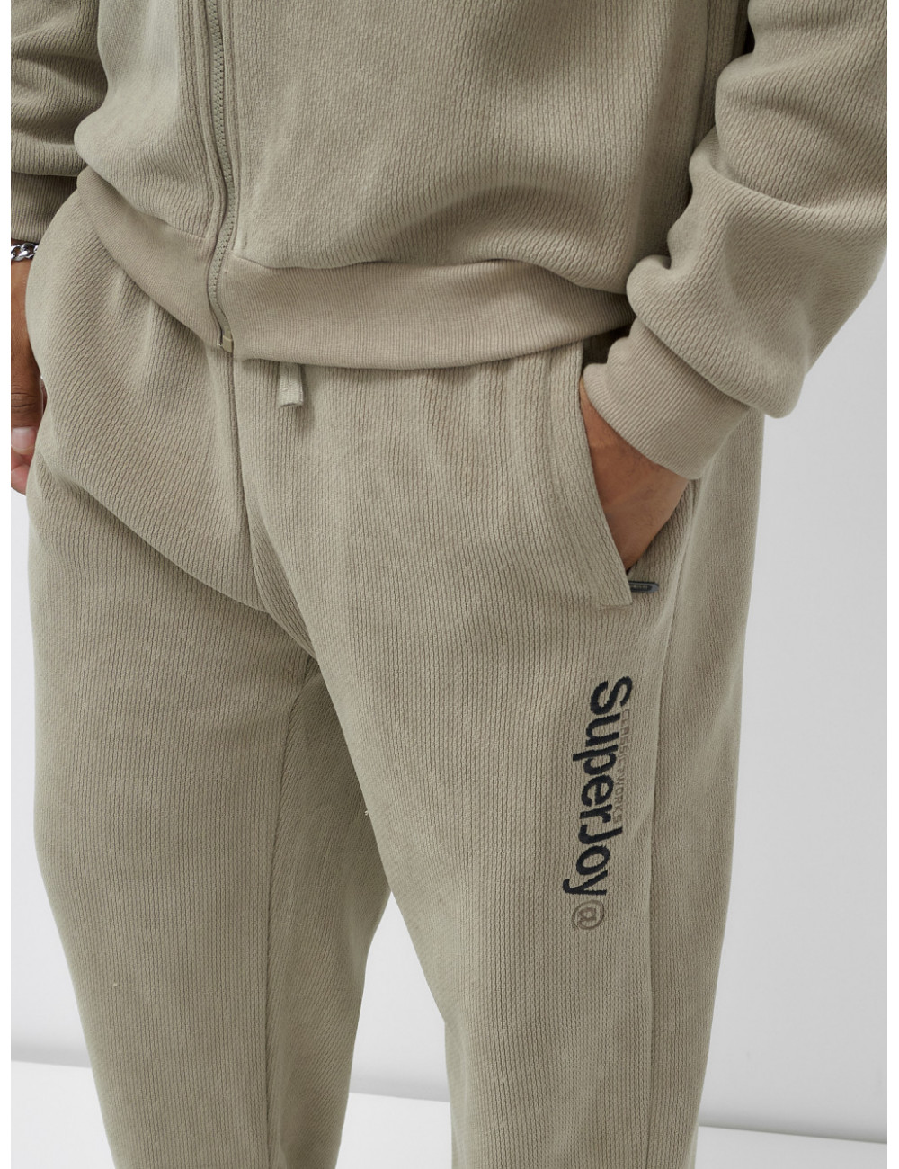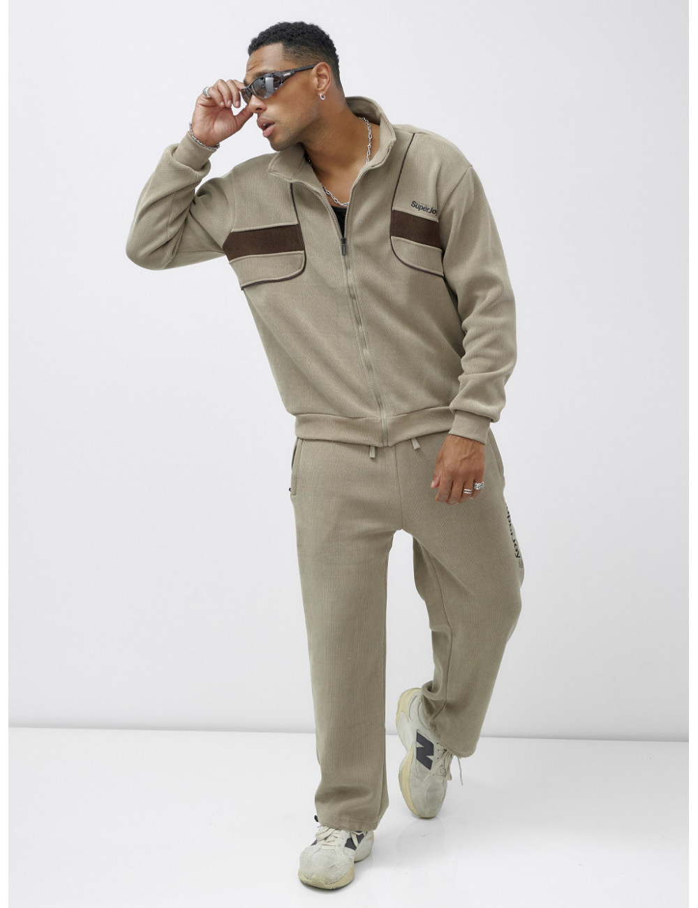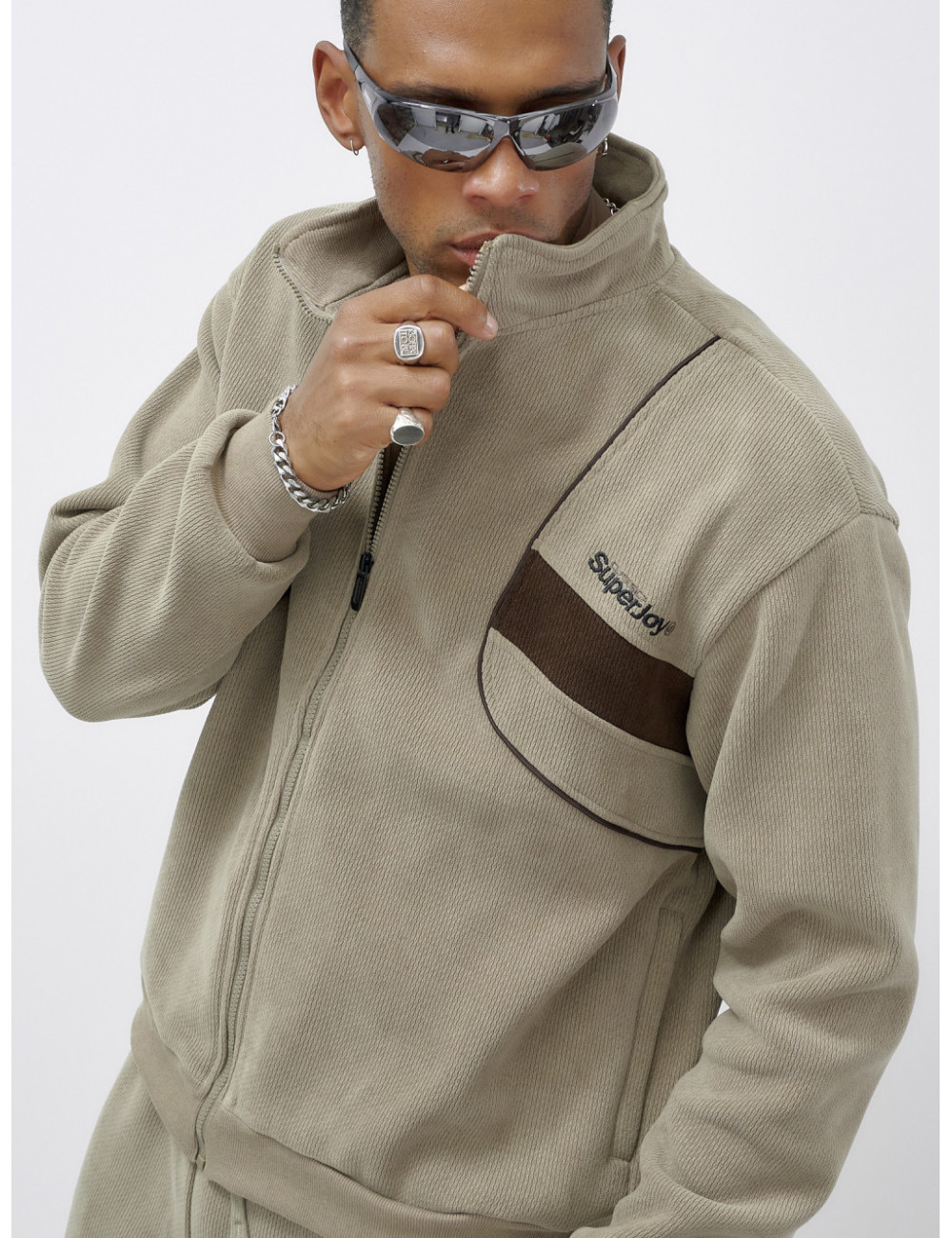 Идеальный выбор для активных мужчин — утеплённый спортивный костюм, состоящий из стильной толстовки на молнии и удобных прямых брюк.