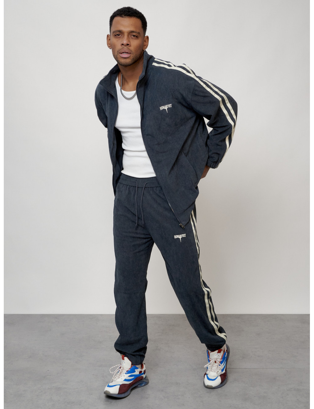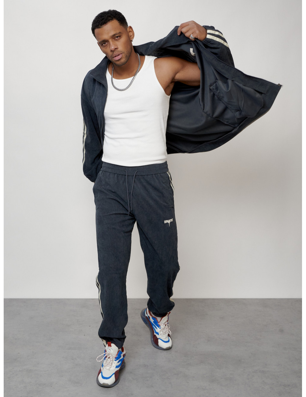 Купить за 9552 ₽ в Москве Мужской спортивный костюм из микровельвета, тёмно-серый. Мужской молодёжный спортивный костюм
