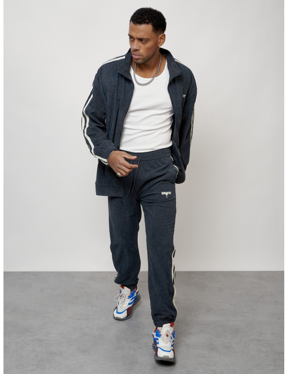 Мужской спортивный костюм из микровельвета, тёмно-серый.