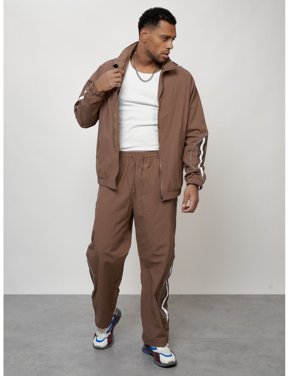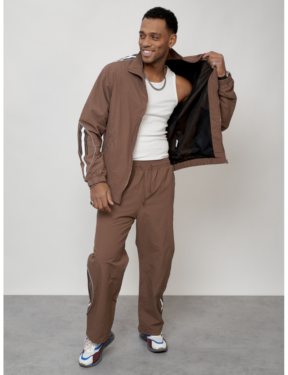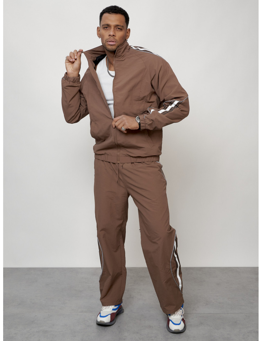 Костюм отлично подойдёт для активного отдыха, прогулок, встреч с друзьями и других повседневных ситуаций. Его можно сочетать с кроссовками, кедами или спортивной обувью для создания расслабленного образа. Также костюм будет уместен в менее формальных обстановках на природе или в городе. Доставка по Москве и Московской области Мужской спортивный костюм модный коричневый.