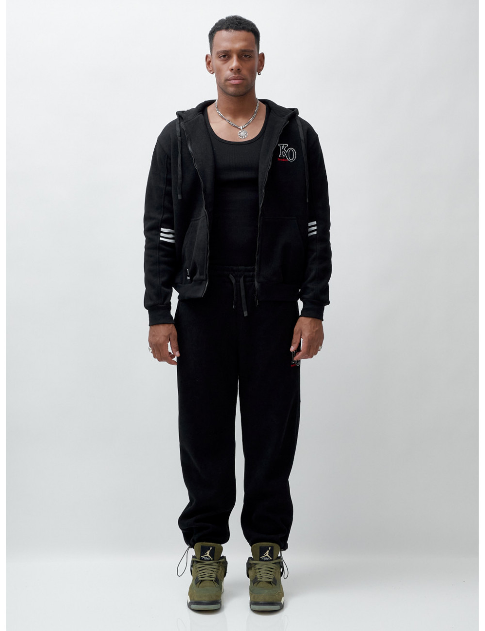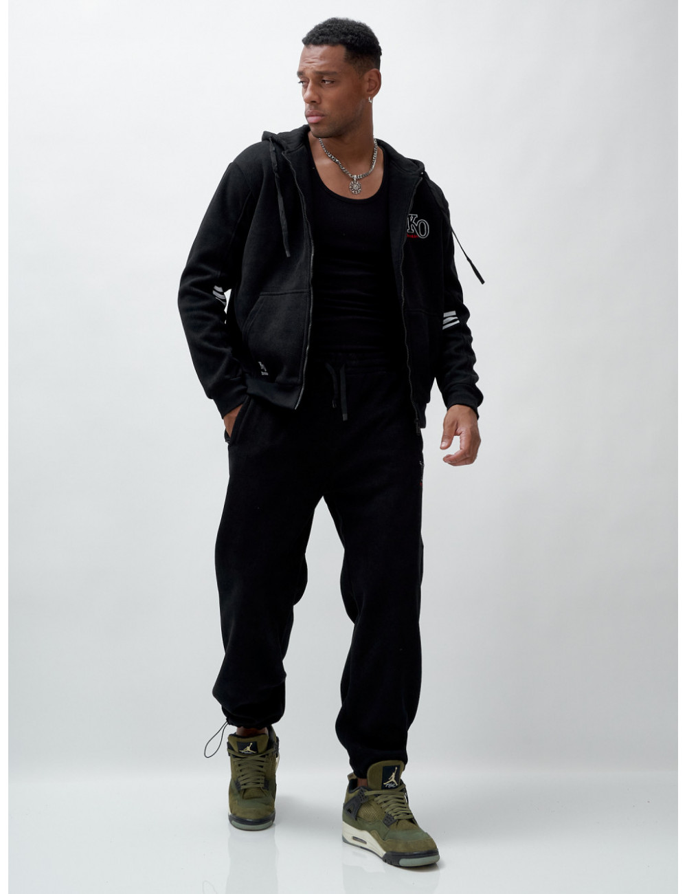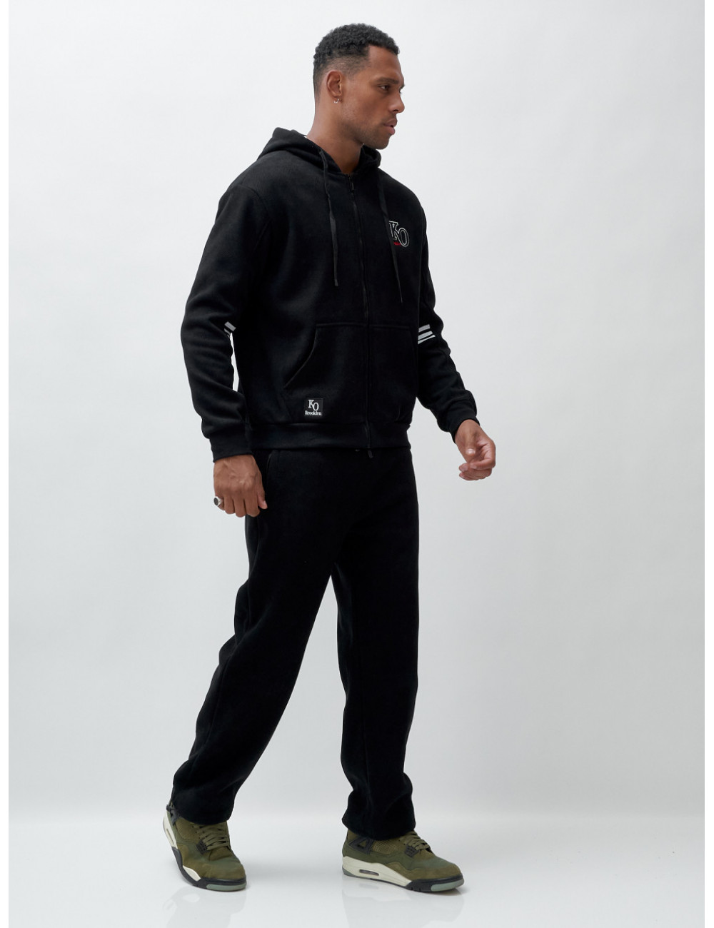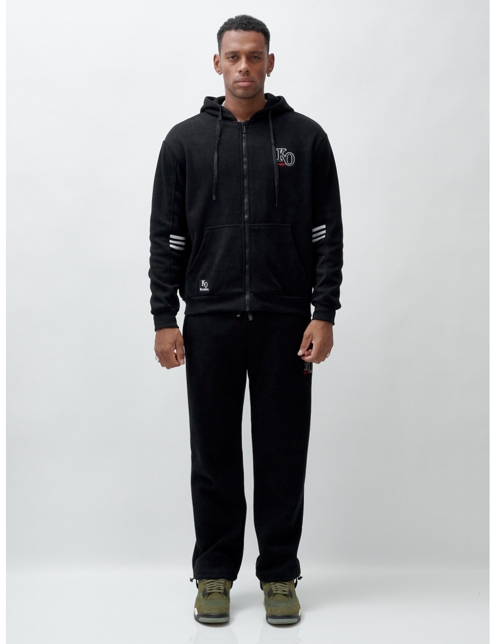 Купить за 11952 ₽ в Москве Мужской спортивный костюм на флисе, чёрный, демисезонный Спортивный утеплённый мужской костюм с начёсом