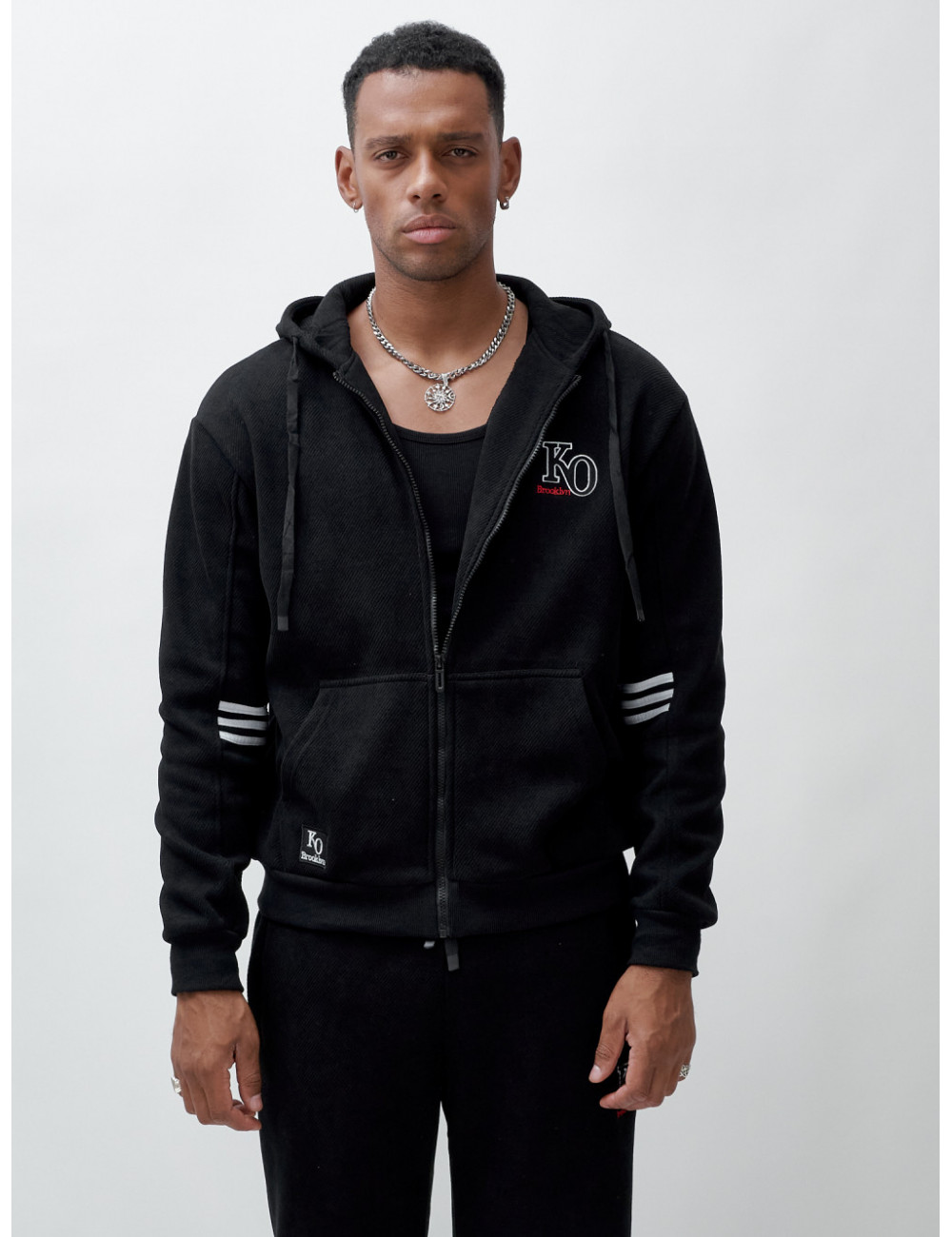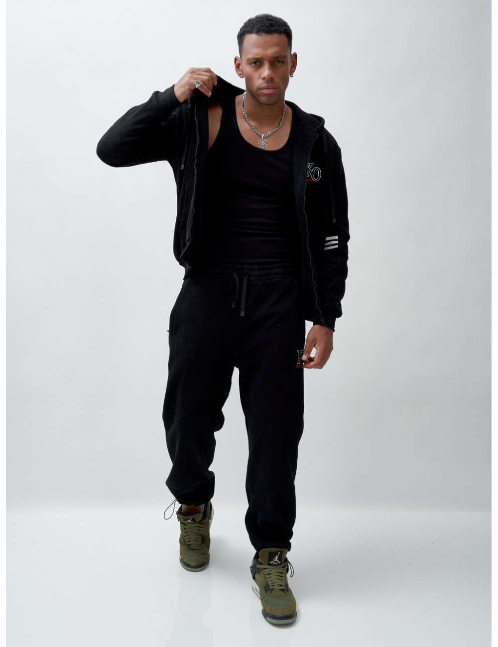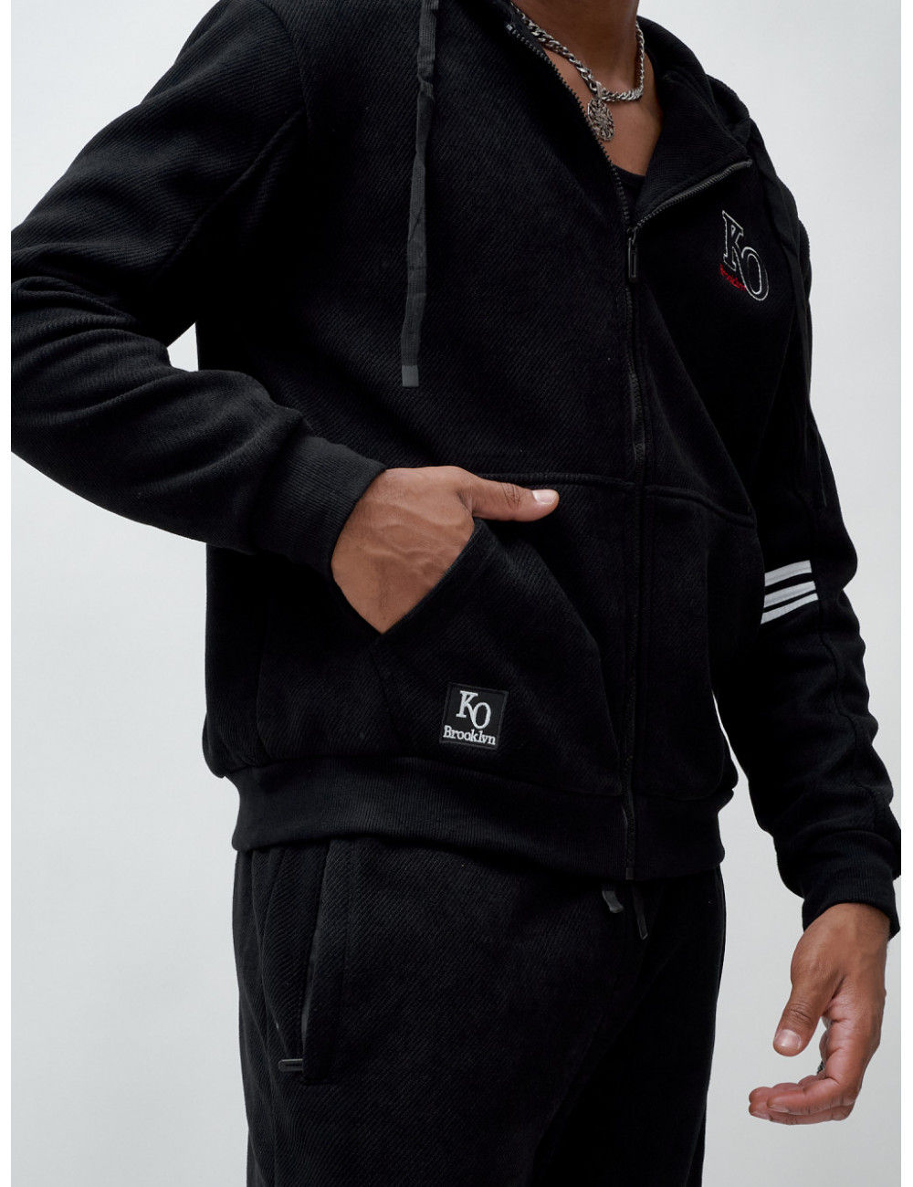 Купить за 11952 ₽ в Москве Мужской спортивный костюм на флисе, чёрный, демисезонный Спортивный утеплённый мужской костюм с начёсом