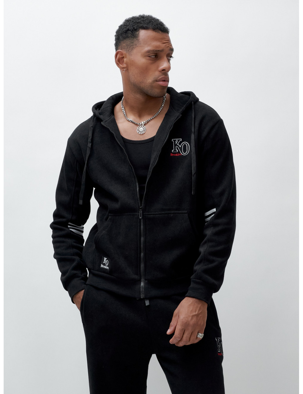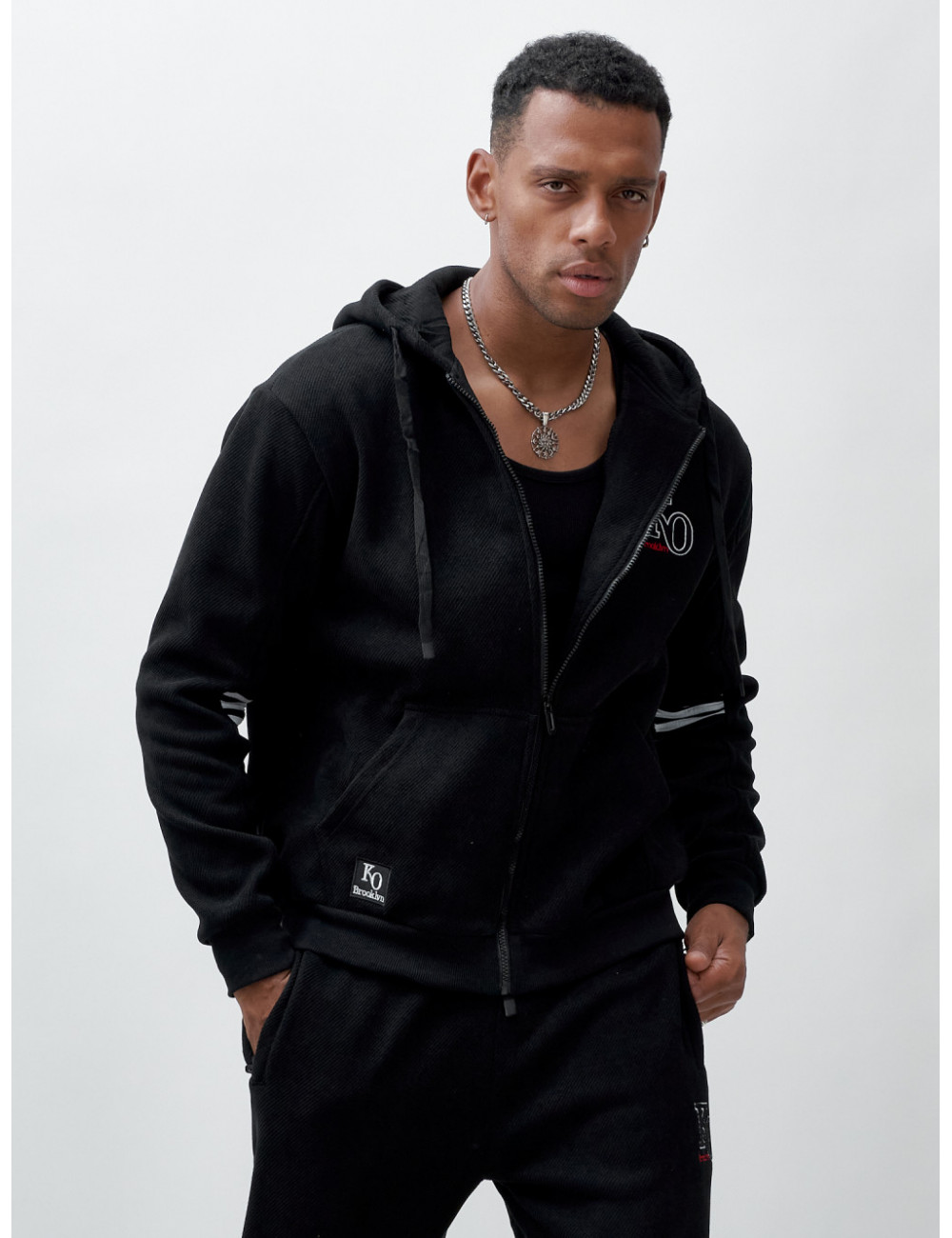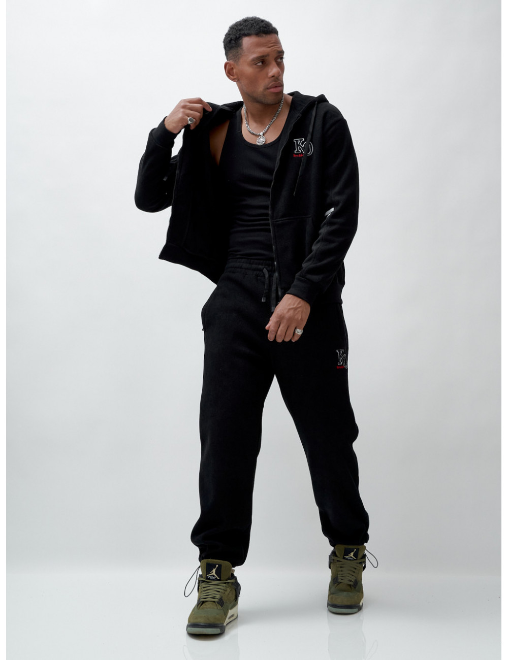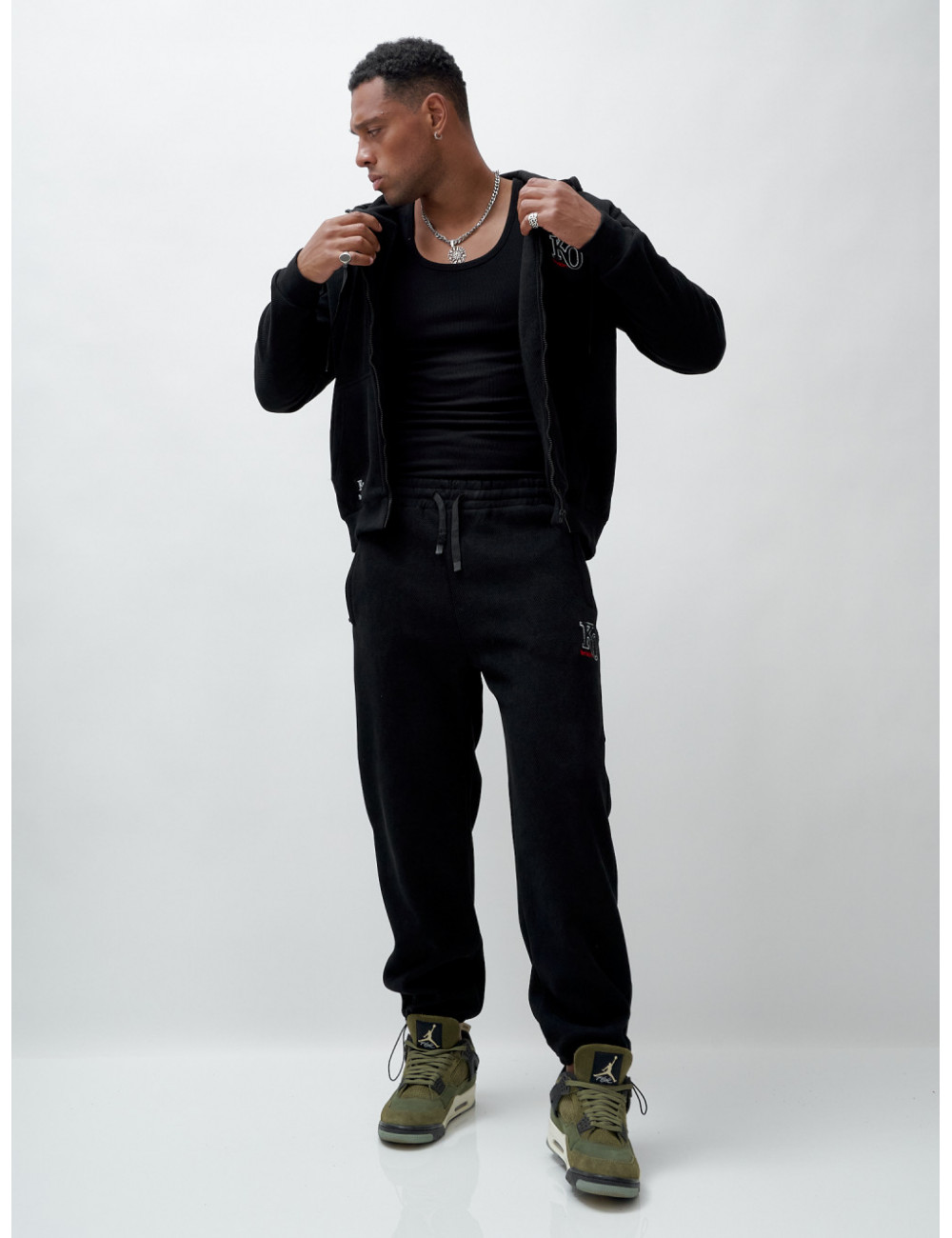Купить за 11952 ₽ в Москве Мужской спортивный костюм на флисе, чёрный, демисезонный Спортивный утеплённый мужской костюм с начёсом