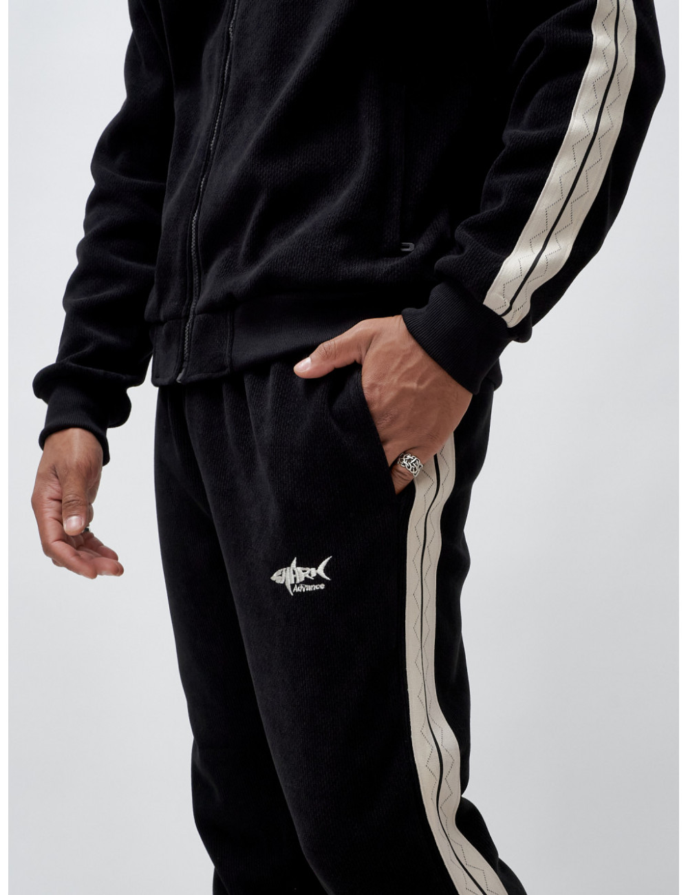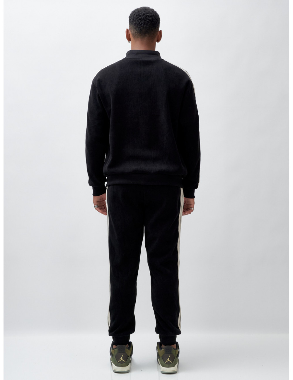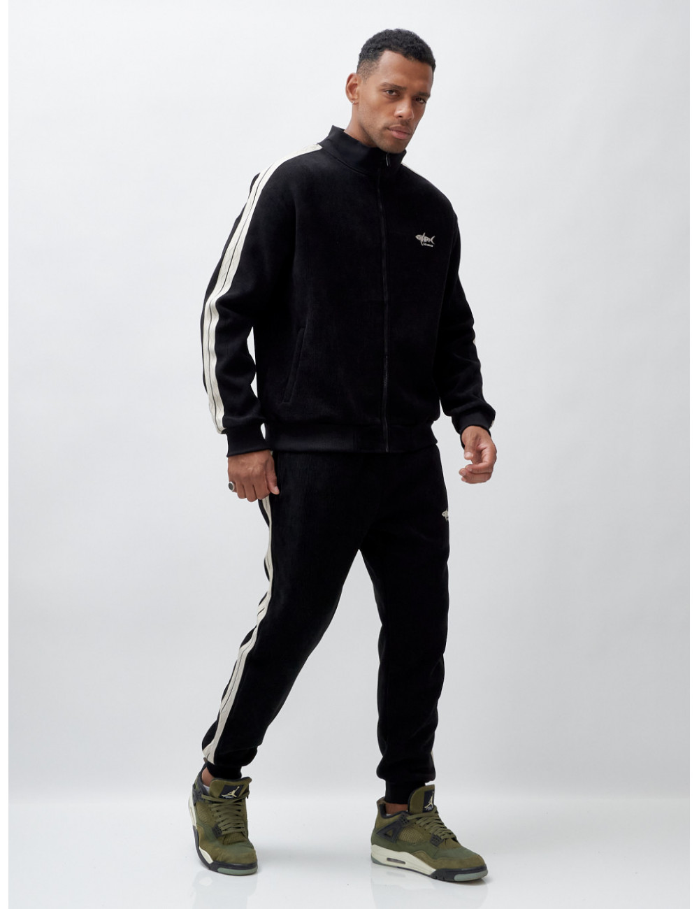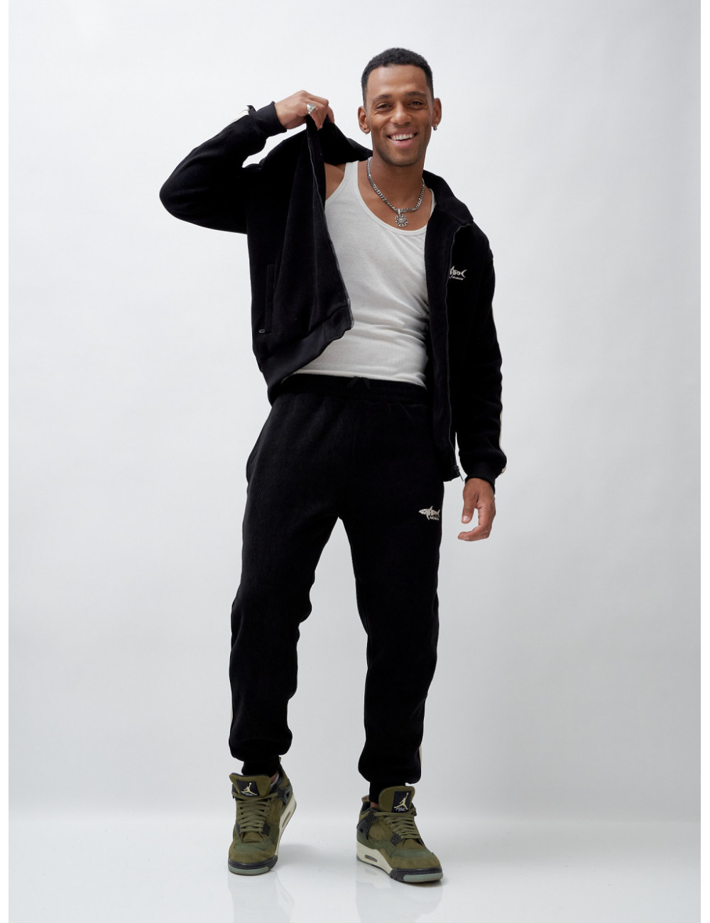 Сочетайте этот утеплённый костюм с кроссовками или спортивной обувью для создания идеального образа для тренировок. Также его можно надеть с тёплой курткой и ботинками для прогулок в холодное время года. Этот костюм станет отличным дополнением к вашему гардеробу и обеспечит комфорт и стиль в любых ситуациях. Доставка по Москве и Московской области Мужской демисезонный спортивный костюм на флисе, чёрный.