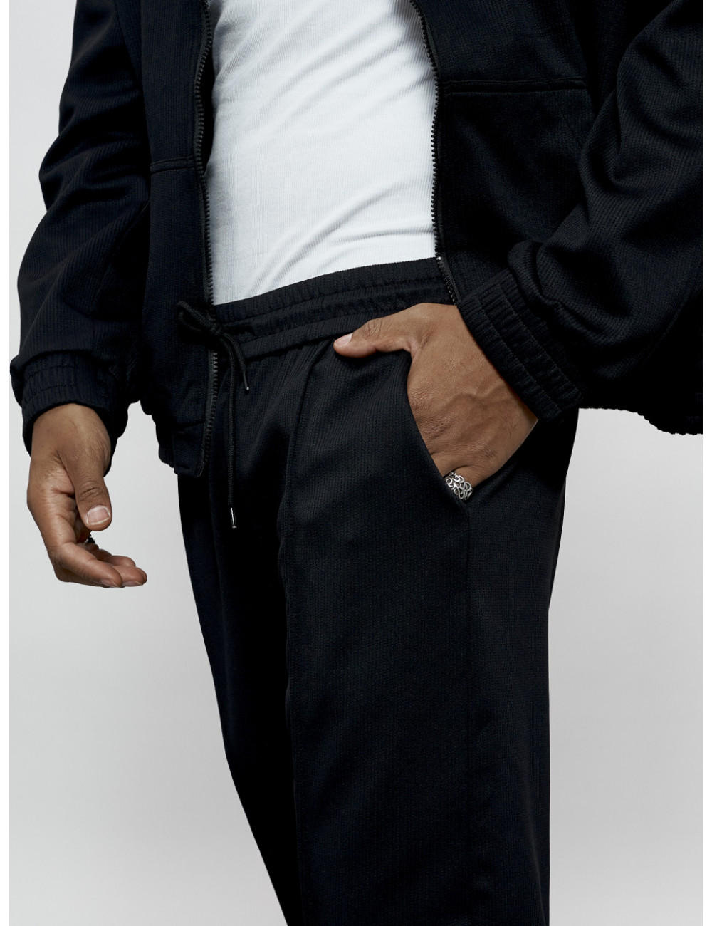 Материал приятен к телу, имеет рельефную внешнюю текстуру. Легко сочетается с другой одеждой, добавляя образу спортивный шик.