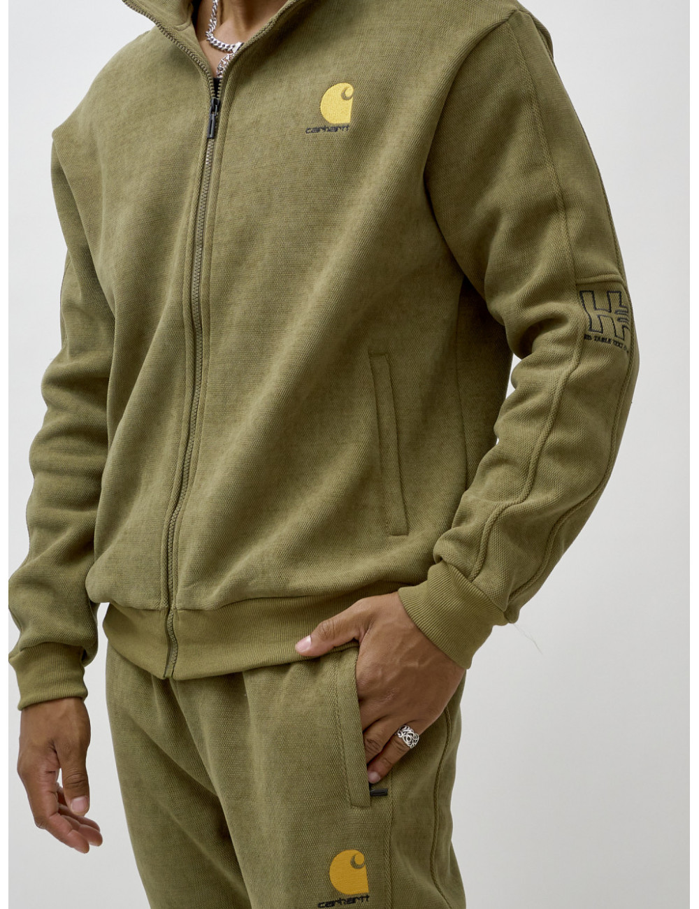 Костюм изготовлен из высококачественного сочетания хлопка и полиэстера, что придаёт ему мягкую, приятную фактуру, напоминающую вельвет. Внутренний флисовый начёс обеспечивает тепло в прохладные дни межсезонья, позволяя вам оставаться уютным и стильным. Декоративная вышивка на груди, рукавах и штанинах добавляет изюминку и подчёркивает индивидуальность.