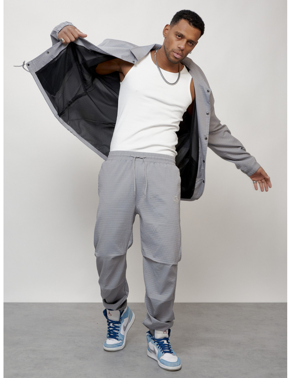 Стильный и удобный костюм, состоящий из рубашки свободного кроя на кнопках и джоггеров, идеально подходит для активного отдыха и повседневной носки.