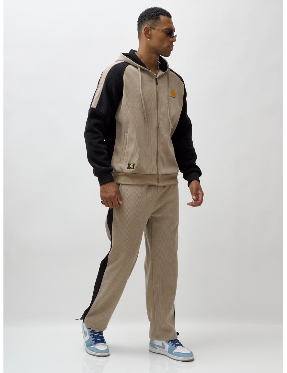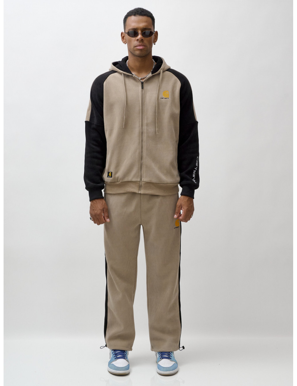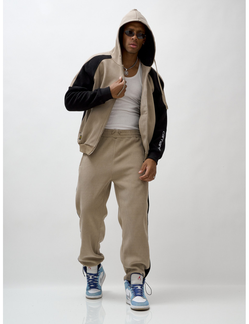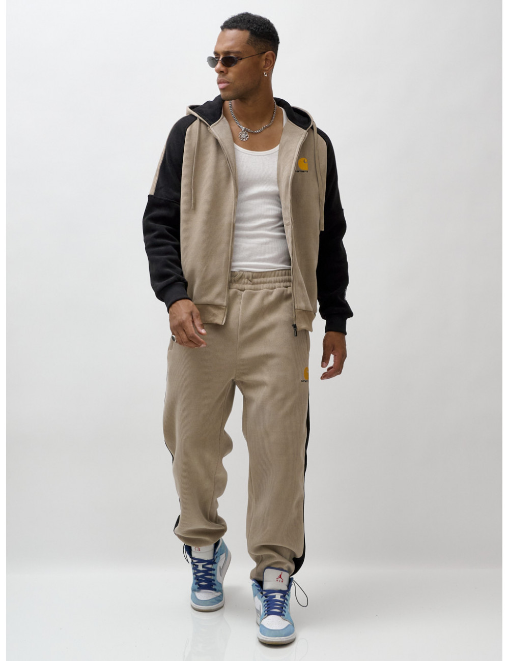 Благодаря качественным материалам, костюм легко ухаживать. Доставка по Москве и Московской области Мужской демисезонный спортивный костюм на флисе, бежевый, для активного отдыха