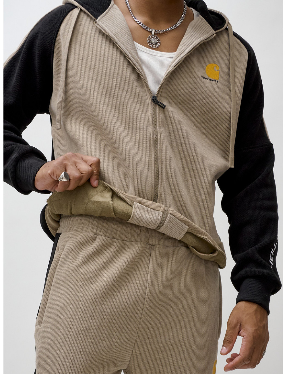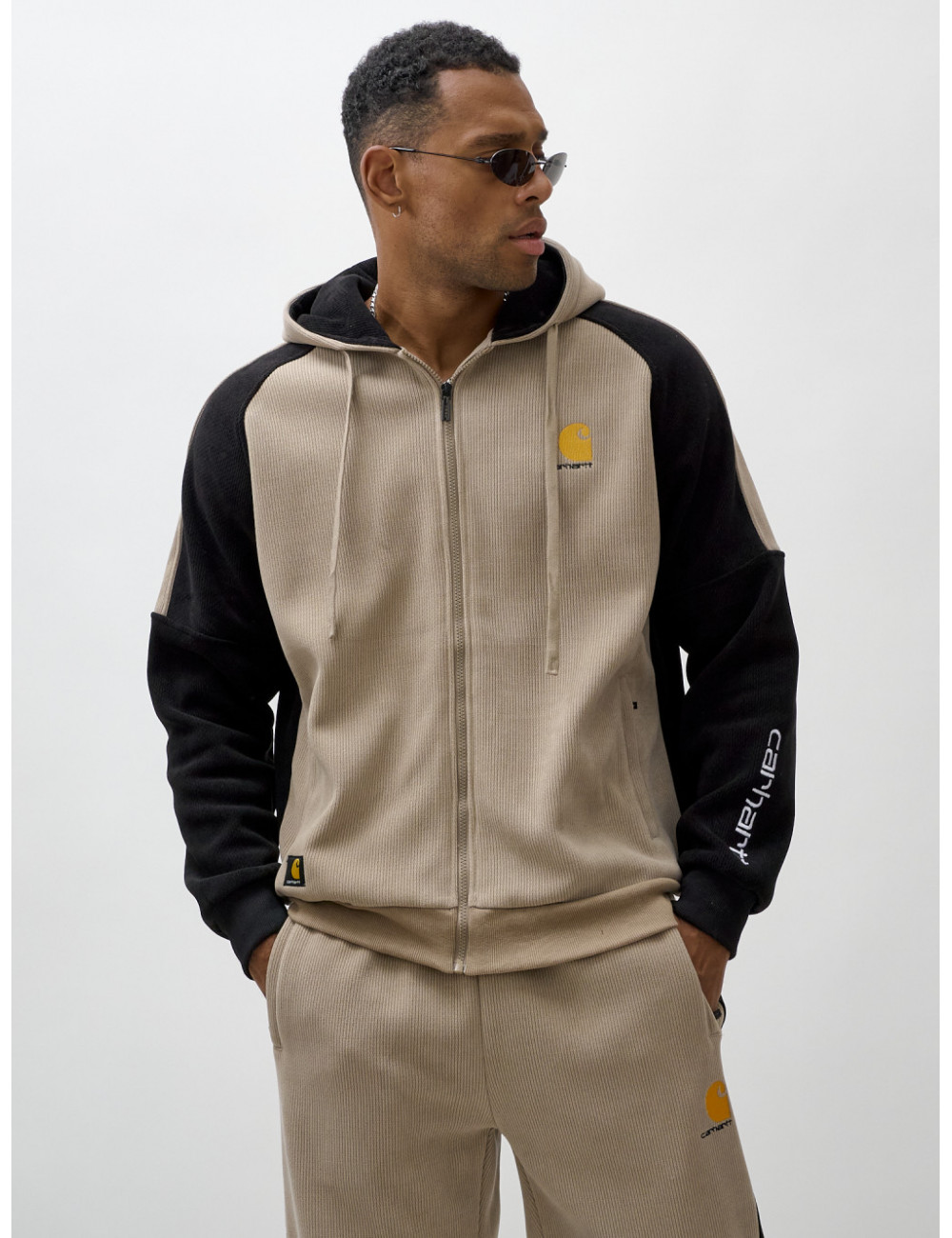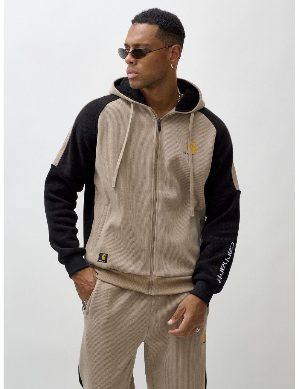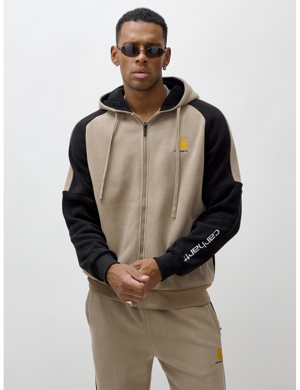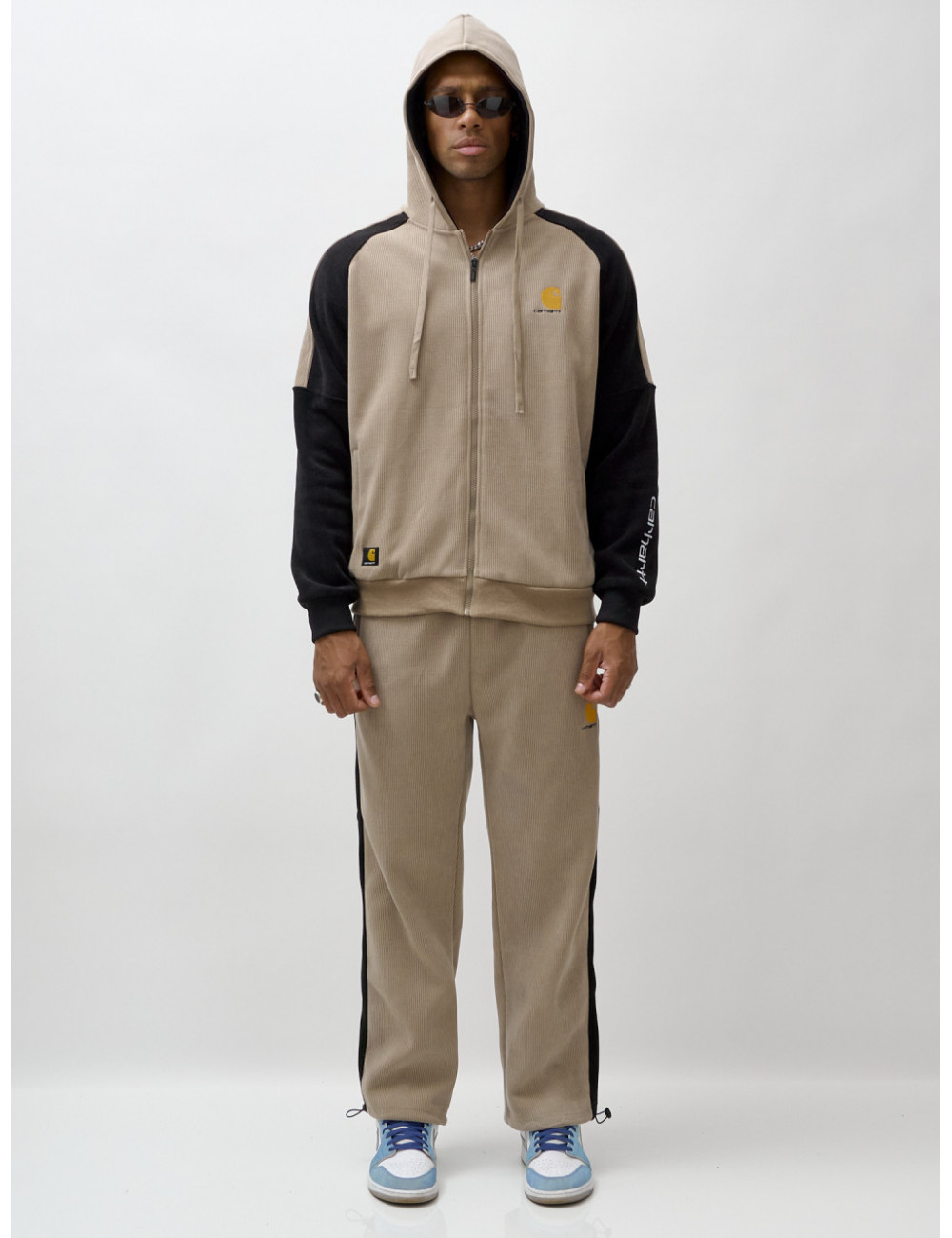 Благодаря качественным материалам, костюм легко ухаживать. Доставка по Москве и Московской области Мужской демисезонный спортивный костюм на флисе, бежевый, для активного отдыха